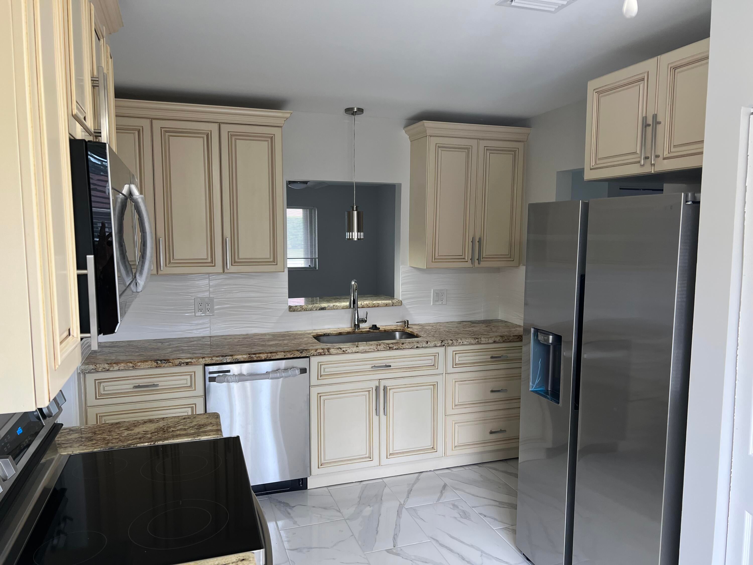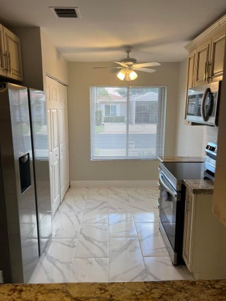 Renovated, New Stainless steel appliances, bathroom vanities ,2 walk-in showers, new toilets, new window treatments. Wood Kitchen cabinets with granite. New 5.1/4 baseboards,freshly painted. New up to code curcuit breaker box. freshly painted driveway French door leading out to the large screened in patio partially covered with storage room. Acordian shutters throughout. 1 person must be at least 55 and have a 650 credit score, No kids under 15 Cable,internet,lawncare and pest control incl Close to shopping ,both major hwys. approx 6 miles to the beach and downtown Delray. Service animal allowed with proper documentation