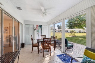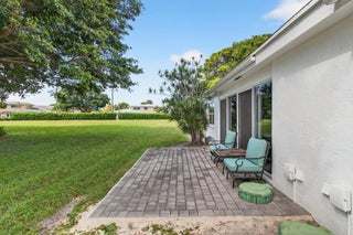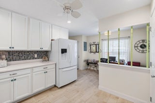 Pride of ownership shines throughout this highly sought-after, updated, bright, and spacious 2BR/2BA corner villa!Welcome to the largest model in the Bridgeview community -- the 1,660 sq. ft. ''Ponderosa Supreme'' -- ideally situated on a private cul-de-sac within this desirable 55+ neighborhood.This beautifully maintained home impresses from the moment you enter. Recent upgrades include new impact windows (2025), a new roof (2024), updated electrical panel, AC handler (2022), and water heater (2020). The enclosed lanai (under air) expands your living space and includes a full-size washer and dryer, while roll-down shutters and sliding glass doors open to a large, private backyard with lush green space and a lovely paver brick patio--perfect for relaxing or entertaining.Inside, you'll find an open-concept, updated kitchen featuring white shaker cabinets, Corian countertops, a decorative backsplash, a single-basin stainless steel sink, and modern appliances. The home showcases neutral tile and laminate flooring throughout, new ceiling fans, and tasteful furnishings. Just bring your clothes and toothbrush! Experience Florida living at its best in this vibrant, active community offering a heated resort-style pool, clubhouse, tennis & pickleball courts, shuffleboard, and a full calendar of social activities. Conveniently located close to everything, beaches, charming shops, open-air cafés, fine dining, shopping malls, theaters, major highways (I-95 & Turnpike), and places of worship, this villa truly offers comfort, style, and convenience. All information is deemed reliable but not guaranteed and subject to change without notice.