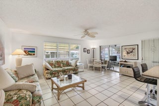 Pride of ownership shines through the moment you step into this highly sought-after, updated, and spacious 2BR/2BA corner villa, nestled in the vibrant High Point Community. This exceptional villa, located in the most desirable corner Florida Model, offers the perfect blend of modern comfort and classic charm within an active 55+ community. Key features include: Roof replaced in 2019 for peace of mind. Enclosed Florida room under air, expanding your living space year-round.Awning shutters for added protection and curb appeal. Open-concept kitchen with updated cabinetry, granite countertops, and modern appliances.High-hat lighting, enhancing the home's bright, airy feel. Water heater replaced in 2018 and AC handler installed in December 2017 for efficiency and comfort.Tastefully updated guest bathroom for added luxury. Neutral tile flooring throughout, offering a fresh, contemporary look. This villa comes fully furnished and turnkey, so all you need to do is bring your clothes and toothbrush to start living the Florida lifestyle. Enjoy the very best of Florida living in this active 55+ community, offering a range of social activities and amenities that include a resort-style heated pool, a spacious clubhouse, tennis and pickleball courts, and shuffleboard. Conveniently located just minutes from the beach, you're close to charming shops, open-air cafés, fine dining, shopping malls, theaters, and more. Plus, with easy access to I-95/Turnpike and nearby places of worship, everything you need is right at your doorstep. All information is deemed reliable but not guaranteed and is subject to change without notice.