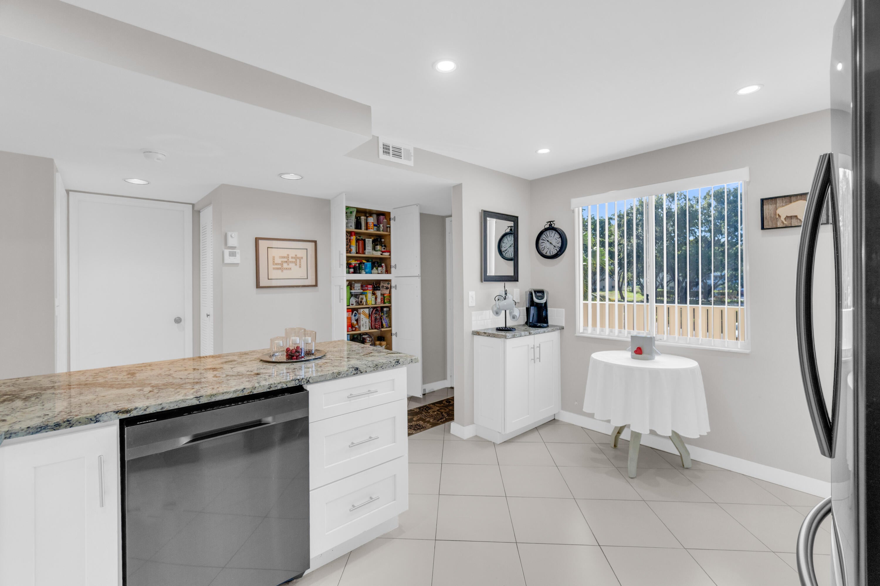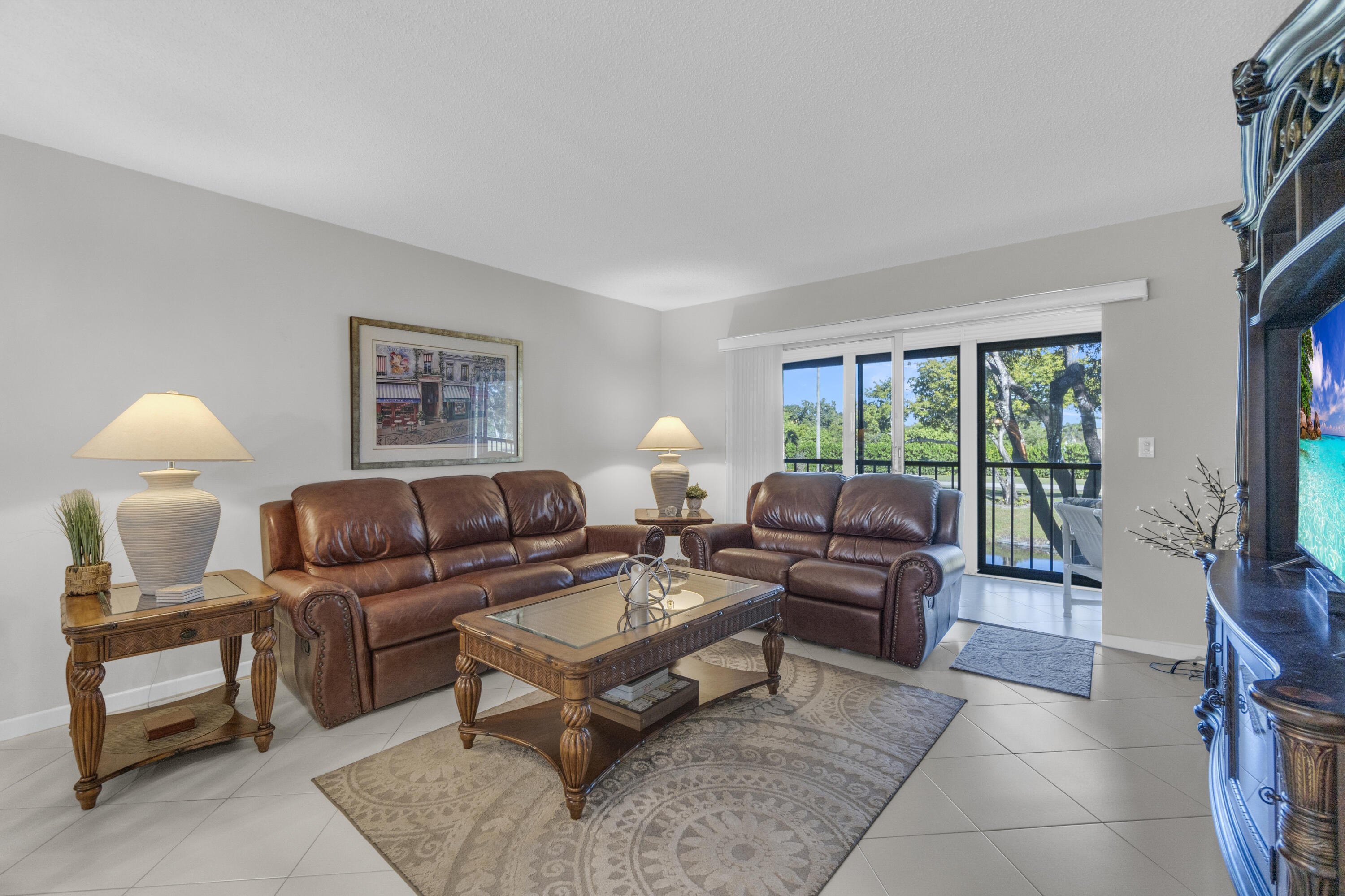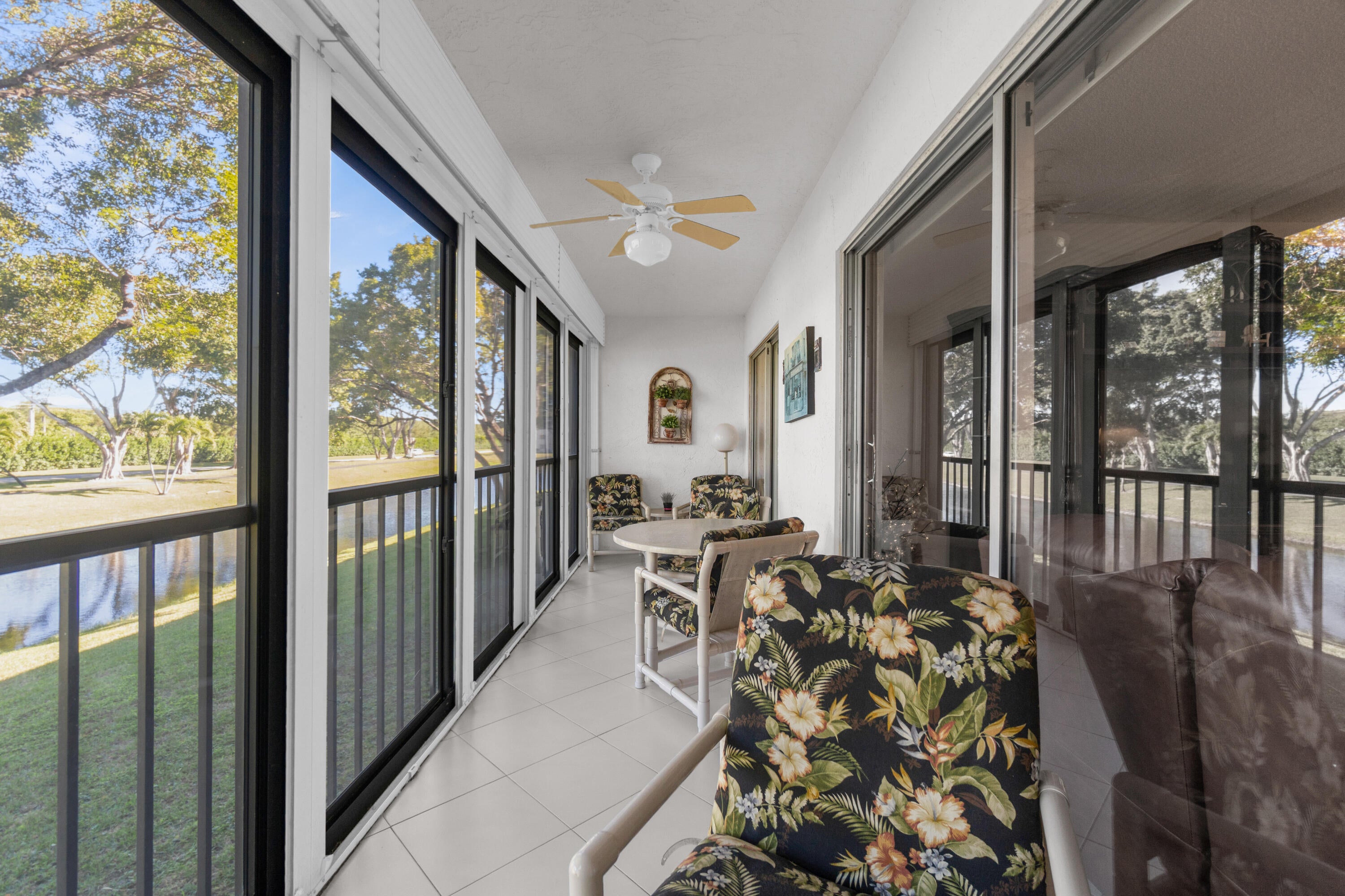 Welcome to this bright and pristine condo. Stunning open kitchen w/ white shaker cabinets, Quartz countertops, Stainless appliances, 2 pantries, and plenty of counter space. Lovely white ceramic tile throughout. Large living-dining area with access to the great enclosed balcony with nice, serene views. Makes for added living space. tastefully decorated main bedroom w/private bathroom. Another nice guest bedroom w/ bathroom. The condo is centrally located in the community. Pool right across the street. Clubhouse is down the street. Section 3 is a great place to live in. Roof is 3 years old. NO SPECIAL ASSESSMENT!!!Don't miss out on the Magnificent renovated clubhouse and sports facilities.. 610 seat theater, 350 seat banquet room, 2 card rooms, billiard room, aerobic and weight rooms, indoor pool, 9 pickleball, 4 Har Tru tennis courts, 3 paddle tennis courts, and clubs galore. Welcome to paradise!!! VERY ACTIVE 55+ COMMUNITY!!!