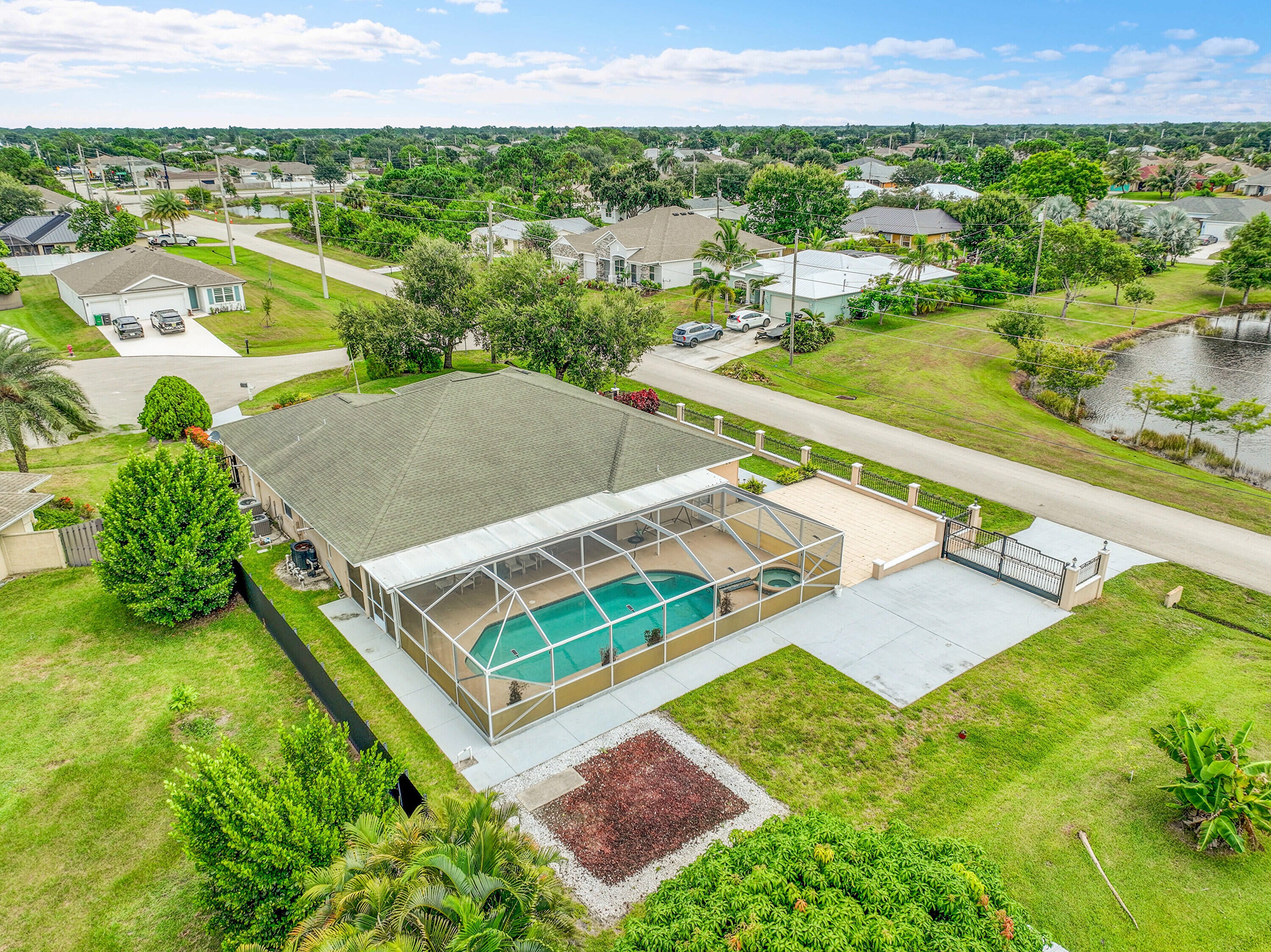 Beautiful pool home in a PRIME Port St. Lucie location! This original-owner property is tucked away on a quiet cul-de-sac. Recent updates include AC (2025), pool pump (2026), and a new roof currently being installed. The home features 3 bedrooms, 2 baths, an office, a sitting room, 2 dining areas, 2 entrances, and 2 gates, offering flexibility and convenience. The open floor plan showcases vaulted ceilings, abundant natural light, and a spacious kitchen with ample storage. The primary suite includes a walk-in closet and spa-style bath. Enjoy a screened patio, sparkling pool, fenced yard, RV/boat parking, and the freedom of NO HOA. Appliances (refrigerator, washer, dryer, oven, microwave, dishwasher) are included; furnishings and decor are not. Minutes to I-95, Turnpike, and shopping.