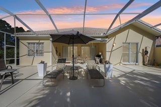 Tucked at the end of a peaceful cul de sac, this rare oversized property delivers true retreat style privacy in one of Divosta's most desirable communities. The coveted Carlyle model offers a relaxed, coastal inspired lifestyle with 4 bed/3.5 baths, a welcoming front porch for slow mornings, and new kitchen appliances that elevate everyday living.High ceilings, crown molding, custom light fixtures, and a built in wall unit create an inviting, polished interior. The cozy front sitting room with fireplace and the dining area framed by a dramatic wall of fixed glass doors bring warmth and natural light throughout the home. A soft water filtration service adds comfort and convenience. All outside lanai furnishings including fountain and furniture as well as 3 wall covering art convey.Resort style amenities include a sparkling pool, tennis, pickleball, bocce, a clubhouse, and a fitness center. Enjoy walking, biking, and jogging through the community, then explore nearby boutiques, local restaurants, and the stunning beaches of Hobe Sound. Homes with this level of privacy, charm, and lifestyle appeal are rarely available.