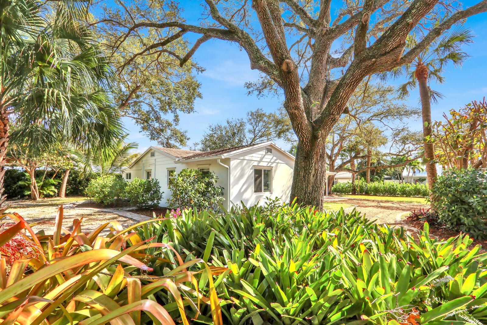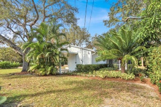 Rarely available single family bungalow in Jupiter's hidden gem of Yacht Club Estates. 2BR/2BA with original terrazzo flooring, new kitchen with white shaker cabinets, quartz countertops and stainless appliances. Bathrooms have also been undated. Stackable washer and dryer in exterior laundry area. Screened lanai, and a beautifully landscaped property, ready for a custom pool or room to add on to the home.