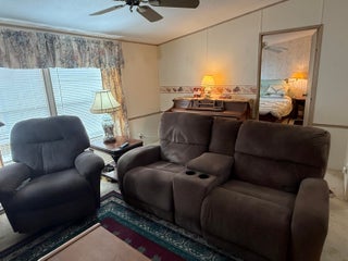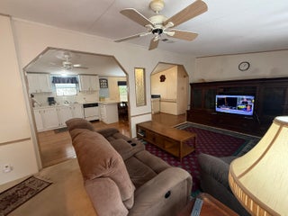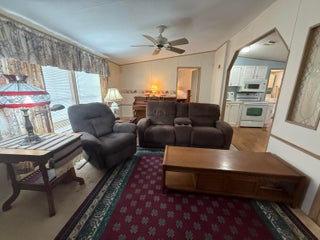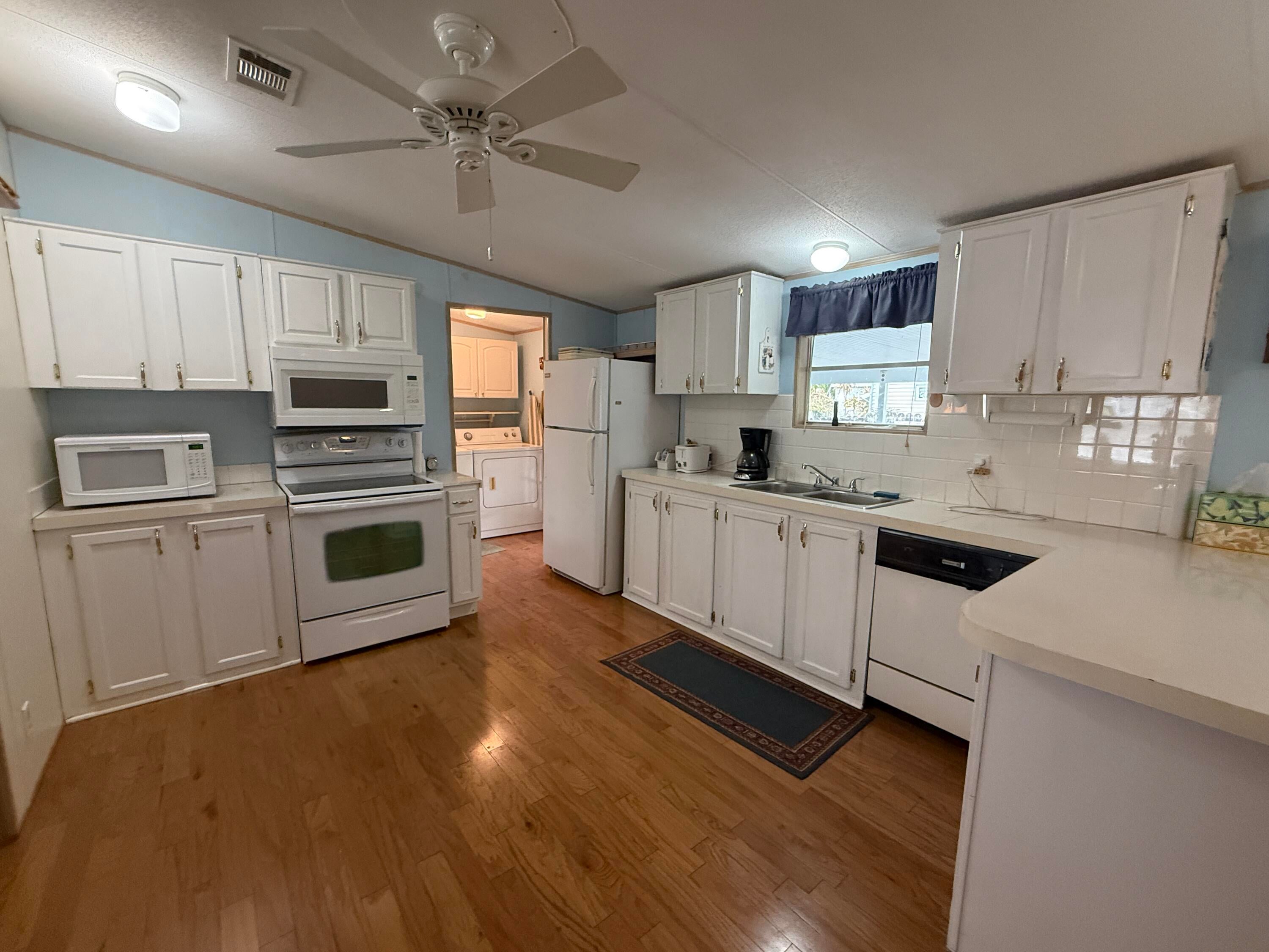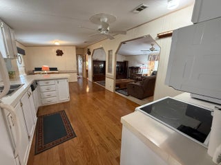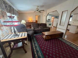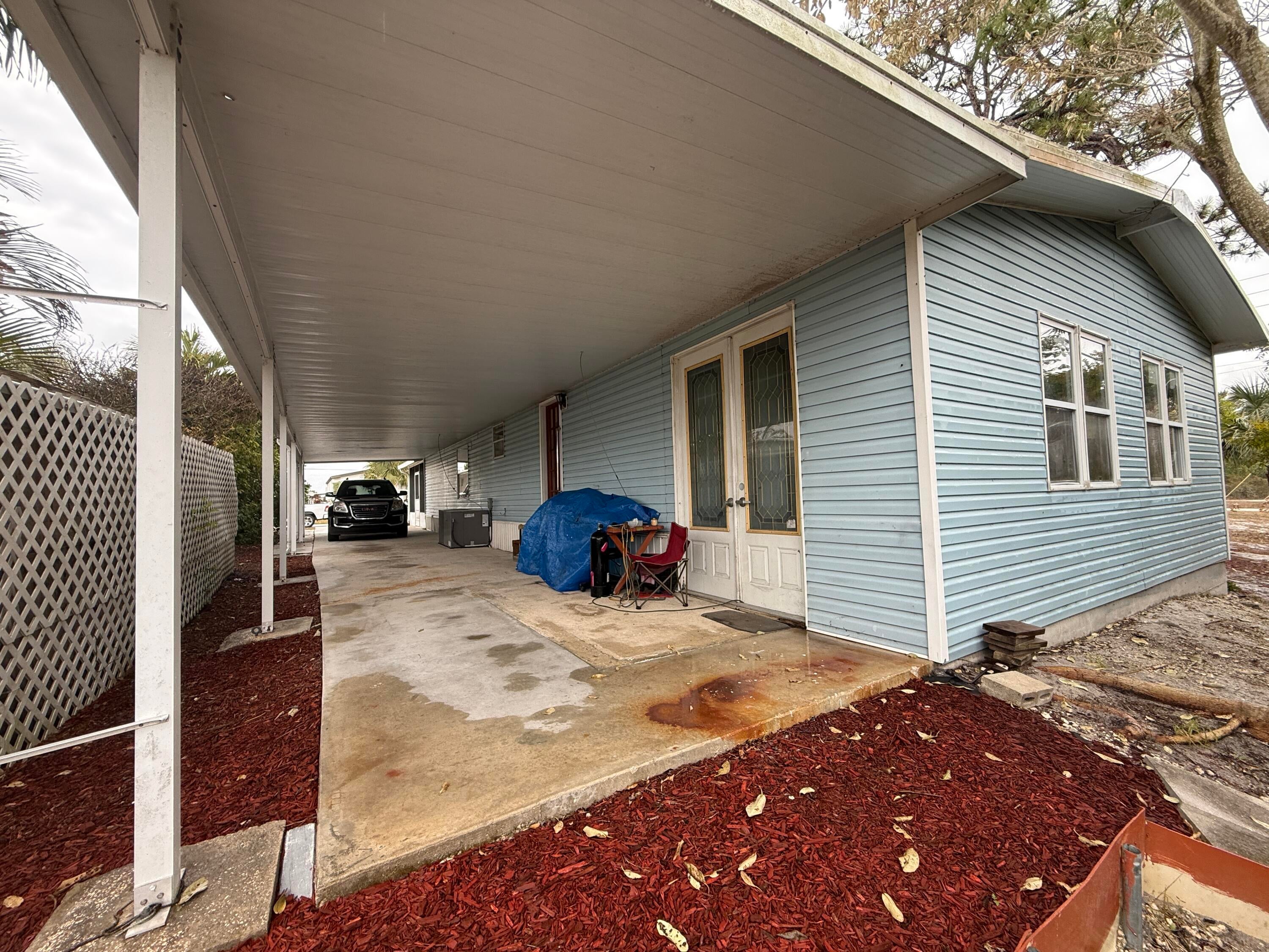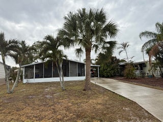 2 Bedroom/ 2 Bath + Office Manufactured Home in Ridgeway, all ages, community in Hobe Sound. Wonderful 27X14 front Screened room facing East & capturing Ocean Breezes. This is where you'll relax & enjoy the tropical So FL climate all year long. As you enter the home, there is an Office on your right & a guest room & full bath on your left. You then enter the inviting Great Room & open, fully equipped Kitchen. Right off the kitchen is the laundry room w Washer & Dryer. Also on this side of the home is the spacious Master Bedrm. & Master Bath. The Bedrms are on either side of the home for privacy. The Carport is extra long & there is a large shed/workshop at the back of the home. New A/C 2023, METAL ROOF. 10 additional hurricane tiedowns. Mins to Ocean Beaches & shopping. OWN THE LAND!