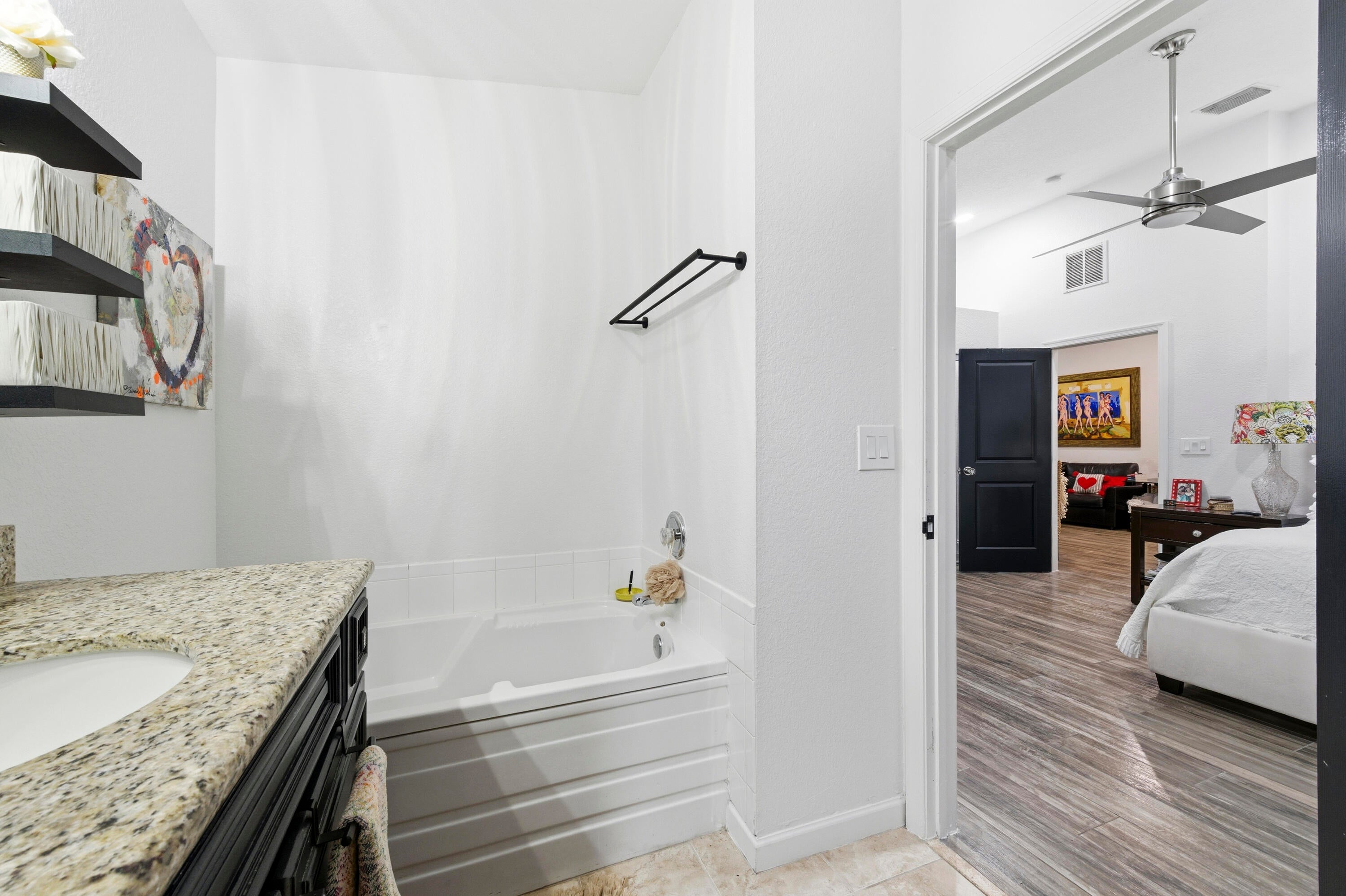 Well‑maintained 3BR/2BA home with a 2‑car garage in the gated River Bridge community. This home features vaulted ceilings, an open floor plan, tile flooring throughout, and a bright living area with additional flex space. The kitchen includes wood cabinetry and granite countertops. Major upgrades include a 2020 A/C, 2021 roof, and 2023 full impact windows and doors.River Bridge offers a manned gate, 24‑hour security, landscaping, cable, high‑speed internet, pools, tennis, playground, and more. Centrally located near shopping, dining, Wellington Mall, PBIA, and Okeeheelee Park.