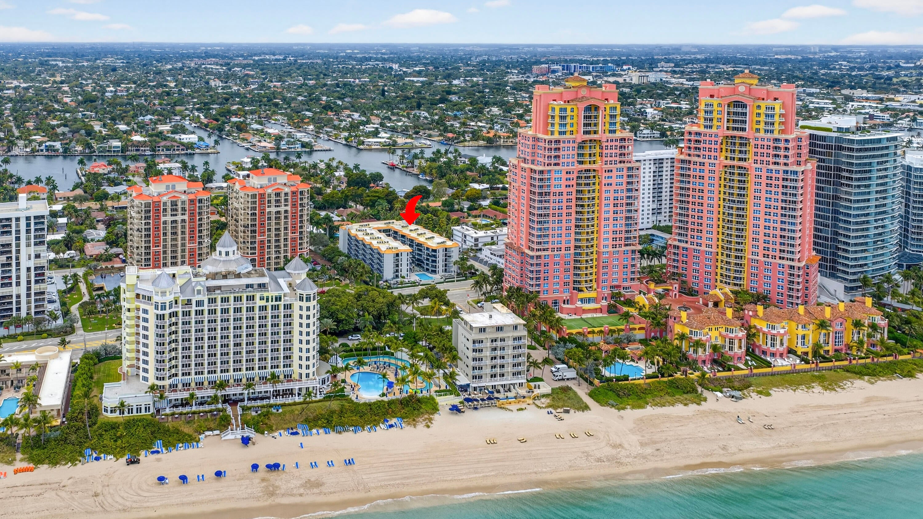Live just steps from Fort Lauderdale Beach on prestigious A1A! Enjoy ocean breezes and views from your oversized balcony in this spacious, light-filled residence offered furnished or unfurnished. Features include a large kitchen, in-unit washer and dryer, expansive living area with breakfast bar and built-in bar, perfect for entertaining. Walk-in closets and bathrooms in both bedrooms. Garage parking included. Resort-style amenities feature a pool, hot tub, BBQ area, social/party room, and fitness center. Minutes to parks, dining, shopping, and nightlife -- enjoy true beachside living in the heart of it all!