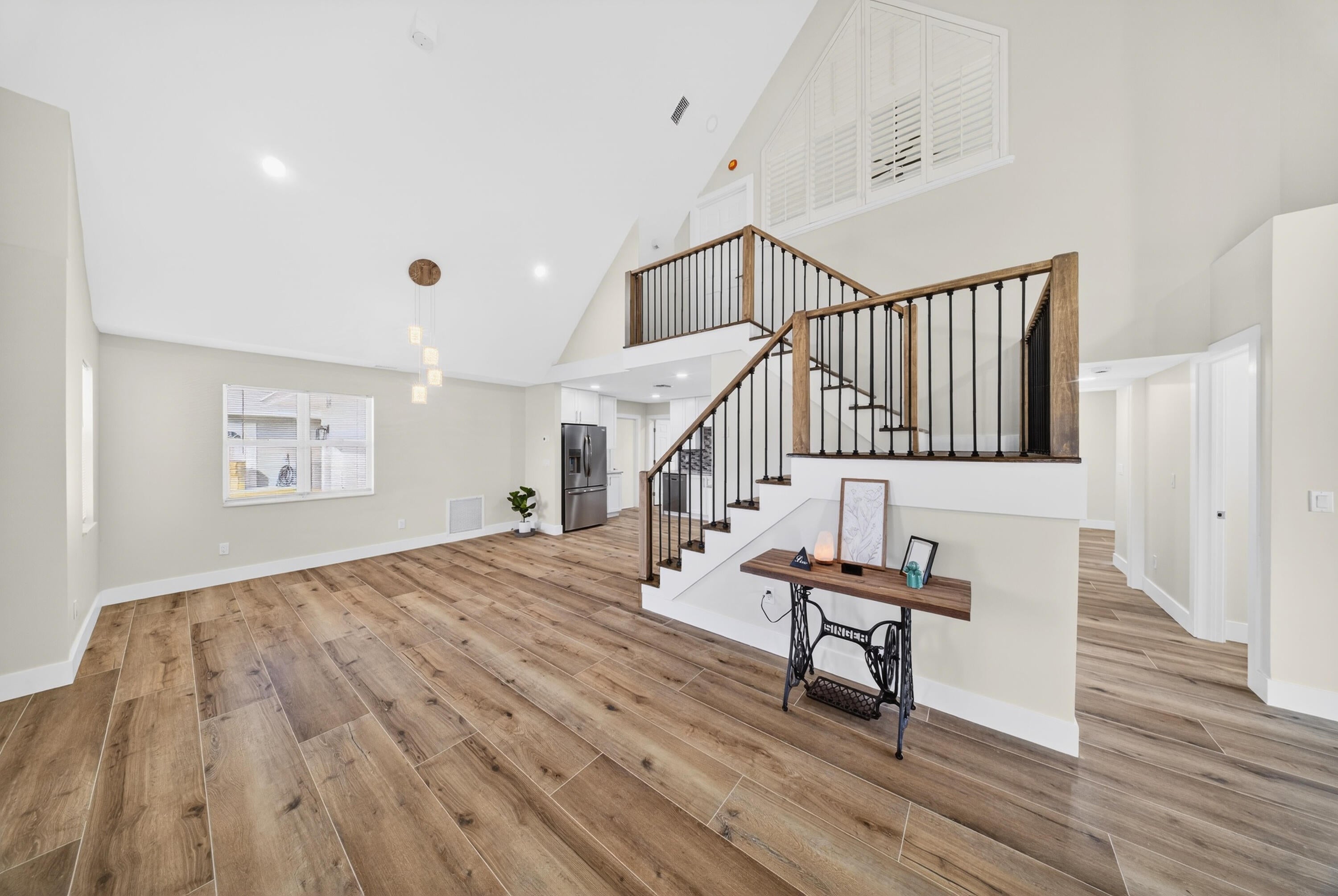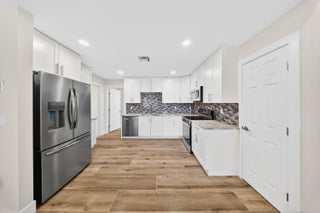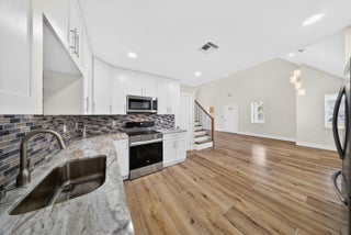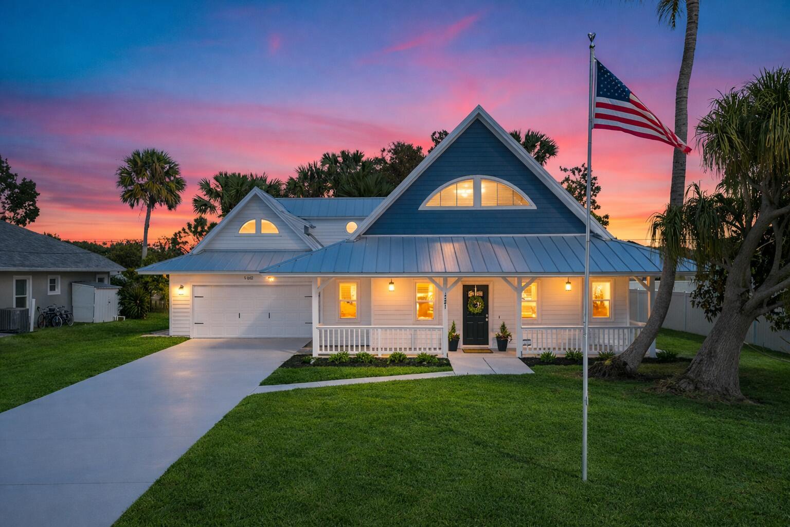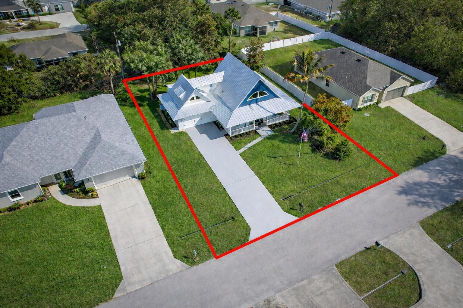 Beautifully renovated 4-bedroom, 3 full bathroom, 2-car garage two-story home showcasing timeless Craftsman-inspired elegance with thoughtful modern updates throughout. Fully remodeled from top to bottom, inside and out, this move-in-ready residence blends classic architectural charm with durable, long-term design ideal for a wide variety of family needs.The home features a new roof installed in Fall 2025, new Hardi-plank siding, plus dual A/C systems with the upstairs unit newly installed in Fall 2025. Vaulted ceilings and abundant natural light create a warm, inviting atmosphere perfect for everyday living and entertaining.The primary suite is located upstairs and offers an elegant spa-style shower with rain head and built-in sitting bench. A new en-suiteroom behind the kitchen provides flexible use as a home office, guest suite, or mother-in-law space. Additional highlights include a bedroom with a fun chalkboard wall and ample built-in storage throughout. Craftsman details shine with custom cabinetry, paneled cabinet and vanity doors, a custom staircase with classic-meets-modern railing, and high-profile clean-line baseboards. The kitchen is equipped with new appliances, including refrigerator, dishwasher, range, and microwave. Outdoors, enjoy fantastic curb appeal, mature landscaping, and fruit-bearing mango and avocado trees. The sprinkler system runs on well water with a new pump. A detached backyard storage shed includes hurricane shutters. Conveniently located just off Becker Road near the Port St. Lucie/Citrus intersection, with quick access to I-95 and the Turnpikean ideal location for commuters. Unique, charming, and thoughtfully updated, this home seamlessly balances function, character, and timeless style.