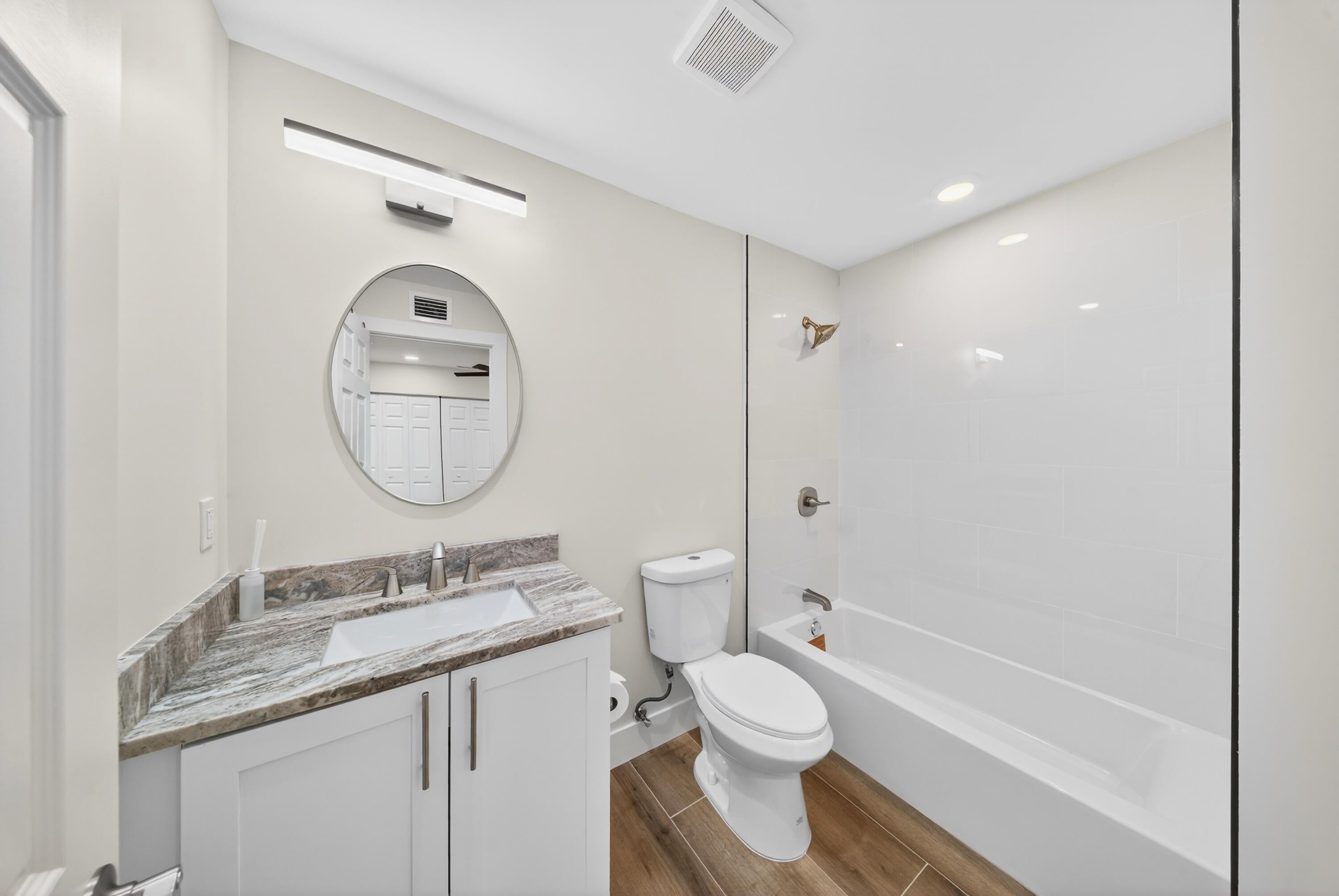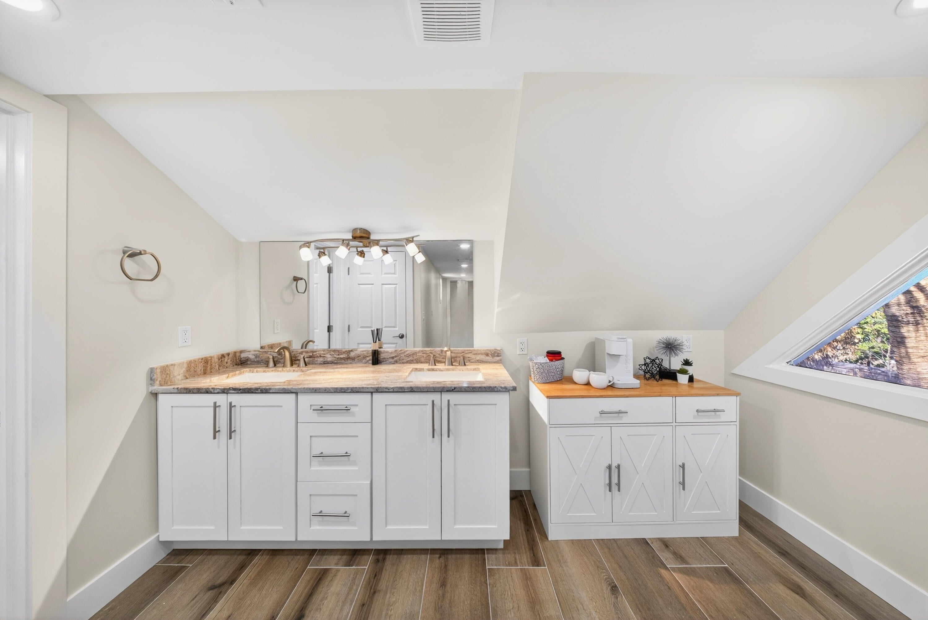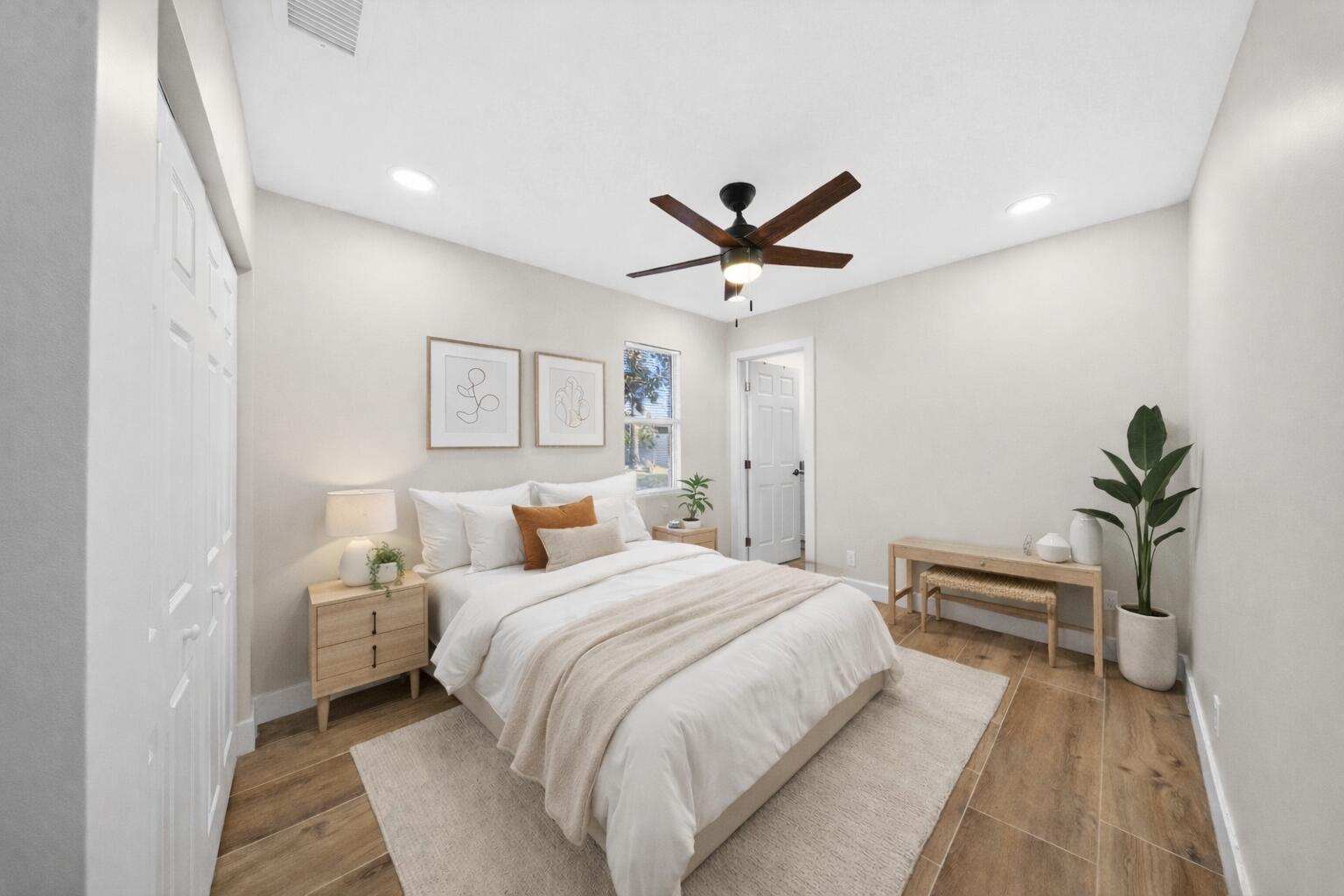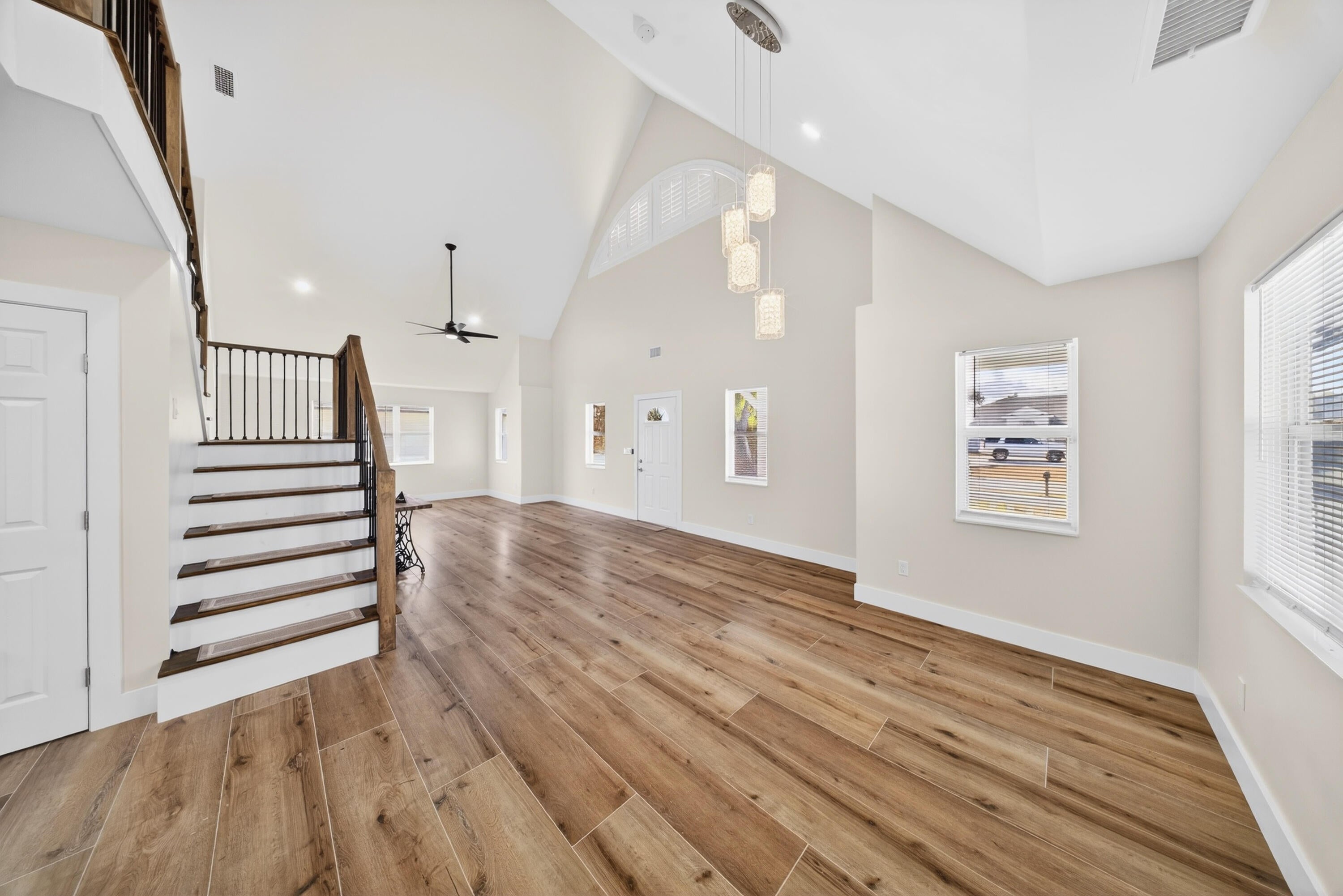 Beautifully renovated 4-bedroom, 3 full bathroom, 2-car garage two-story home showcasing timeless Craftsman-inspired elegance with thoughtful modern updates throughout. Fully remodeled from top to bottom, inside and out, this move-in-ready residence blends classic architectural charm with durable, long-term design ideal for a wide variety of family needs.The home features a new roof installed in Fall 2025, new Hardi-plank siding, plus dual A/C systems with the upstairs unit newly installed in Fall 2025. Vaulted ceilings and abundant natural light create a warm, inviting atmosphere perfect for everyday living and entertaining.The primary suite is located upstairs and offers an elegant spa-style shower with rain head and built-in sitting bench. A new en-suiteroom behind the kitchen provides flexible use as a home office, guest suite, or mother-in-law space. Additional highlights include a bedroom with a fun chalkboard wall and ample built-in storage throughout. Craftsman details shine with custom cabinetry, paneled cabinet and vanity doors, a custom staircase with classic-meets-modern railing, and high-profile clean-line baseboards. The kitchen is equipped with new appliances, including refrigerator, dishwasher, range, and microwave. Outdoors, enjoy fantastic curb appeal, mature landscaping, and fruit-bearing mango and avocado trees. The sprinkler system runs on well water with a new pump. A detached backyard storage shed includes hurricane shutters. Conveniently located just off Becker Road near the Port St. Lucie/Citrus intersection, with quick access to I-95 and the Turnpikean ideal location for commuters. Unique, charming, and thoughtfully updated, this home seamlessly balances function, character, and timeless style.
