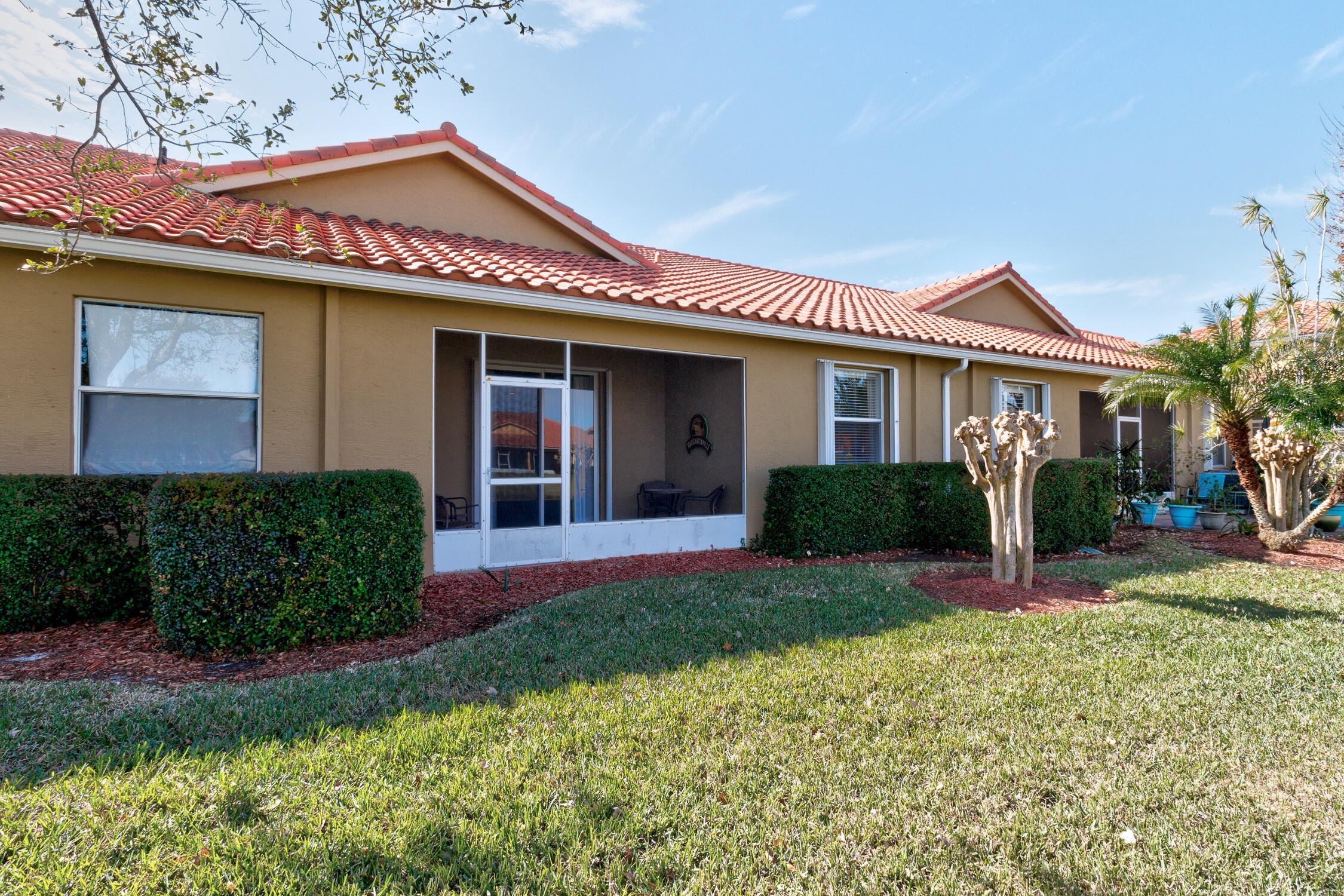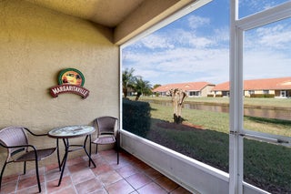 Delightful Aruba floor plan with 2+den/2bathrooms and a 1-car garage. Lakeside with beautiful views of the fountain. Open floor plan is spacious with laminate flooring throughout the living area. A wonderful place to live and play in tropical Florida. Full-service Clubhouse with full social calendar of things to do. Heated pool & spa. Tennis, fitness center, billiard room and bocce ball are only a few of the additional activities here in Woodfield. Cable TV and Internet are included in the HOA dues. Enjoy a wonderful location near a variety of dining, shopping and, of course, Vero's beautiful beaches.