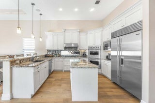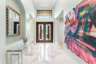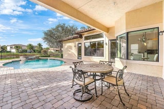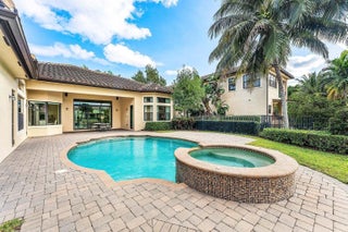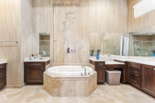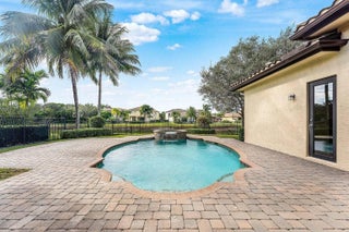 Experience elevated lakefront living for lease in this exceptional single-story Venetian Model located in the prestigious, guard-gated community of The Bridges. Perfectly positioned on an oversized lot with sweeping lake and sunset views, this expanded residence offers refined interiors, spacious living areas, and a seamless indoor-outdoor lifestyle.A dramatic double-height foyer opens to elegant formal living and dining spaces, a generous family room, and marble flooring throughout. Volume coffered ceilings, expansive windows, and a custom wet bar create a bright, sophisticated atmosphere ideal for both everyday living and entertaining. Step outside to your private backyard retreat featuring a heated saltwater pool and spa surrounded by lush landscaping and tranquil water views.Offering approximately 3,745 sq ft, the home includes 5 bedrooms, 3.5 baths, plus a large club room. The gourmet kitchen is equipped with granite countertops, premium Sub-Zero and Viking appliances, and a walk-in pantry. The spacious primary suite provides a peaceful escape with dual custom walk-in closets and a spa-inspired bath with soaking tub, dual vanities, and glass-enclosed shower. A split-bedroom layout ensures privacy for family and guests. Additional features include impact windows and doors, whole-house generator, designer lighting, custom window treatments, surround sound, and an electric vehicle charger in the garage. Residents of The Bridges enjoy world-class amenities including a resort-style clubhouse with restaurant and lounge, fitness center, tennis and pickleball courts, indoor/outdoor basketball, resort pool and spa, yoga studio, sauna, splash pad, playground, and 24-hour manned security. Luxury, comfort, and resort living all in one exceptional rental opportunity.