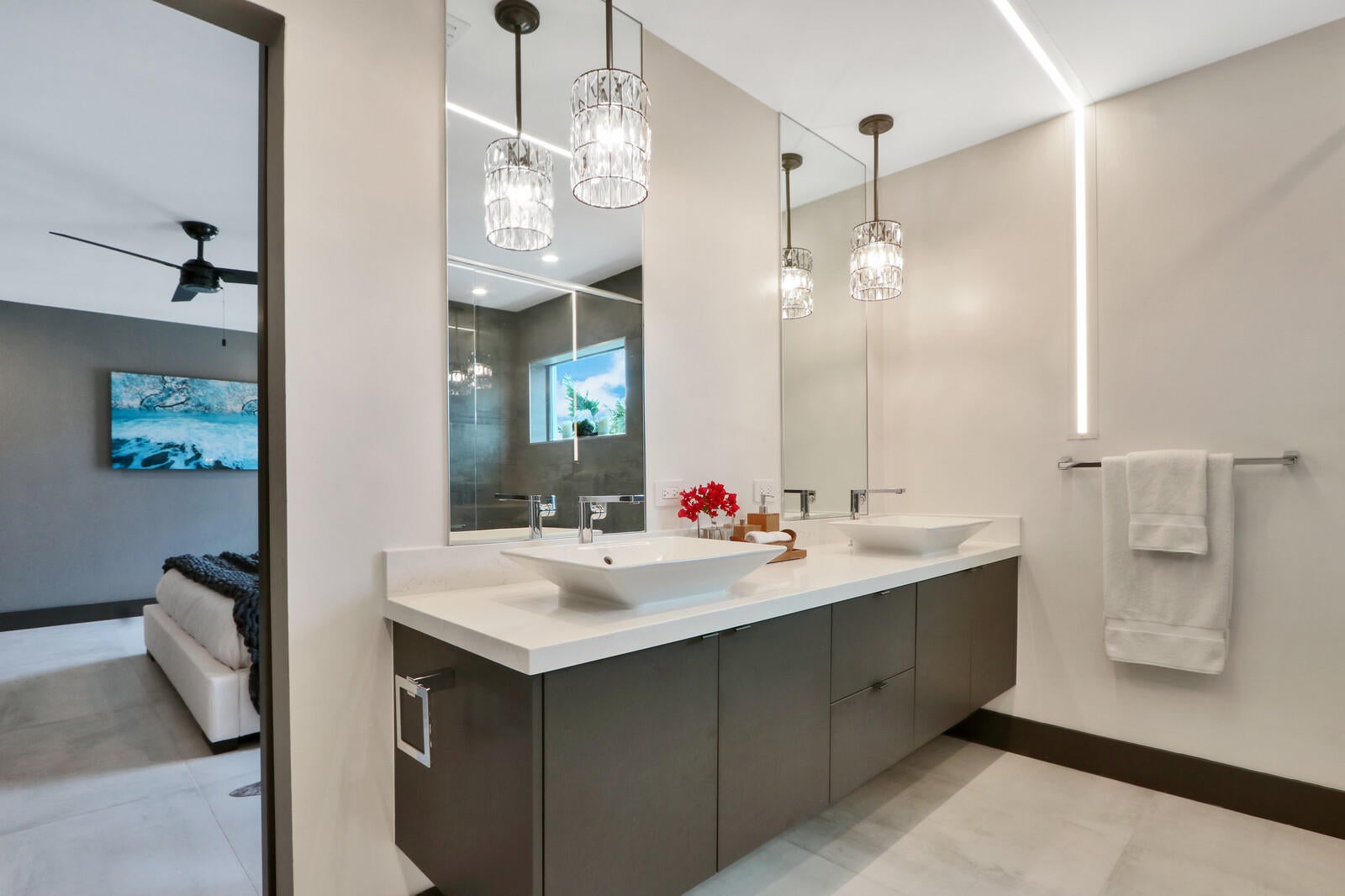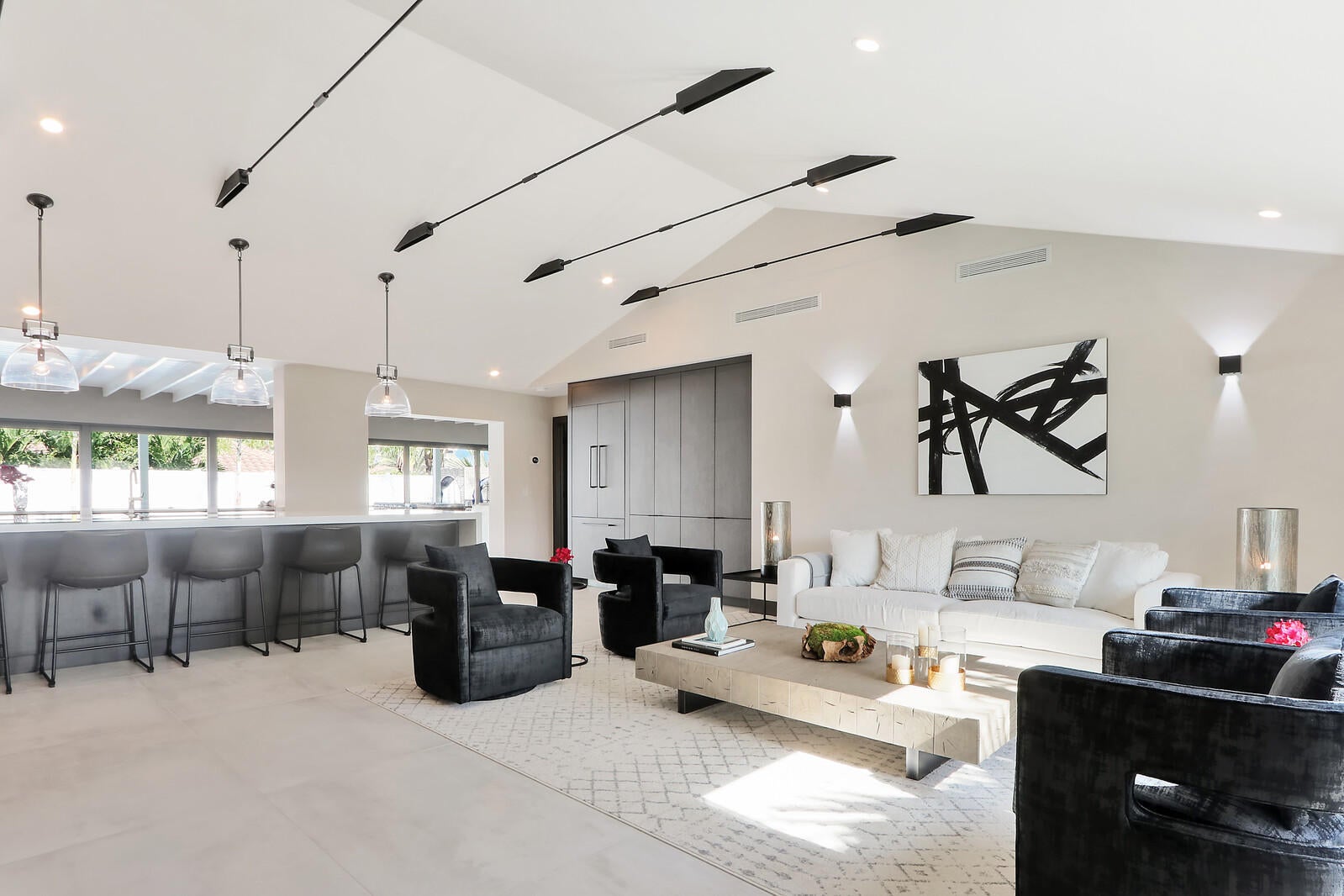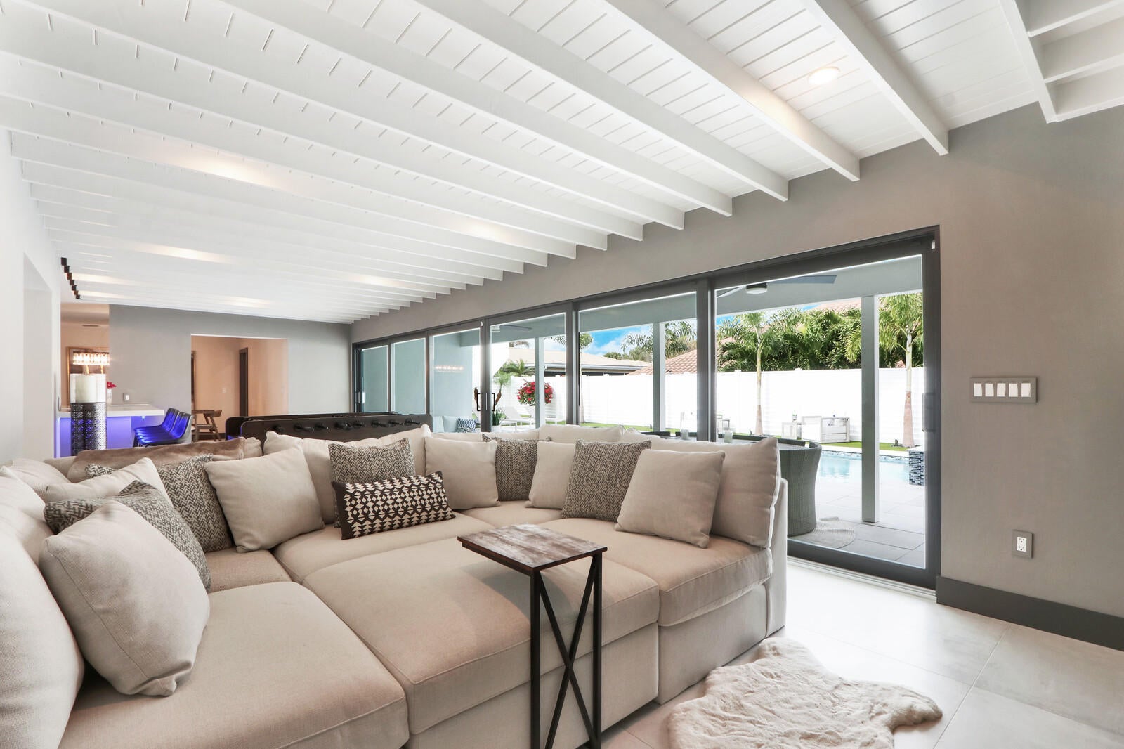 Welcome to your seaside retreat. Enjoy this professionally designed and decorated beachside paradise bringing the Northwest feel to the Juno seaside,.There is not a detail missed in this luxurious home.Sleeps 14, dining for 20. Restoration Hardware inspired decor throughout including furnishings, Italian imported porcelain concrete look flooring, and kitchen and bath appointments.The spacious and bright double living area is conducive to large gatherings featuring a double sided fireplace, entry wet bar and two separate bar top dining areas.. Entertainment room with 86'' tv and foosball table opens out into the fabulous covered outdoor living space. Kitchen features Thermadore Integrated appliances, quartz counter tops, ample custom cabinetry,printer/charger bar work station,built-in ovenand microwave and appliance pantry. Oversized master bedroom complete with walk in closet features black out window dressings for your perfect nights sleep and top of the line king size mattress. Awesome spa-like master bath has a glass enclosed wet room with soaking tub and rain shower with Kohler fixtures surrounded by special soft lighting. Enjoy the breezes off the Atlantic in your zen-like back yard with indoor/outdoor living areas complete with built in barbeque. Privacy is assured with clean white fencing surrounding palm tree lined tropically landscaped heated swimming pool and waterfall jacuzzi ,fire pit relaxation area and birds nest cabana, PUTTERS DREAM WITH 15X20 PUTTING GREEN DESIGNED WITH THE PROFESSIONAL GOLFER.IN MIND. You will be happy to come home to this hilltop get away with an ocean view at your front door. Don't miss out! Reserve today. Six month minimum for 2026-2027 season. Off season and annual rates available.