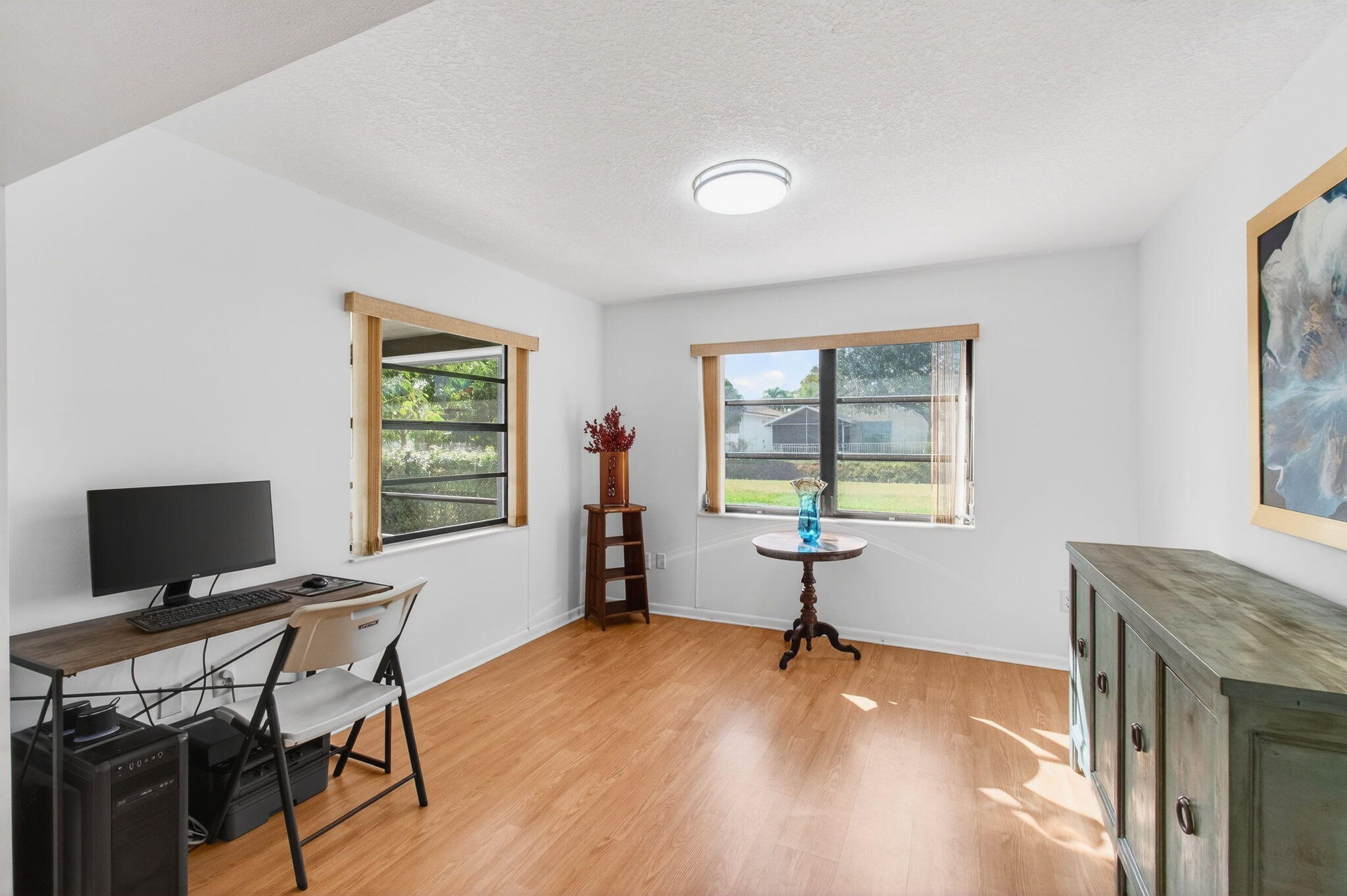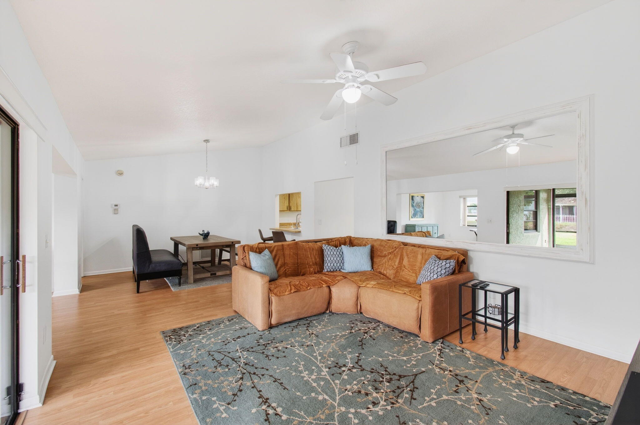 Short Sale opportunity in the desirable 55+ community of Buttonwood West in Greenacres! This super clean and well-maintained 2BR/2BA single-family home with a den/Florida room and 1-car garage features vaulted ceilings and laminate flooring throughout. Plantation shutters and accordion hurricane shutters provide style and protection. 2016 roof with gutters. Enjoy a covered and screened patio overlooking a canal for added privacy. Active community amenities include pickleball, tennis, pool, hot tub, shuffleboard, bocce, fitness room, clubhouse, card games, and night security. HOA includes fiber optic cable & internet, lawn care, irrigation, exterior lighting, and exterior painting. Subject to lender approval.