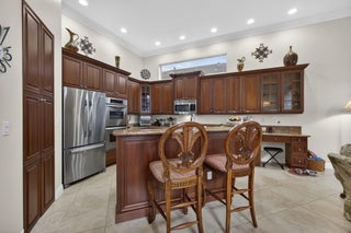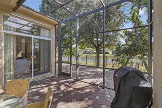 Wellington's Buena Vida community reflects the good life, with resort style community living. The featured home is one of the estate series properties offering 3 bedrooms, 2 full baths and one half bath with 2,708 SF of grand living space. This lakeside residence is elegantly appointed with a grand owners suite encompassing a spacious bedroom, attached sitting room, custom built dressing room & closet, and a richly designed owner bath. The grand kitchen area features granite counters and warm natural wood cabinets, and newer variety of stainless steel appliances. The split floor plan provides two guest bedrooms. At the hub of the home is a grand living room and formal dining area for perfection in your entertaining. Enjoy outdoor living from a screened lanai towards a tropical oasis.