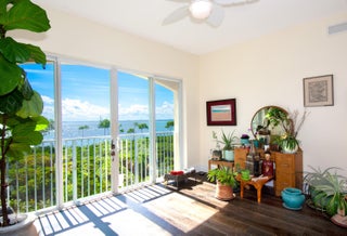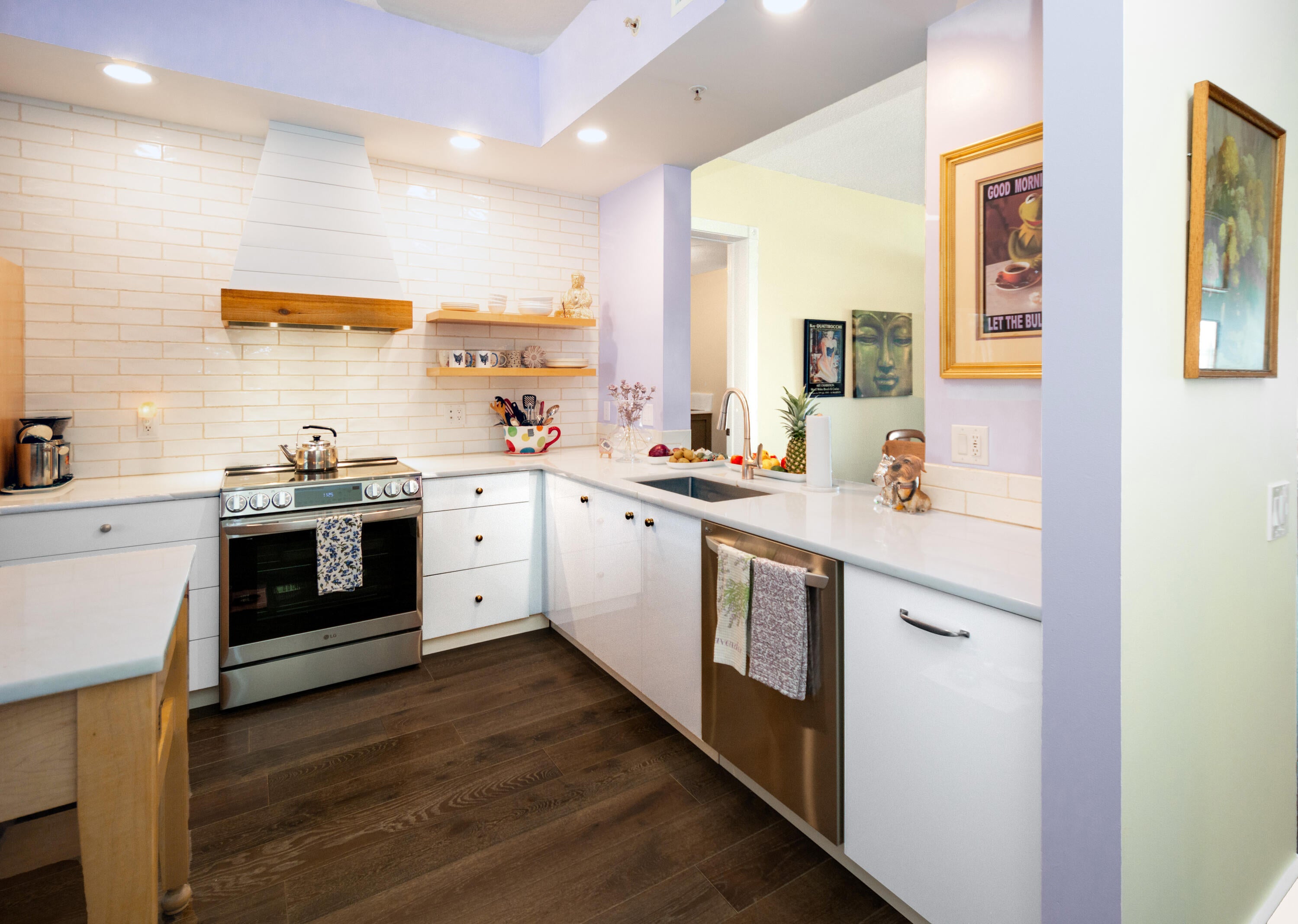 Feels like home, this waterfront condo offers breathtaking views of boats on the Indian River. Awash in natural light, high-end marble countertops, oakwood flooring, wood plantation shutters, and refined trim details throughout. Eat-in kitchen with white porcelain subway tile, custom cabinets and maple shelving, and a designer hood range for a sophisticated, airy feel. Open dining and living spaces flow seamlessly into a serene sitting room, guest bath has a custom vanity. guest hall offers custom maple wood shelves. The primary suite impresses with sunrise water views, custom split closets, and a glass barn-door entry to the luxurious spa-inspired ensuite with custom vanity, soaking tub and glass tiled shower. Butler pantry, Utility Room. HVAC, appliances under 3 yrs old.