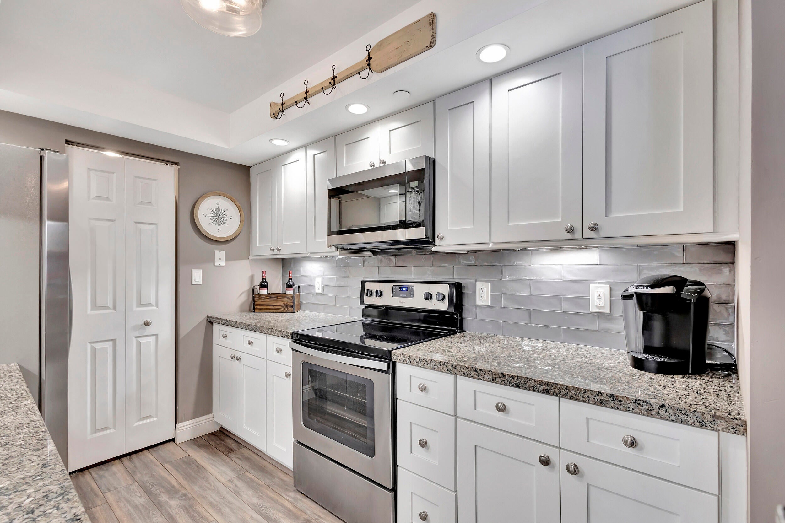 Come home to the turqoise ocean and indigo intracoastal - large balcony is perfect for morning coffee or evening cocktails. Floor to ceiling impact sliders w/ LR & BR access. Opened kitchen w/ subway tile backsplash, granite counters & stainless-steel appliances. King bed. Washer/dryer inside unit. Tiara offers true comfort & peace of mind. Upon arrival through the 24 hr staffed security gate, the valet parks your car (if you choose) and you're greeted by a 24 hr concierge. Have a cocktail or meal in the 43rd floor lounge/restaurant. Treat yourself to breakfast or lunch delivered to your unit from the Gazebo cafe. The beach at Tiara is sprawling and the access is flat - no stairs or dunes. Pool, pickleball, tennis + more. Shopping, dining & PBI airport close by.