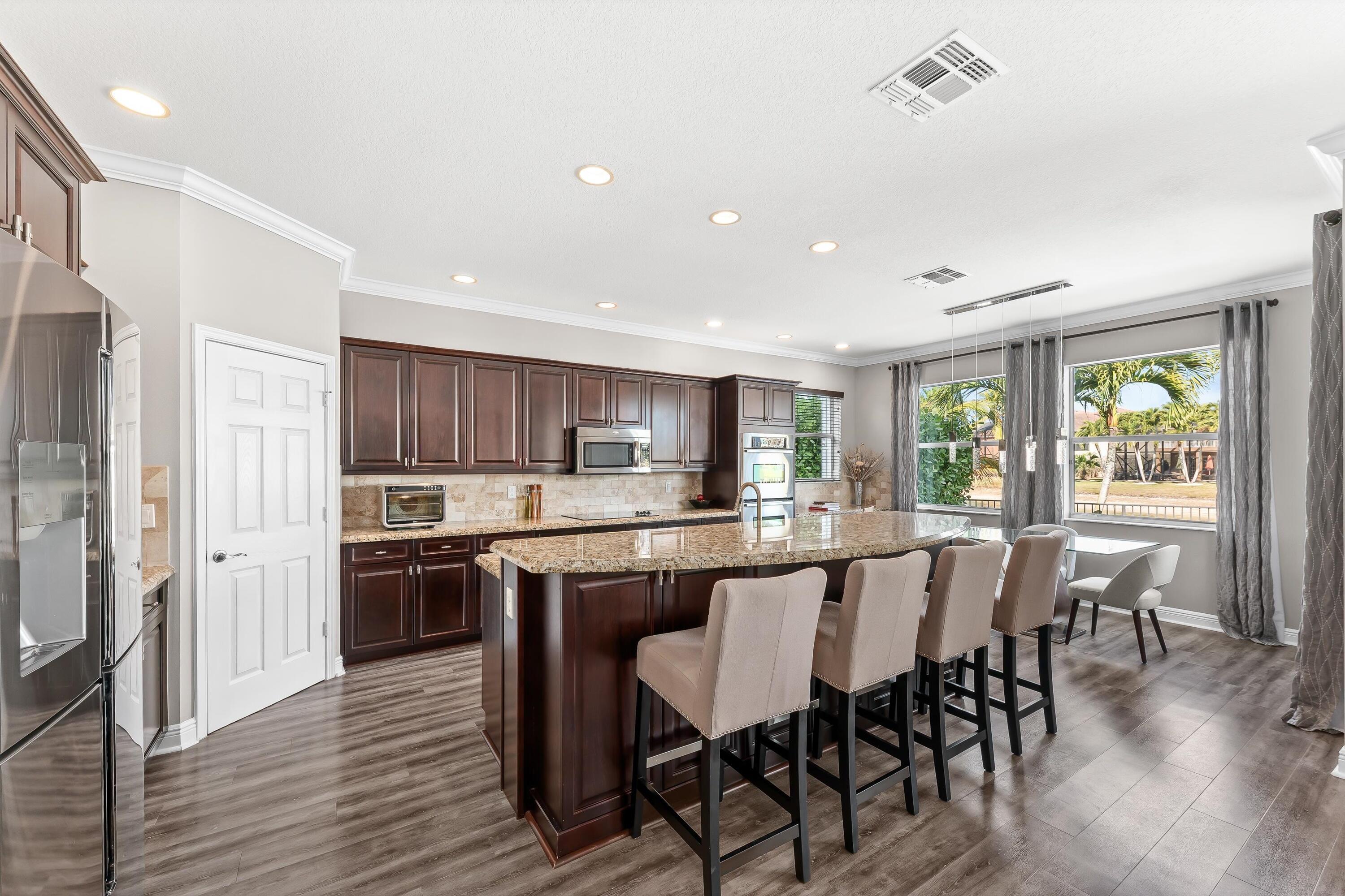 Welcome to Wellington's prestigious and premier resort style community Olympia! You can enjoy paradise living in this over 4600 ttl. sq. ft. 5 bedroom home with a spectacular newer saltwater pool, huge spa, and plenty of travertine. Enjoy a swim and enjoy the beautiful lake view! All of this in the prestigious Phipps Village, one of Olympia newest villages. This home is in new condition, it has been remarkably cared for and pride of ownership doesn't sum up this perfection! This home is perfect for indoor/outdoor living, indoor and outdoor space becoming one. Large covered patio area as well. The kitchen is stunning with white wood cabinets, stainless appliances, and a stunning granite.The open concept of the home makes it feel even larger than it is, and the gorgeous kitchen is open to all, ready for entertaining. Main floor includes formal dining, living, family, and eat in kitchen as well as a huge island for gathering friends. There is also a first floor bedroom with a full en suite bath. Additional half bath as well. In addition, there is an office on the main floor. Owner's Suite is dreamy and huge. Large massive walk in closets. Large en suite bathroom with separate sink areas, soaking tub, and standing shower with neutral tiling. Laundry room is also upstairs and is expansive! Garage is a 2 car garage with plenty of storage, and in show room condition, check out the pics. This beautiful home is ready for a new family to love! This home is one of the newest built in Olympia at 12 years young. The home is walking distance to the schools for ease of access, no car driving needed! Olympia is Wellington's premier resort style community that is unparalleled in amenities and true bustling community feel, and this estate in the gorgeous Phipps Village. The magnificent and gigantic zero entry community pool is truly the best community or resort pool I have ever seen and includes private cabanas and an exciting splash pad for the kids. The clubhouse also includes indoor and outdoor basketball courts, pickleball court, volleyball court, tennis courts, an incredibly impressive upscale clubhouse, updated fitness center, and an entirely renovated brand new huge and fun playground complete with astroturf and tons of fun equipment for the kids. Low HOA dues include high speed ATT internet, four manned security entrances, 24 hour rovers, and more. Such a wonderful community feel here. The home is located within walking distance to the clubhouse, restaurants, and shopping. Phipps Village is a premier estate section in Olympia, our newest village built, and a beautiful place to call home. Olympia offers a country club experience without the dues including family fun runs, 5k, 10k, luaus, karate lessons, yoga, 20's themed flapper parties, mom and daughter painting nights, ladies brunches, food trucks, bounce houses and waterslides, pizza parties, holiday parties, end of school year parties, outdoor movie nights, and the list goes on. This is a true community feel. Did I mention the top A rated Wellington schools? Come see this home, it is as gorgeous in person as it is in these photos. You deserve to live the Olympia lifestyle, now it is time to make your dream a reality.