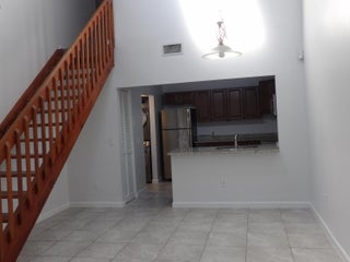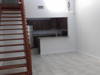 Beautiful 3 bedrooms, 2 bathrooms corner unit, with fenced patio, nice kitchen granite counter and wood cabinets, stainless-steel appliances. Large master bedroom on the first floor offers privacy and the other two bedroom on second floor, all tile first floor, carpet on second floor bedrooms, nice view grass and the club house with community pool, the light filled the residence with vaulted ceiling with skylight.