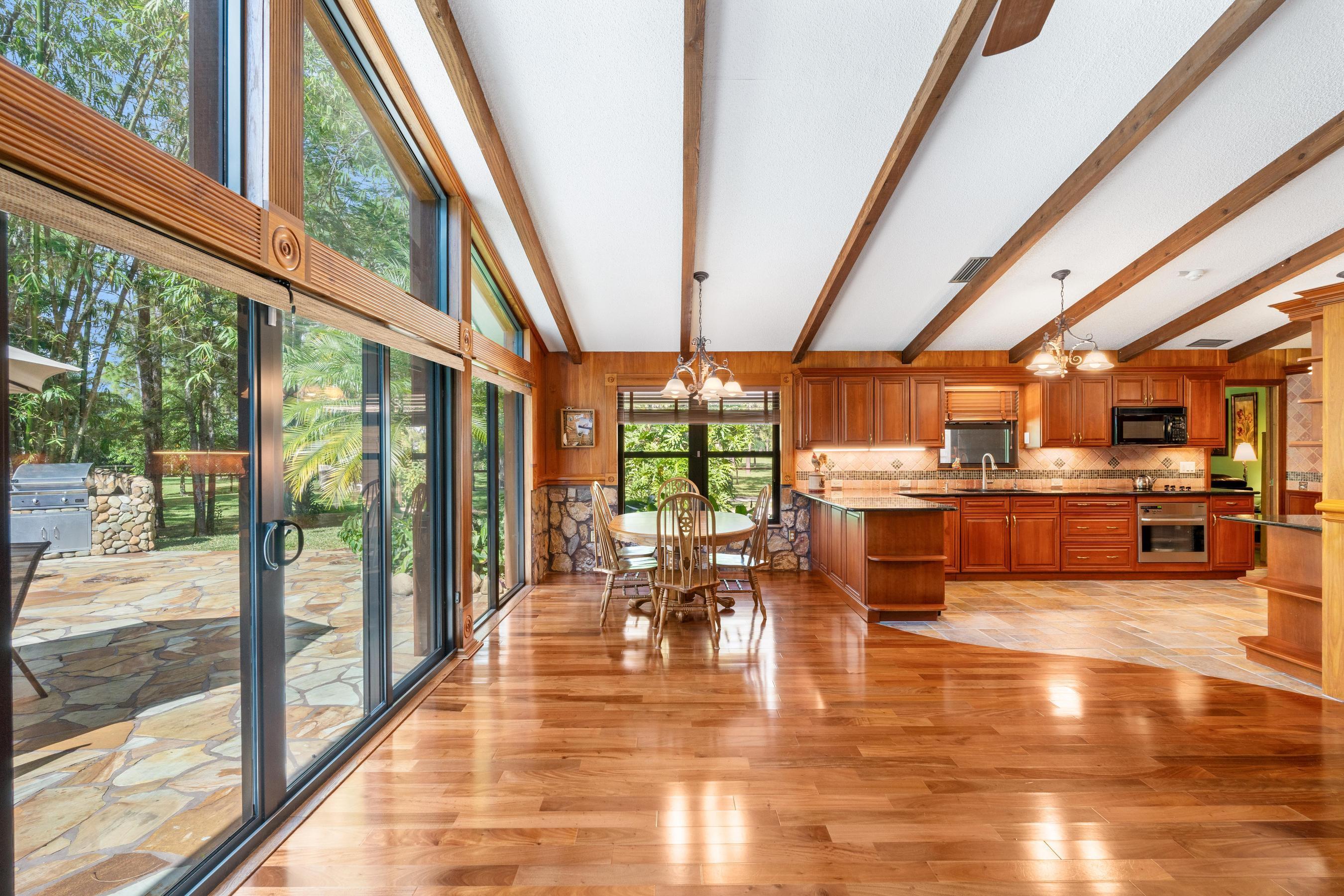 Welcome HomeWelcome home to this rustic estate retreat set on 5 private acres within the securely gated community of Homeland in Wellington. Thoughtfully cared for and quietly improved over time, this property offers the rare opportunity to enjoy a home that feels like a true sanctuary, while still benefiting from modern reliability and comfort. The main residence features 4 bedrooms and 3 full bathrooms, filled with warm character and timeless appeal. Natural wood elements, teak paneling, and exposed beams create inviting living spaces that feel grounded and authentic. Behind the scenes, the home has been maintained with attention to major systems and infrastructure, allowing the next owner to enjoy peace of mind without sacrificing the home's rustic charm. The home opens to serene outdoor spaces designed for both relaxation and gathering. A saltwater pool and spa, expansive patio areas, and a quiet natural setting make it easy to unwind, entertain, or simply enjoy the stillness of your surroundings. The estate benefits from reliable utilities and thoughtful enhancements that support year-round living, whether the home is used seasonally or full-time. Set on 5 usable acres, the property offers open land, mature landscaping, and a level of privacy that is increasingly rare. A barn and separate guest cottage add flexibility for horses, hobbies, visiting family, or extended stays, while the fully fenced grounds and dual water sources support both lifestyle and functionality. Located within a manned, gated community known for its security, scenic riding trails, and equestrian-friendly environment, this home delivers a sense of seclusion without isolation. Despite its peaceful setting, the property remains just minutes from Wellington's shopping, dining, schools, and everyday conveniences. This is more than a home, it's a place to disconnect, recharge, and live intentionally. A rare rustic Wellington estate where land, privacy, character, and thoughtful care come together to create a true retreat. May also be purchased in conjunction with the adjacent LOT 19 (RX-11161691)