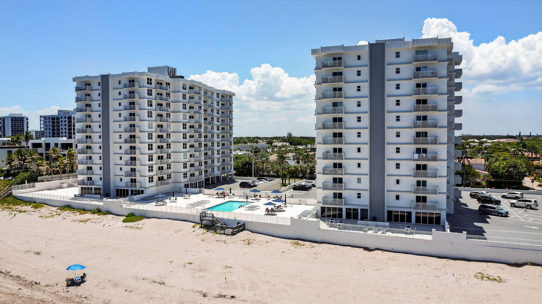 Sparkling ocean or intracoastal from most every room! Live directly on the sand at 45 Ocean nestled among oceanfront mansions and turquoise waterways. This updated 2 bed/2bath condo, SOUTHERN EXPOSURE allowing plenty of natural sunlight. CORNER UNIT with TWO BALCONIES! THIS IS THE ONE YOU HAVE BEEN WAITING FOR! Enjoy newly completed concrete restoration, stunning NEW OCEANFRONT DECK, pool and barbeques, great for entertaining! Walk with morning coffee in hand with just steps to the ocean. WATCH THE SUNRISE AND SUNSET! Highland Beach, Florida's best kept secret! All sizes deemed accurate but not to be relied upon. ***INVESTORS WELCOME-NO WAITING PERIOD TO LEASE***FURNITURE NEGOTIABLE