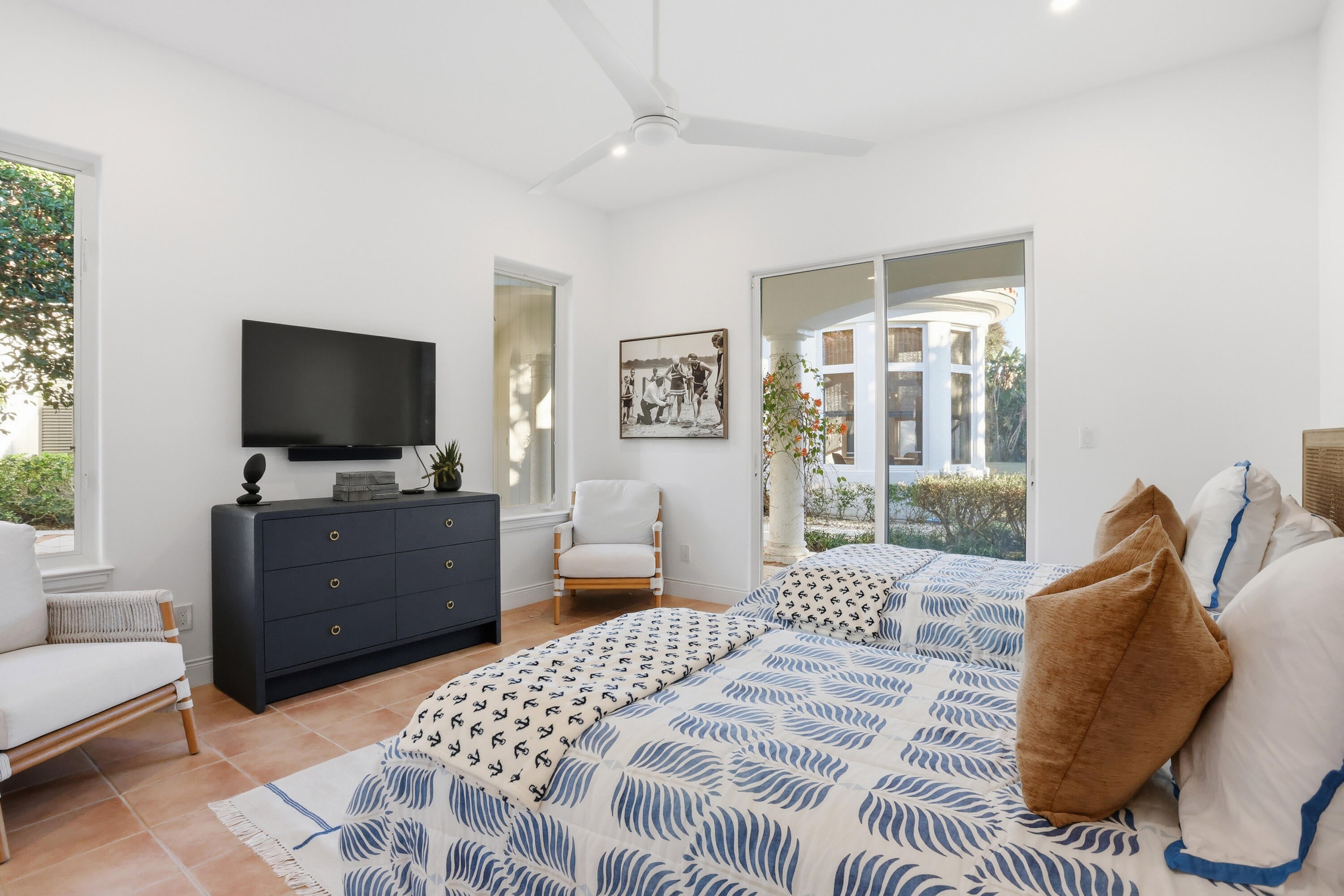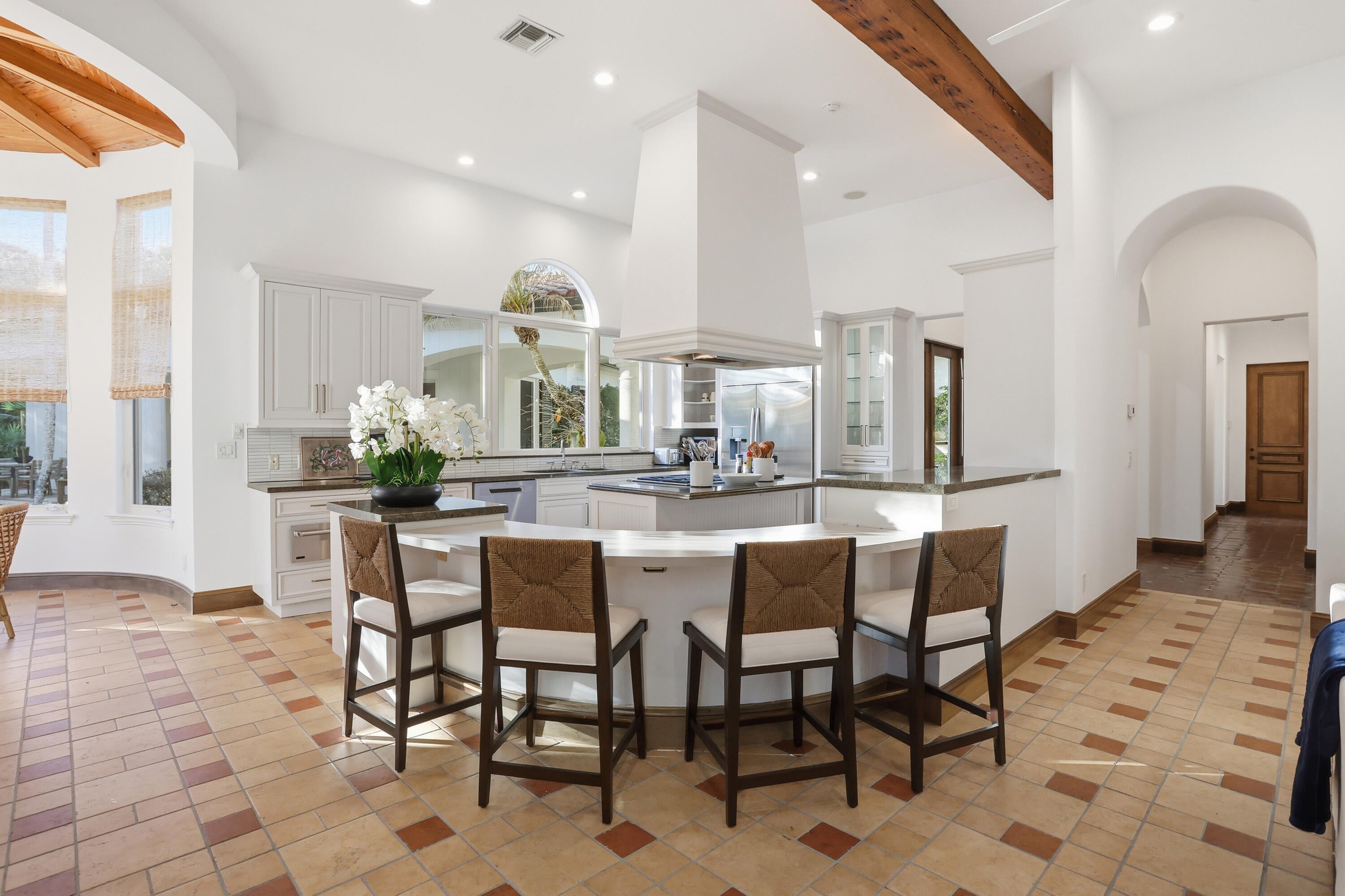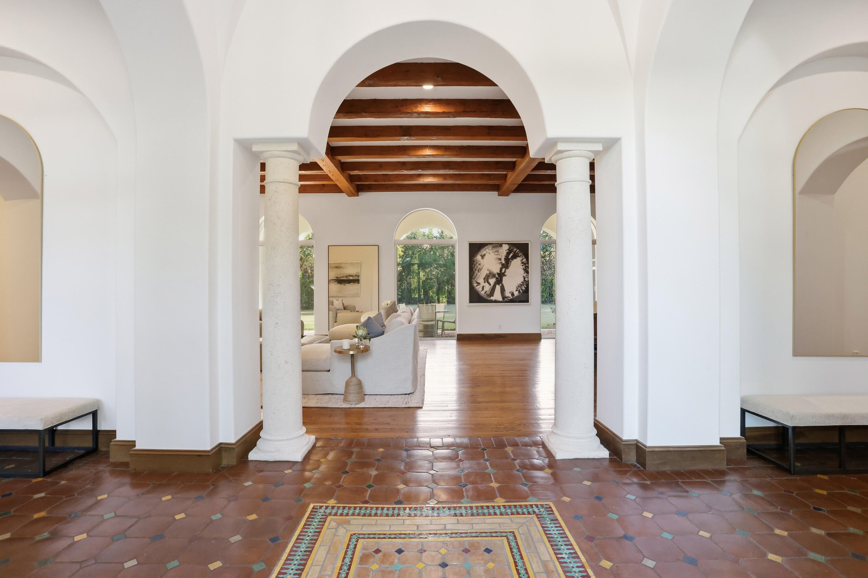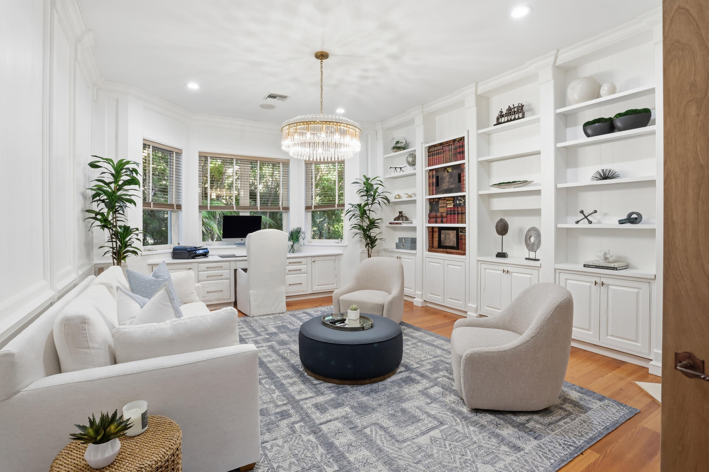 A residence of rare scale and architectural distinction, this meticulously designed Loblolly Pines estate offers over 6,100 square feet of living area and has been thoughtfully updated inside and out in a crisp white palette and professionally staged to highlight its timeless elegance and refined proportions. Impressive 12-foot ceilings, accented by pecky cypress beams, establish volume and warmth throughout the home, while generously scaled rooms provide an exceptional setting for both refined entertaining and comfortable everyday living.The main residence features a thoughtful balance of formal and casual living spaces, anchored by a grand fireplace in the living room that enhances both ambiance and architectural presence.Discreet alcoves are seamlessly integrated for work, study, or personal electronics, preserving the home's clean flow and functionality. The primary suite serves as a private retreat, offering a spacious walk-in closet, dual water closets, and a spa-inspired bath. A well-appointed guest bedroom with an ensuite bath and a refined den/library, featuring extensive custom built-in cabinetry and its own fireplace, complete the main residence. Set on a rare 1.37-acre double lot, the property provides exceptional privacy and a true Loblolly estate setting. A three-car garage and whole-house generator add convenience and peace of mind. The self-contained guest house overlooks the expansive backyard and swimming pool and offers remarkable flexibility for hosting family or guests, featuring a full kitchen, living area, two bedrooms, and two baths, while remaining seamlessly connected to the main residence. This exceptional estate offers a rare opportunity to combine architectural integrity, privacy, and lifestyle at the highest level.