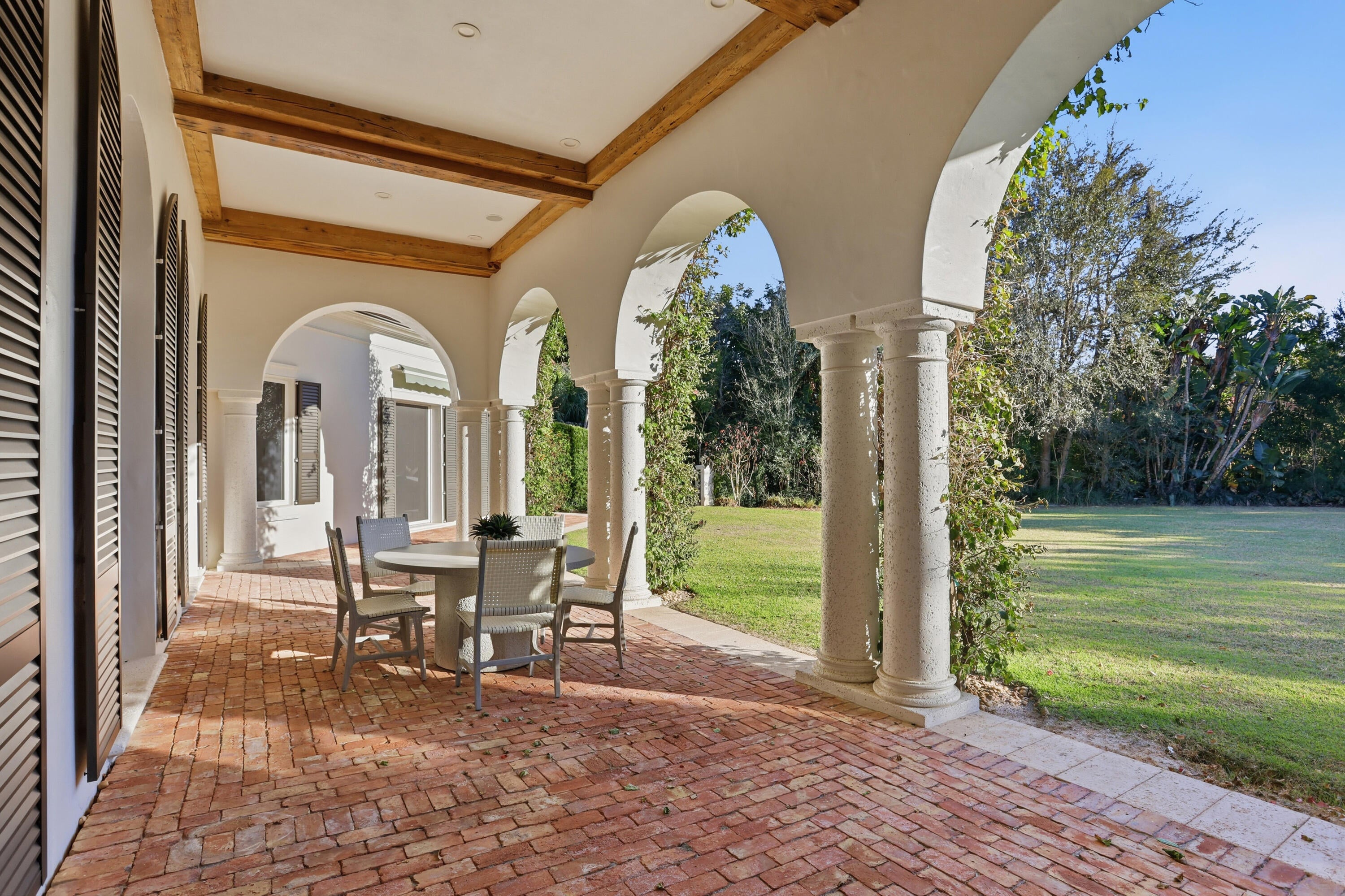 Auto Sprinkler, Covered Patio, Screened Patio, Zoned Sprinkler, Shutters, Open Porch, Custom Lighting