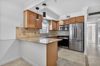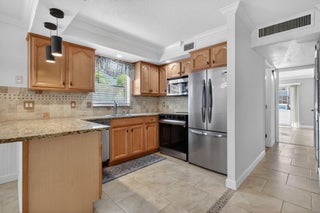 Beautifully previously renovated 2-bedroom, 2-bath condo, 1st floor in Kings Point an over 55+ community, well maintained, bright & features an open-concept kitchen w/granite countertops, stainless steel appliances (2024) & wooden cabinetry, large pantry closet, tile flooring & crown molding throughout, baseboards, new fans & black fixtures, LED & recessed lighting, primary bedroom w/custom closet. Bathrooms offers a shower & tub. Bedroom provides direct access to the enclosed patio, where you'll also find your washer & dryer for added convenience. Amenities: Billiards, Bocce Ball; Cafe/Restaurant; Clubhouse; Community Room; Courtesy Bus; Fitness Ctr.; Game Room; Multiple Pools, Library; Shuffleboard; Tennis. Close to FL turnpike, Restaurants & Delray Med. Ctr.