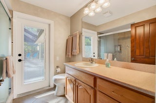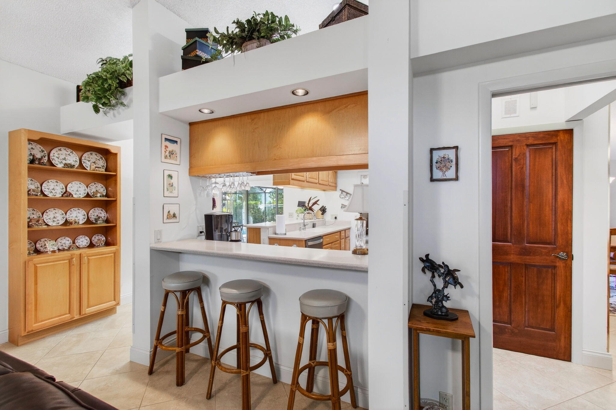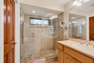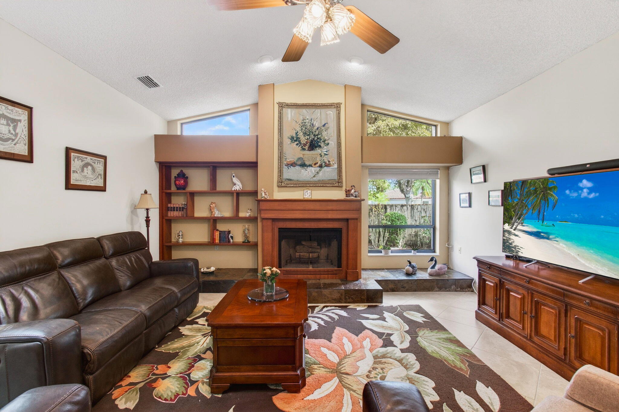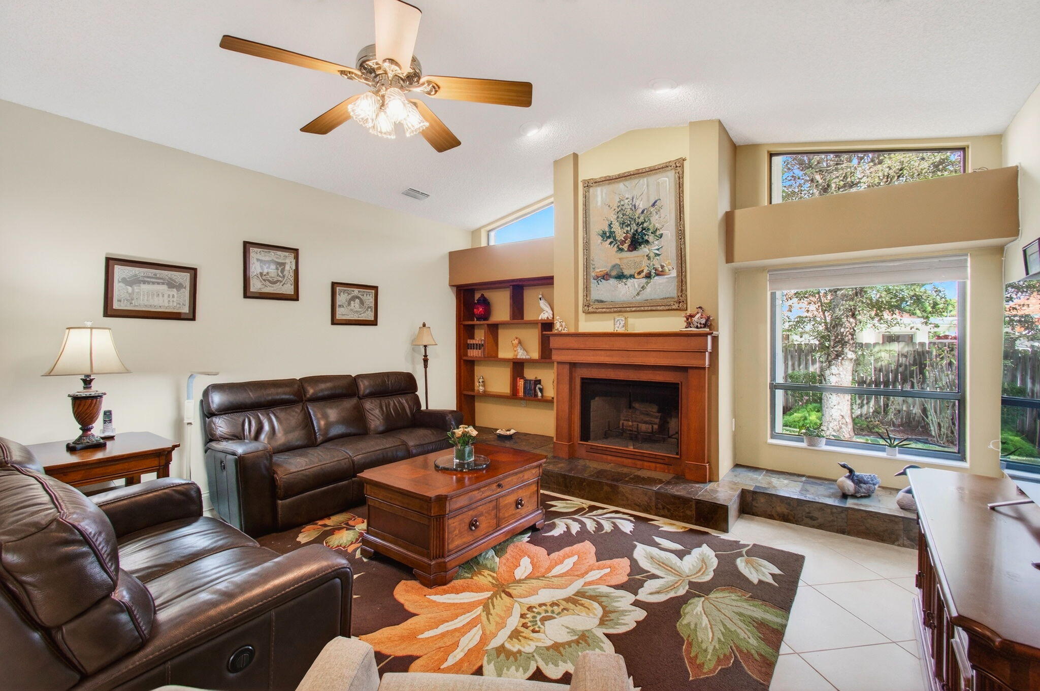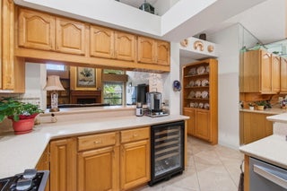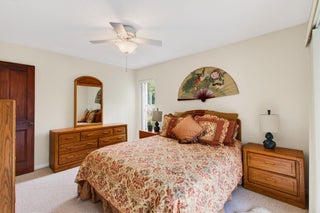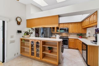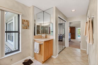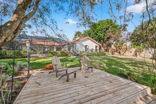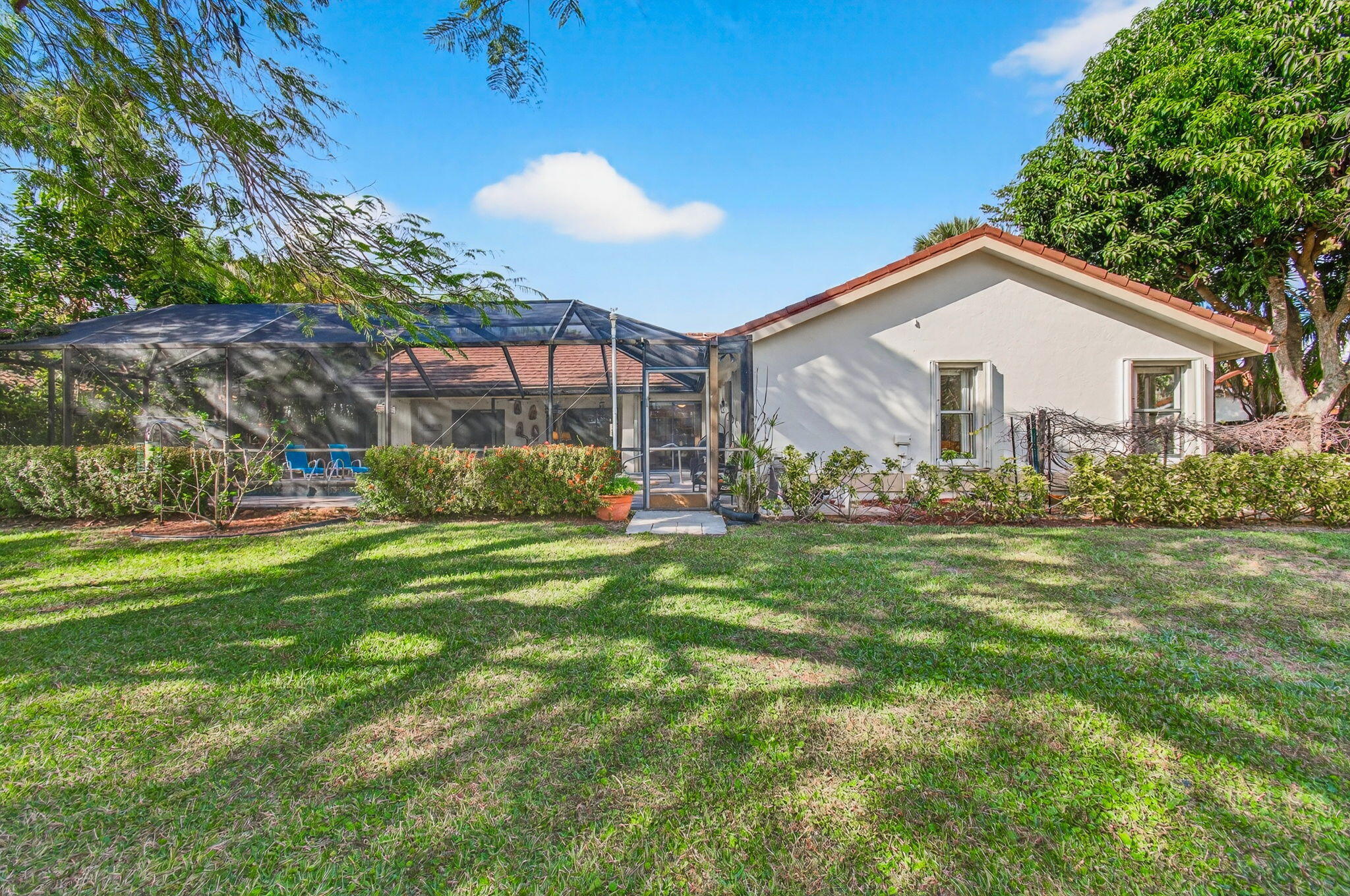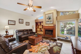 Hidden behind lush, mature landscaping and offering complete privacy, this LAKEFRONT Greenview Shores home delivers a rare sense of tranquility in Wellington-NO HOA and a dedicated area for your BOAT or RV. The four-bedroom residence features a large, screened pool with marble decking, a private dock accented by a magnificent Royal Poinciana, expansive green space, and a large, covered patio with accordion shutters that allow the space to be easily enclosed-ideal for effortless furniture storage while traveling.As you enter through the impact-rated double fiberglass doors with elegant decorative glass, you are welcomed into a bright and flexible living and dining area. The current layout features a spacious dining room with the ability to expand, while the living room captures beautiful views of the lush backyard and lake beyond. When this quality Ruttenberg home was thoughtfully renovated years ago, quality finishes were selected throughout-choices that have stood the test of time. The kitchen offers abundant maple cabinetry, glass cabinets, Corian countertops, pull-outs, a Lazy Susan, under-cabinet lighting, and stainless-steel appliances including a slide-in range, French-door refrigerator, and wine refrigerator. Numerous sliders throughout the home create a seamless connection to the outdoor living areas and highlight the tranquil lakefront setting. The primary suite features sliders opening directly to the covered patio-an ideal spot to enjoy morning coffee overlooking the water. Two closets and a spacious primary bath complete the suite, featuring an upgraded shower, enhanced tilework, a seamless glass enclosure, and generous cabinetry and counter space that continues the cohesive maple cabinetry found throughout the home. Adjacent to the guest bedroom wing, a large family room offers a welcoming gathering space with a wood-burning fireplace, vaulted ceilings accented by transom windows, and an inviting atmosphere for everyday living or entertaining. The guest bedrooms are in their own separate wing, allowing for excellent privacy, and can be closed off with pocket doors-ideal for guests or multi-generational living. Two of the guest bedrooms enjoy views of the lake or pool. The guest bath also serves as a cabana bath and features upgraded tile and listello detailing. The laundry room is equipped with cabinetry, a sink, and a built-in pull-down ironing board. The oversized garage includes built-in cabinetry and shelving, along with a convenient side service door. Additional features include solid wood interior doors, three hurricane-rated skylights that bring in abundant natural light, mature mango tree, star fruit tree, banana trees, accordion shutters, front screened-in porch, an RV plug on the side of the home, pump to the lake for sprinkler, and two outdoor storage sheds. Ideally located in the heart of Wellington, this home is close to world-class equestrian venues, hospitals, shopping, dining, A-rated schools, and is just a short golf cart ride to everyday conveniences. This impeccably maintained residence reflects true pride of ownership and offers a rare combination of privacy, flexibility, and location. Opportunities like this in Greenview Shores are seldom available.