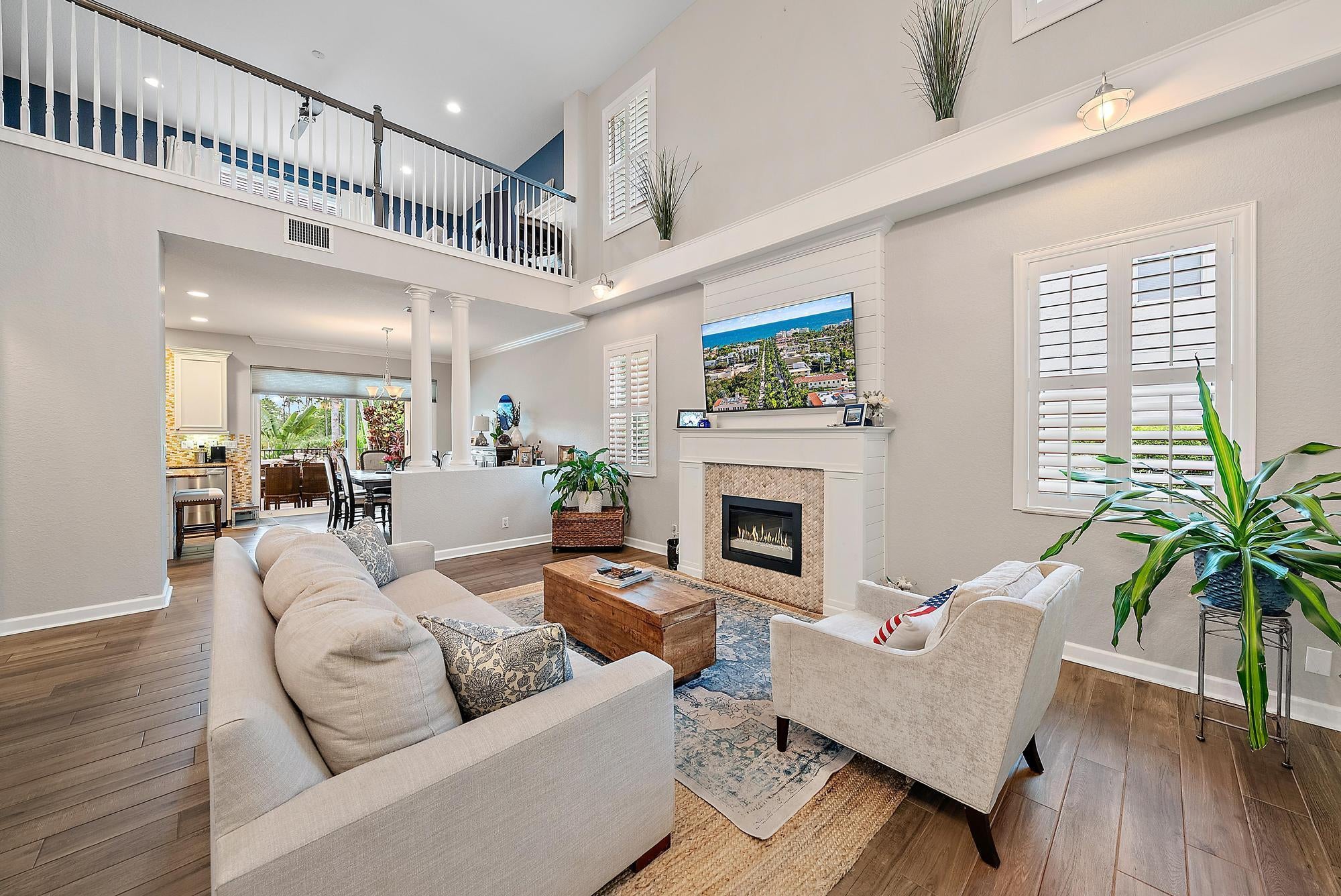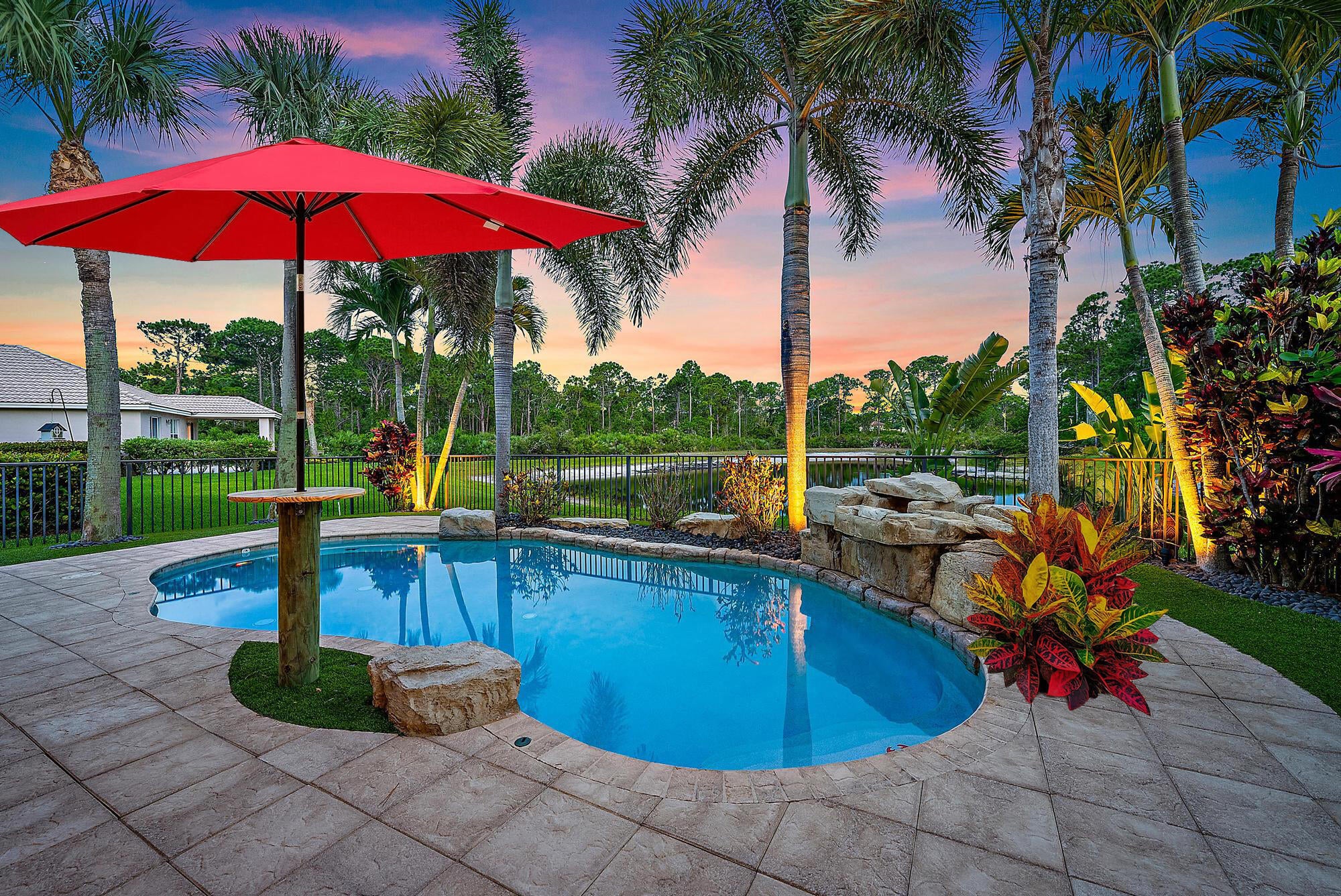 Experience LUXURY living in this stunning 4-bedroom, 3.5 bath pool home located in the sought-after Oaks of Hobe Sound. This beautifully designed lakefront residence offers the perfect combination of style, functionality, and peace of mind. Step inside to soaring 20-foot ceilings and an abundance of natural light. Features include a custom electric fireplace, wood-look porcelain tile throughout the main level, and IMPACT windows. The gourmet kitchen is complete with stainless appliances, double ovens, 42'' wood cabinetry, a center cook island, granite counters, and a picturesque window overlooking the pool/lake. The first-floor primary suite is a true retreat, offering direct access to the pool through sliding doors, perfect for a peaceful morning dip or an evening swim under the stars.The primary ensuite features double vanities, a separate shower, and a soaking tub. Downstairs is finished with a stylish half bath, a generous laundry room, under stair storage, and wood-look tile flooring throughout. Upstairs, the oversized loft offers endless possibilities for a home theater, game room, or office. Three additional bedrooms are located upstairs, including a guest suite with its own private bathroom, while the other two bedrooms share a full bath. Step outside to your own private paradise, ideal for entertaining or relaxing. A covered lanai with retractable screens offers shade and comfort, while the lagoon-style pool with waterfall adds a resort-like feel. The fully fenced yard and low-maintenance artificial turf make outdoor living effortless. Additional peace of mind comes from the home's newly installed impact windows, a desirable feature for Florida living. These high-performance windows provide essential protection during hurricane season, shielding your home from storm debris while also improving energy efficiency year-round. The Oaks of Hobe Sound is a welcoming, family-friendly community known for its low HOA fees and outstanding amenities. Residents enjoy included lawn care, basic cable and internet, a resort-style pool and hot tub, a playground, and secure gated entrances. Ideally situated in the heart of Hobe Sound, you're just minutes from the pristine shores of Hobe Sound Beach, the boat and kayak launch at Jimmy Graham Park, the scenic Gomez Preserve Nature Trail, and the charming downtown area filled with boutique shops and local dining favorites. Hobe Sound is also home to a newly built tennis center featuring 10 Har-Tru courts and six pickleball courts. Find out what Florida living is all about, schedule your showing TODAY!