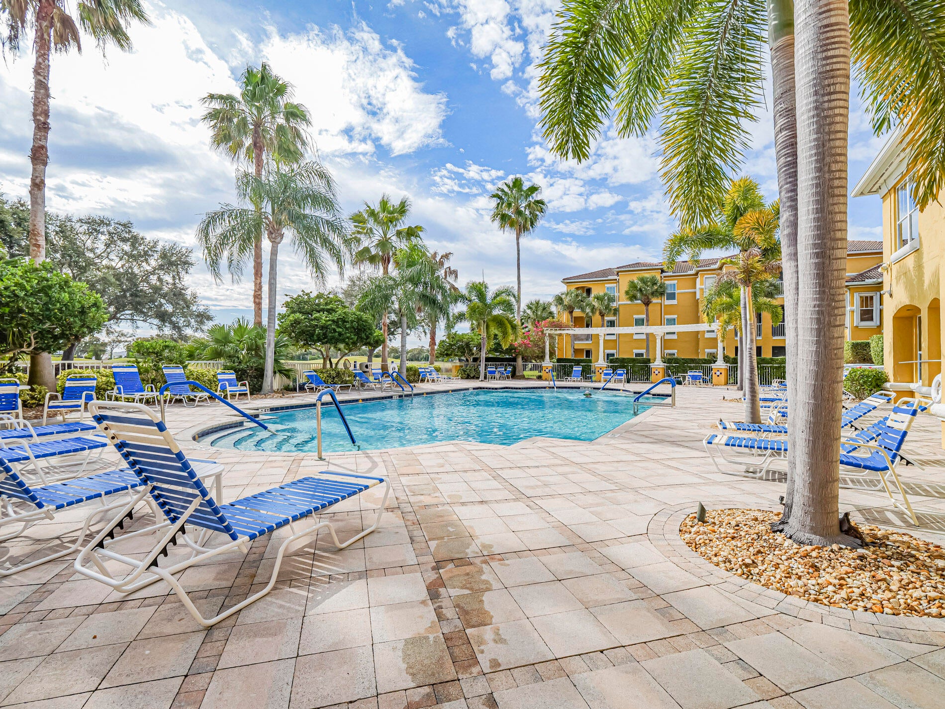 Beautiful 2/2 second-floor courtyard-style condo with 1,223 sq ft. Entry via the building's central interior courtyard. Tile in main living area, spacious master bedroom with walk in closet, laundry room, and covered balcony with storage. Elevator building! Fabulous location--steps to the clubhouse and pool and only 8 min. to the beach. Close to shopping, dining, and medical facilities. A perfect blend of convenience, comfort, and Florida lifestyle!