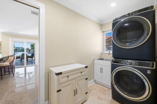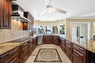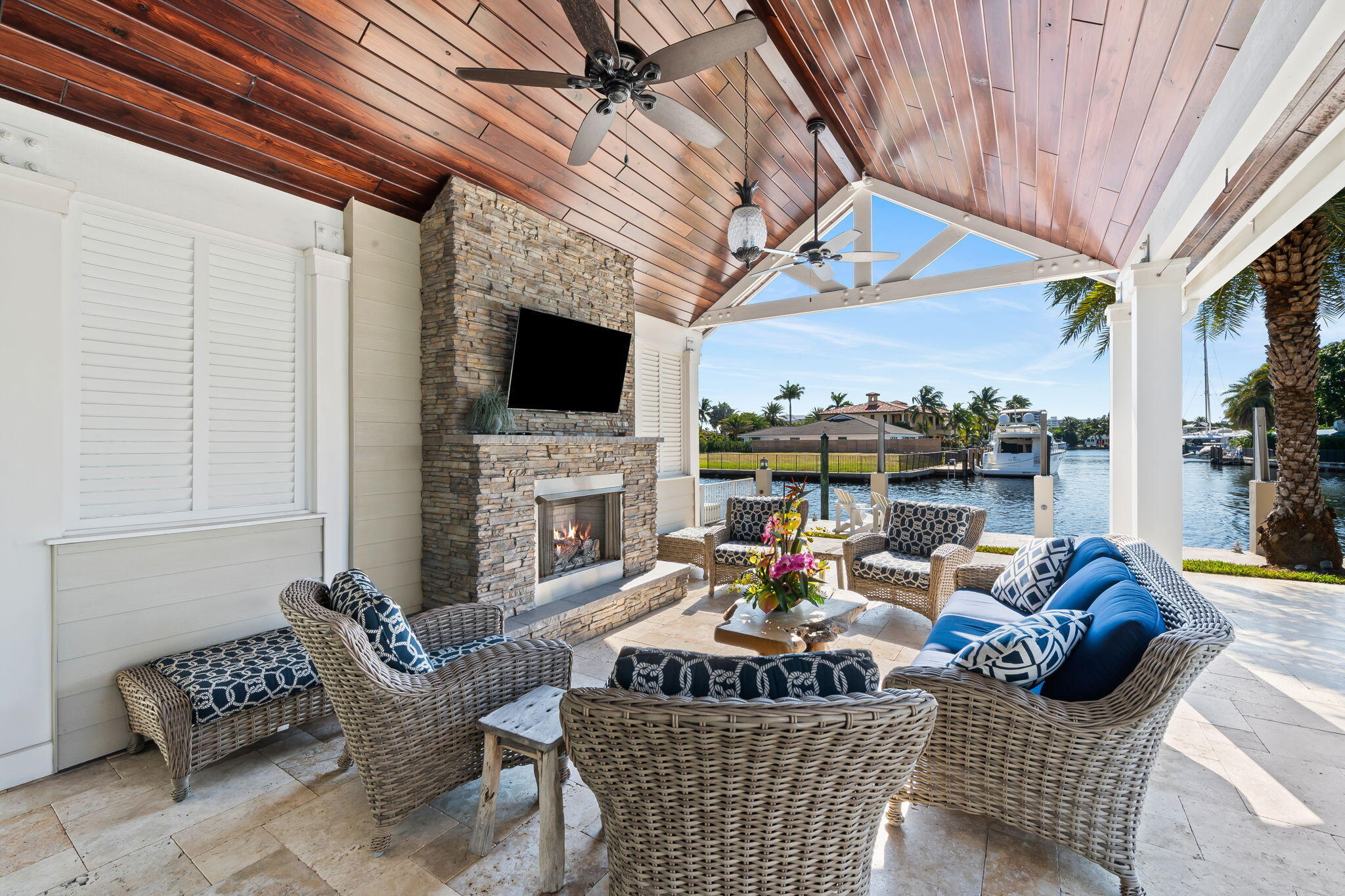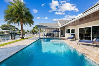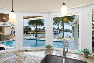 This exceptional waterfront residence, situated on one of the most desireable lots in The Landings offers magnificent views of the oversized turning basin and T Canal and is just three lots from the Intracoastal with no fixed bridges. A true entertainer's retreat and a dream setting for avid boaters. The home provides a seamless connection between refined indoor living and elevated outdoor spaces. With three bedrooms and three full bathrooms, every detail has been thoughtfully curated to enhance comfort, style, and coastal elegance.The heart of the home is an inviting and beautifully updated interior. High hat lighting illuminates the foyer, kitchen, living room, office, and primary bedroom, creating warm and cohesive ambiance throughout. See MoreThe gourmet kitchen is appointed with premium Thermador appliances including an induction cooktop, dual ovens, and a forty eight inch side by side refrigerator and freezer, complemented by a U Line wine fridge. The primary bathroom underwent a full renovation in 2016 featuring Carrera marble and an expanded closet, while the guest bathroom was completely remodeled in 2024 with modern finishes. Additional upgrades include GE smart laundry appliances with steam dry, a new fifty gallon water heater, and fully replaced attic ductwork with added insulation to improve efficiency and comfort. Designed for effortless Florida living, the exterior of the home is equally impressive. A major renovation in 2019 introduced a new roof along with impact glass throughout. A five ton Carrier air conditioning system was installed in 2021, and the exterior drainage system was enhanced with four inch gutters and an underground system engineered to direct water away from the pool and the home's foundation. Outdoor living is elevated with a stunning covered entertaining pavilion completed in 2019, featuring a vaulted ceiling with custom wood tongue and groove detailing, a gas fireplace, an integrated television, and a dedicated covered dining space that flows naturally toward the pool. The yard is beautifully landscaped with automated lighting, and a Rain Bird sprinkler system installed in 2016. For boating enthusiasts, the property features an eighty foot dock with lighting, marble pavers, two sets of boat whips, and fifty amp service. Both the dock and seawall were replaced in 2014, ensuring peace of mind and years of enjoyment along the waterfront. Blending modern upgrades with timeless coastal appeal, this residence offers a rare opportunity to enjoy luxurious living and prime water access in one of the area's most desirable boating locations.
