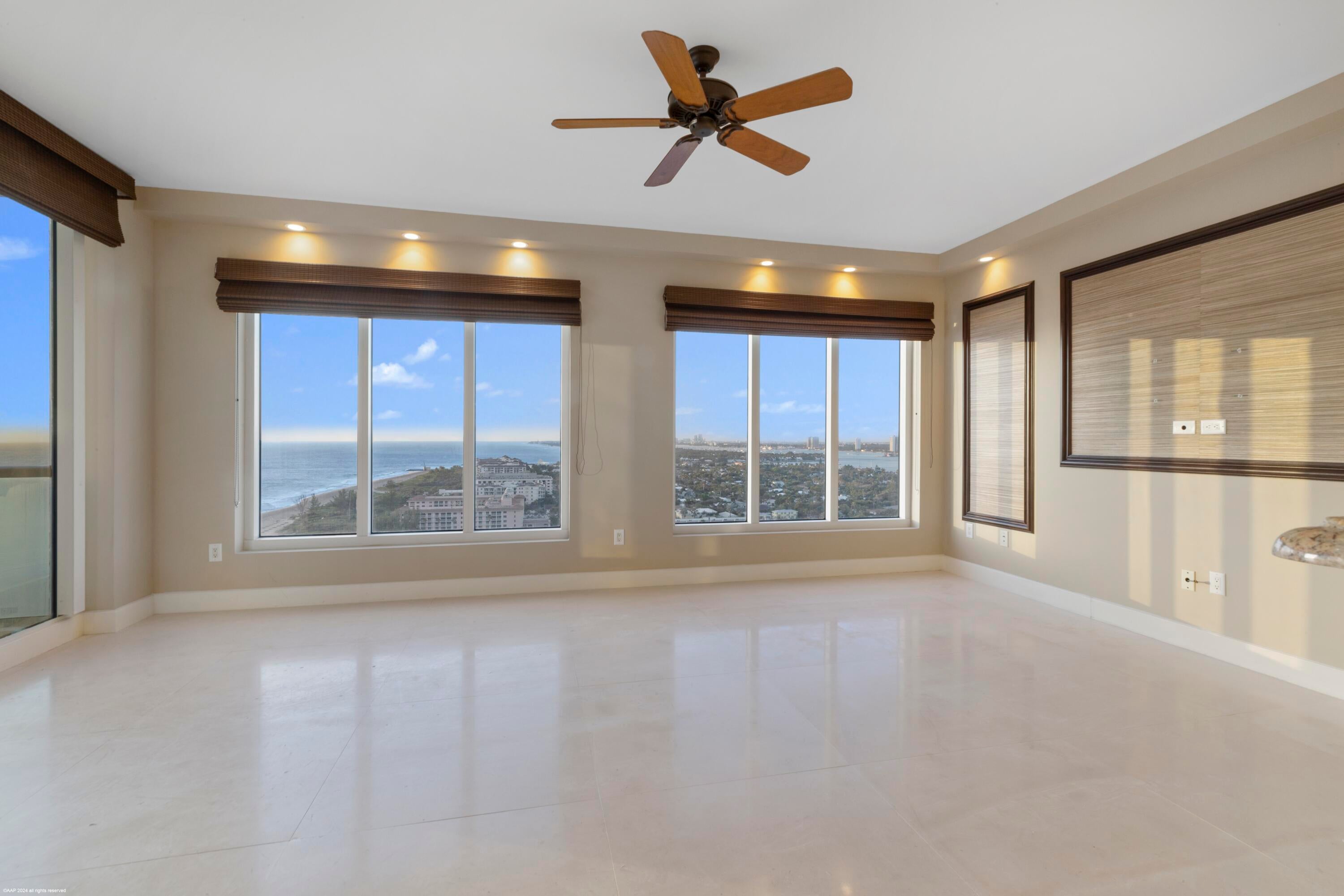 Experience Unmatched Luxury and Panoramic Views at The Ritz-Carlton Residences, Singer Island. Discover a rare opportunity to own a true sky home at the prestigious Ritz-Carlton Singer Island. This 3-bedroom, 3.5-bathroom condominium offers 3,950 square feet of opulent living space & almost 600 square feet of private terraces. Boasting breathtaking southeast views of the Atlantic Ocean, Intracoastal Waterway, and iconic Palm Beach skyline, this residence combines privacy & sophistication. The design includes a custom private office replete with custom bookcases, a formal custom dining area with intricate mill work, sophisticated stone floors, & finishes. The gourmet kitchen is equipped with top-tier appliances, a chef's island, & custom cabinetry, making it a culinary enthusiast's dreamThis sky home includes a private, air-conditioned storage room of approximately 75 square feet on the G1 parking garage level conveniently located by elevator. Additionally, it features a storage cage on the G2 level and a smaller storage closet adjacent to the in-unit laundry room. It also include 2 side by side parking spaces on the G1 level. Beautiful limestone flooring throughout residence. The Ritz-Carlton Residences offer an unmatched luxury lifestyle on 8.8 acres of pristine beachfront. Renowned for the legendary service that defines the Ritz-Carlton brand, residents experience the highest standards of hospitality and personalized attention. Exclusive amenities include two sparkling pools, a private beach, a poolside café, state-of-the-art fitness centers, cinema-style theater rooms, a library, and elegant social rooms. Around-the-clock concierge and valet services ensure convenience and comfort at every turn. Additional features such as two private dog parks, guest suites, and a beautifully landscaped pool deck promenade with outdoor grilling stations enhance the community's appeal. The oceanfront infinity-edge pool and an on-site restaurant offering poolside service elevate this exceptional residence into a true haven of sophistication and relaxation. This residence seamlessly combines elegance and comfort with floor-to-ceiling impact glass windows. Two private balconies showcase panoramic sunrise and sunset views, while the spacious floor plan includes a primary suite with 2 walk-in closets and luxurious double vanities. Secured assigned garage parking for two vehicles and a private elevator entrance add to the convenience and exclusivity of this home. Nestled along Florida's Atlantic coastline, Singer Island is a tropical paradise renowned for its pristine white sandy beaches, exquisite waterfront homes, and charming resort lifestyle. This exclusive community, located in Palm Beach County, offers breathtaking ocean views and a vibrant marine and wildlife environment. Spanning 1,500 acres, Singer Island is home to three distinct communities, a stunning state park, and an array of upscale hotels. Founded by Paris Singer, the son of sewing machine magnate Isaac Singer, this idyllic island is steeped in history and elegance. Just 20 minutes from Palm Beach International Airport and a short drive from Miami, Singer Island seamlessly combines natural beauty with convenient access to world-class shopping, dining, and recreational opportunities. A haven for outdoor enthusiasts, Singer Island is celebrated for its crystal-clear waters, blue water sport fishing, and thrilling activities such as sailing, windsurfing, jet skiing, and boating. Its location offers proximity to renowned golf courses, luxury shopping destinations like Worth Avenue, and the upscale amenities of nearby Palm Beach Gardens and Jupiter. It's also a short drive to Wellington's acclaimed equestrian venues. Whether enjoying the island's vibrant lifestyle or retreating to a serene, luxurious residence, Singer Island offers the ultimate in sophisticated, coastal living.