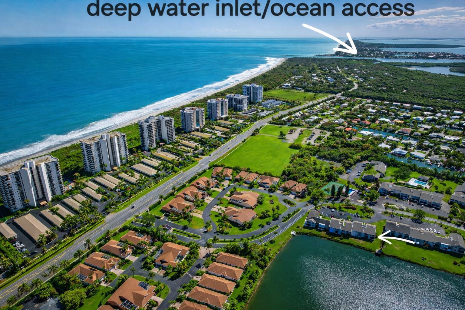 AMAZING LOCATION! Live where the ocean is your neighbor. The Sands gated community is located on A1A(aka the iconic Jimmy Buffet Memorial Highway)on North Hutchinson Island & the Indian River Lagoon. This 2BD/2BA first-floor condo places you directly across the street from the beach with private beach access. For investors, seasonal owners, or those seeking a full-time coastal residence, this property delivers both lifestyle and long-term value. Proximity to the Fort Pierce Inlet for ocean access makes it especially appealing for boating and water enthusiasts. Positioned just 1/4 mile from the Navy SEAL Museum, near parks with pickleball, kayak launch, playground, minutes to Vero Beach and the historic downtown Fort Pierce where you'll enjoy convenient access to waterfrontdining, marinas, boutiques, farmers market and year-round events. The first-floor corner location offers added privacy and additional natural light compared to interior units, along with the convenience of easy ground-floor access. Functional floor plan features an open living and dining area with neutral tile flooring throughout, creating a bright and cohesive coastal feel. The eat-in kitchen offers sliding glass doors leading to a screened-in lanai, providing seamless indoor-outdoor living and a perfect space to enjoy the lake views and stunning sunsets. Recent updates include a new roof and new A/C in 2023 offering added value. Accordion shutters for peace of mind. Resort style amenities include a pool with cabana, grill area, tennis courts. Community has dockage for purchase or rent. Whether you're searching for an income-producing investment, a vacation retreat, or a primary home immersed in coastal surroundings, this North Hutchinson Island residence captures the essence of Florida living in a prime location.
