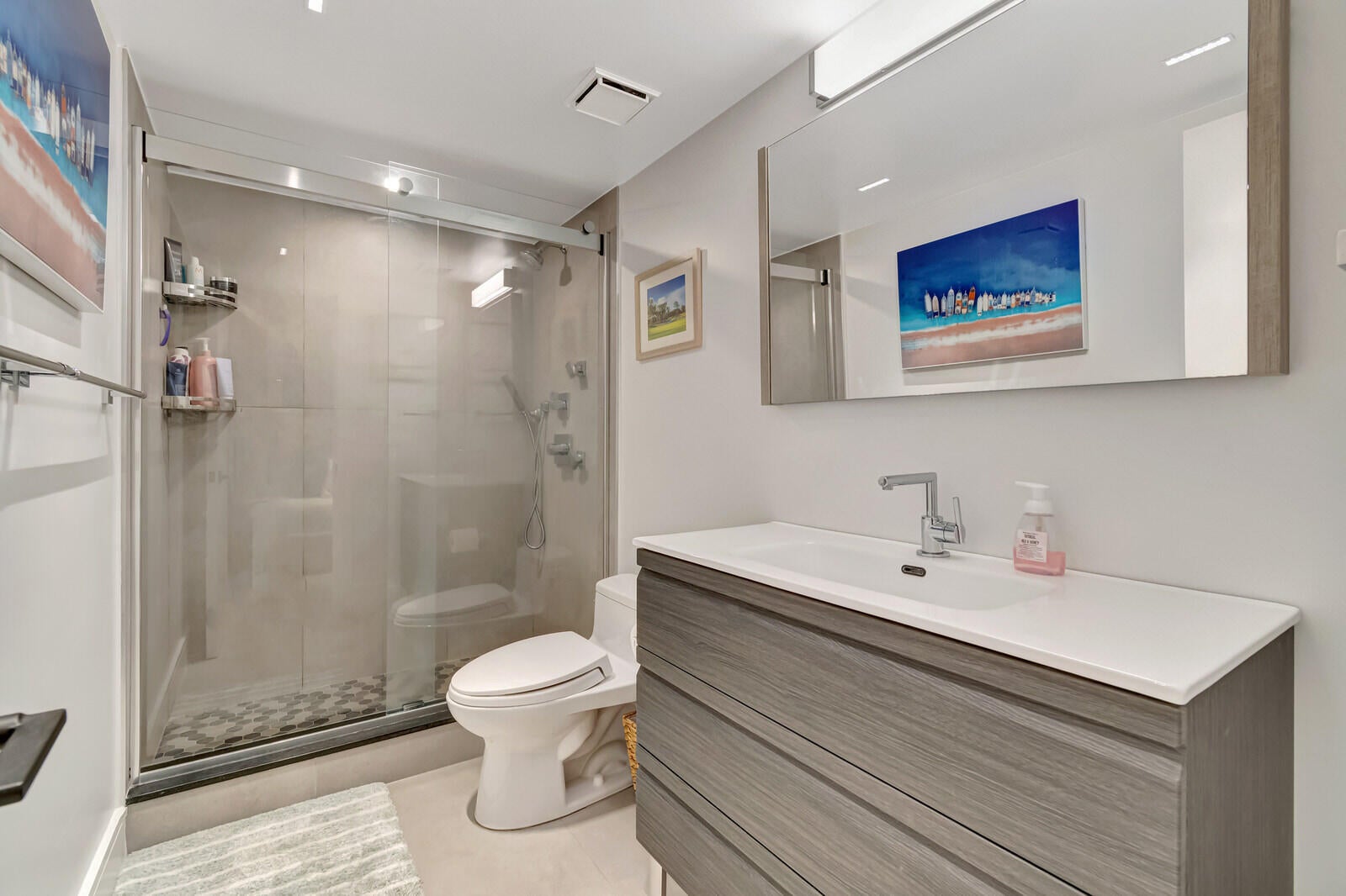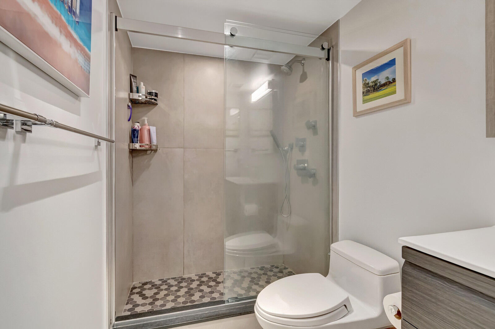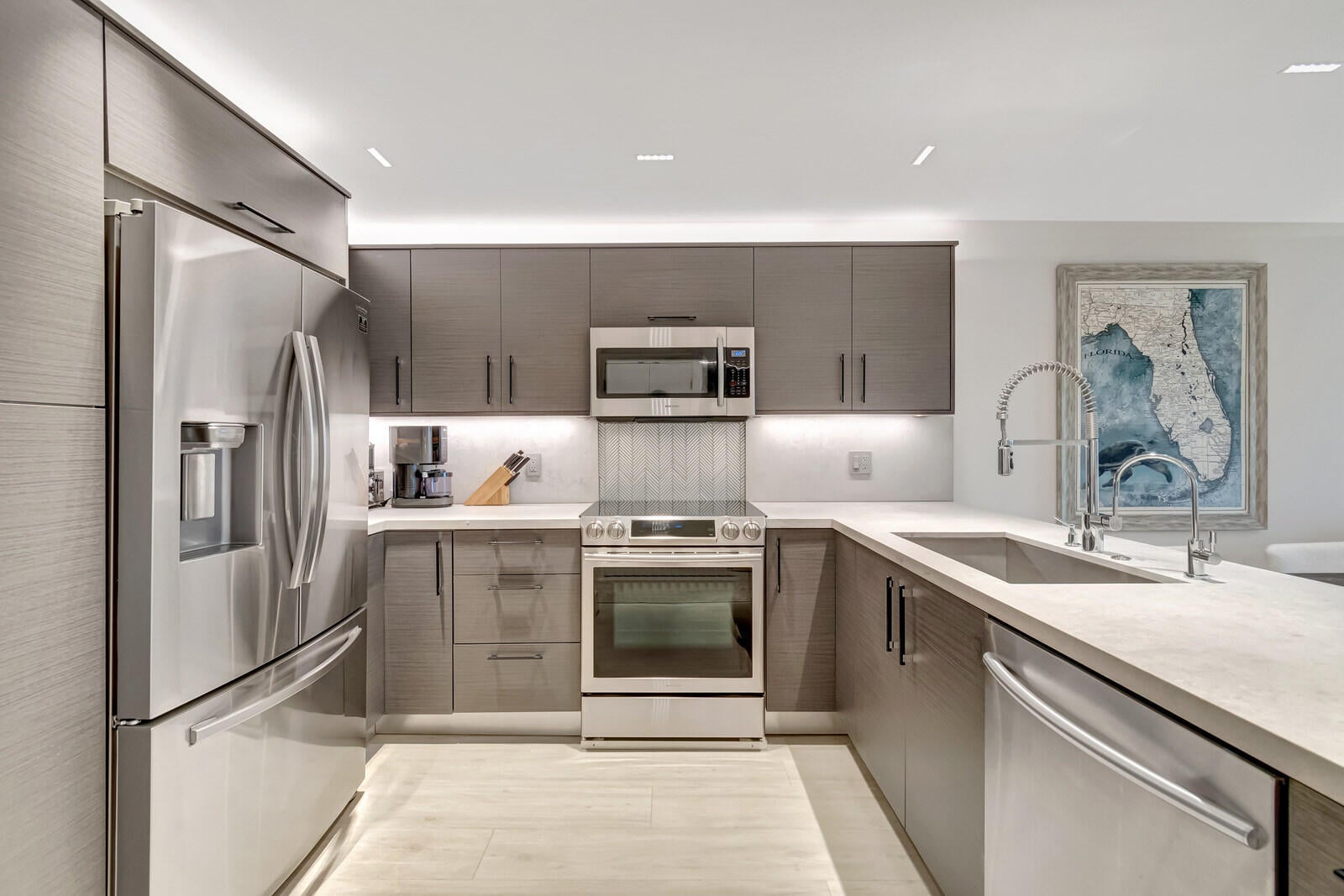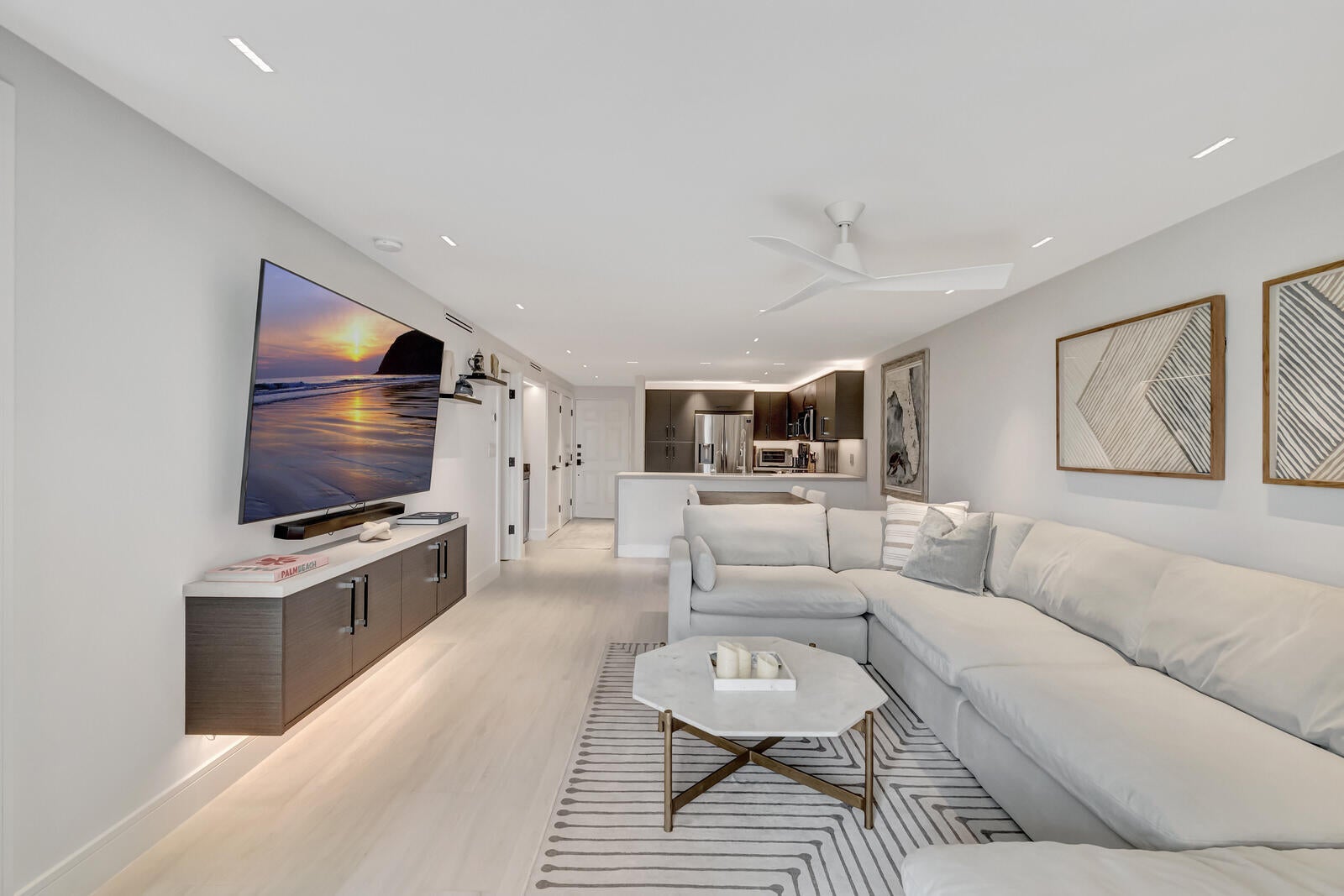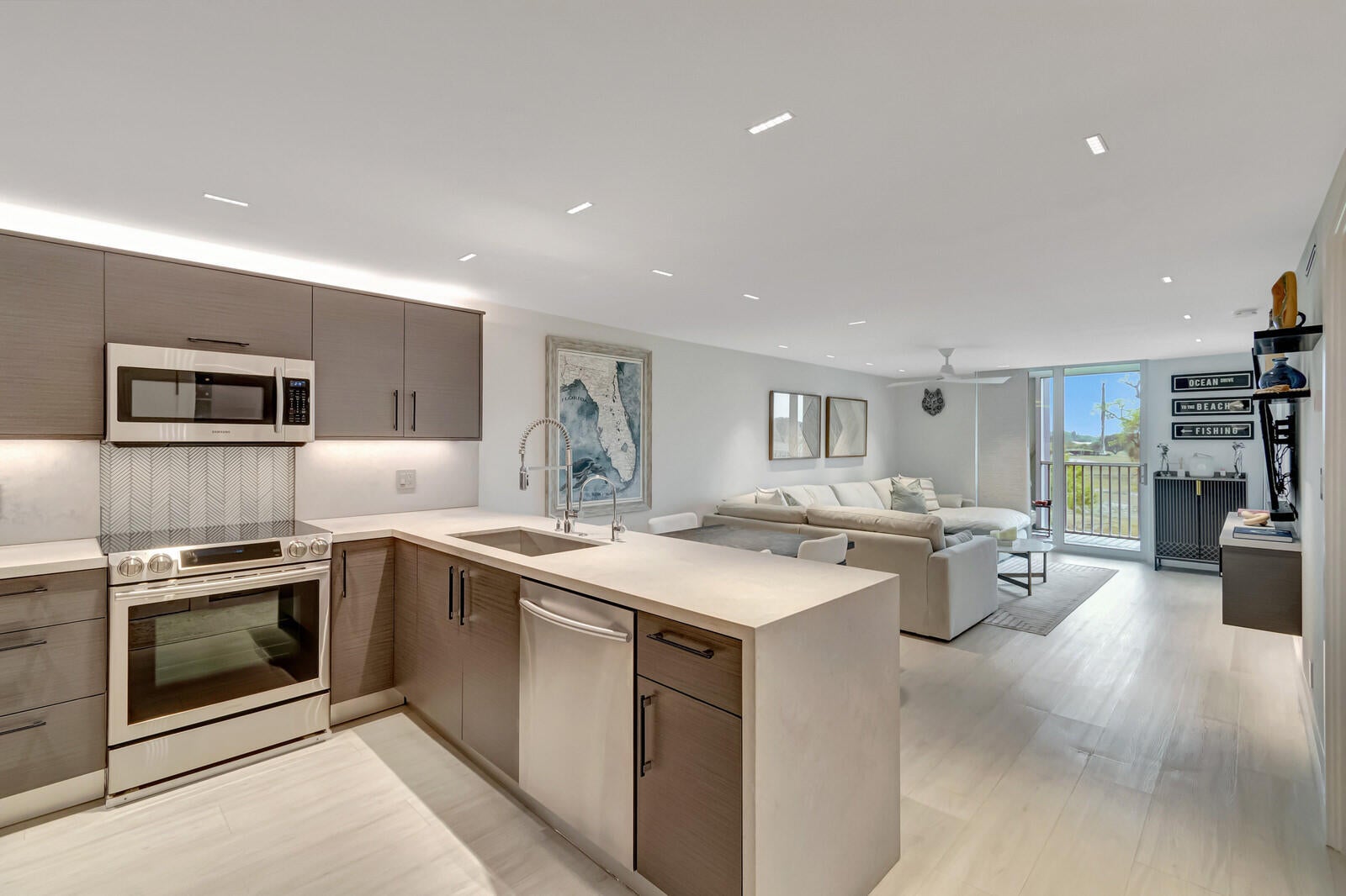 Fully Renovated 2 Bed / 2 Bath Condo in Prime Boca RatonWelcome to a completely renovated true 2-bedroom, 2-bath condo featuring modern luxury and thoughtful design throughout.The open kitchen showcases a quartz waterfall peninsula, paired with a black leather-finished granite dry bar and custom matching built-in granite tabletop with under cabinet and accent lighting. Lighting has been professionally designed with multiple zoned switches for walkways, kitchen workspaces, and seating areas. A floating custom media center matches the cabinetry for a seamless look.Additional upgrades include modern recessed lighting with three-way switching, impact hurricane doors with LOW-E glass for energy efficiency, a filtered drinking water spout and refrigerator connection, a tanklesswater heater, custom built-in adjustable closets, and a full-size washer and dryer inside the unit. Both bathrooms feature high-end finishes, including Toto toilets, intricate tilework, a spa-style primary shower with body jets, and a guest shower with a handheld wand. Ideally located near I-95, Boca's beaches, dining, and shopping, with low-maintenance ownership costs. Plus, Boca Paddle by CityPickle debuts in 2026 nearby, offering luxury indoor pickleball and padel courts with resort-style amenities.