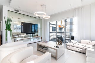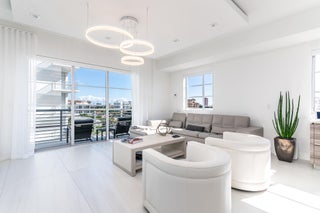 Sophisticated and modern 3/2.5 condo designed by STEVEN G INTERIORS - enjoy spectacular sunrise and sunset views Perfectly positioned on the top floor with ocean and city views. 3 premium parking spaces and 3 storage lockers. Elevator to garage is next to unit and the fitness and roof top amenities are one flight of stairs directly above. Spectacular amenities include fitness, roof top jacuzzi and cabanas, out door grilling and dining area spa, sauna, steam, salon, pool, game room - walk to the beach and walk to Mizner Park, fine dining shopping -South Florida living at its finest.