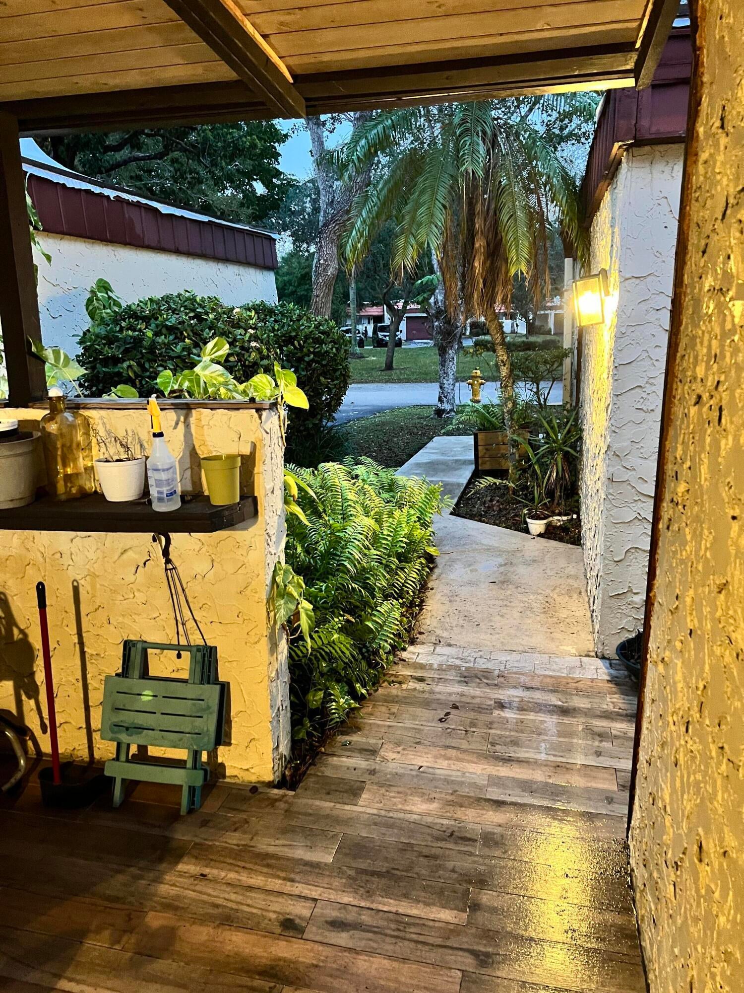Beautiful and updated 2BR/1.5BA villa with 1-car garage anda NEW ROOF, located in a quaint, safe, and quiet neighborhood where dogs are welcome. Enjoy stunning golf course and some canal views from your private deck. Interior features include an upgraded kitchen with stainless steel appliances, updated flooring, renovated bathrooms, and an in-unit washer and dryer. A charming covered pergola enhances the front entryway. New roof, a community pool in a well-maintained property, pet-friendly, and ready for move-in