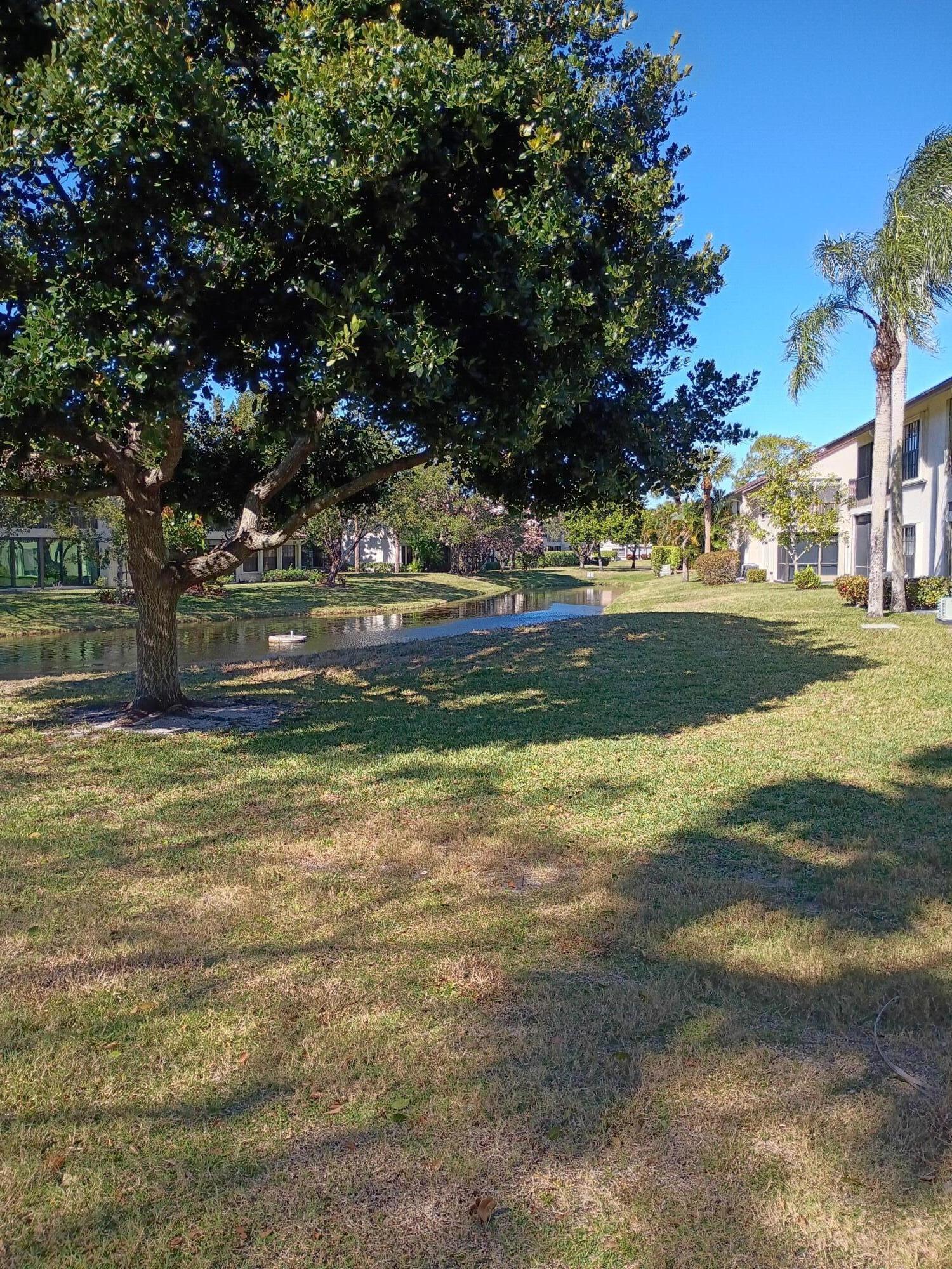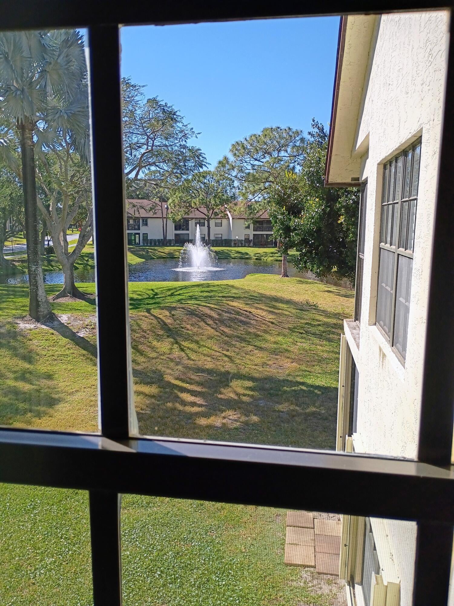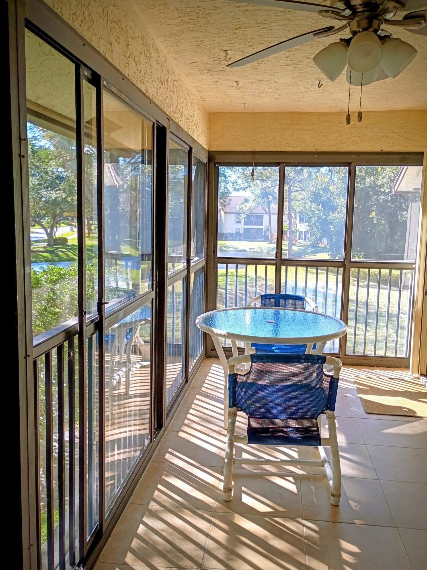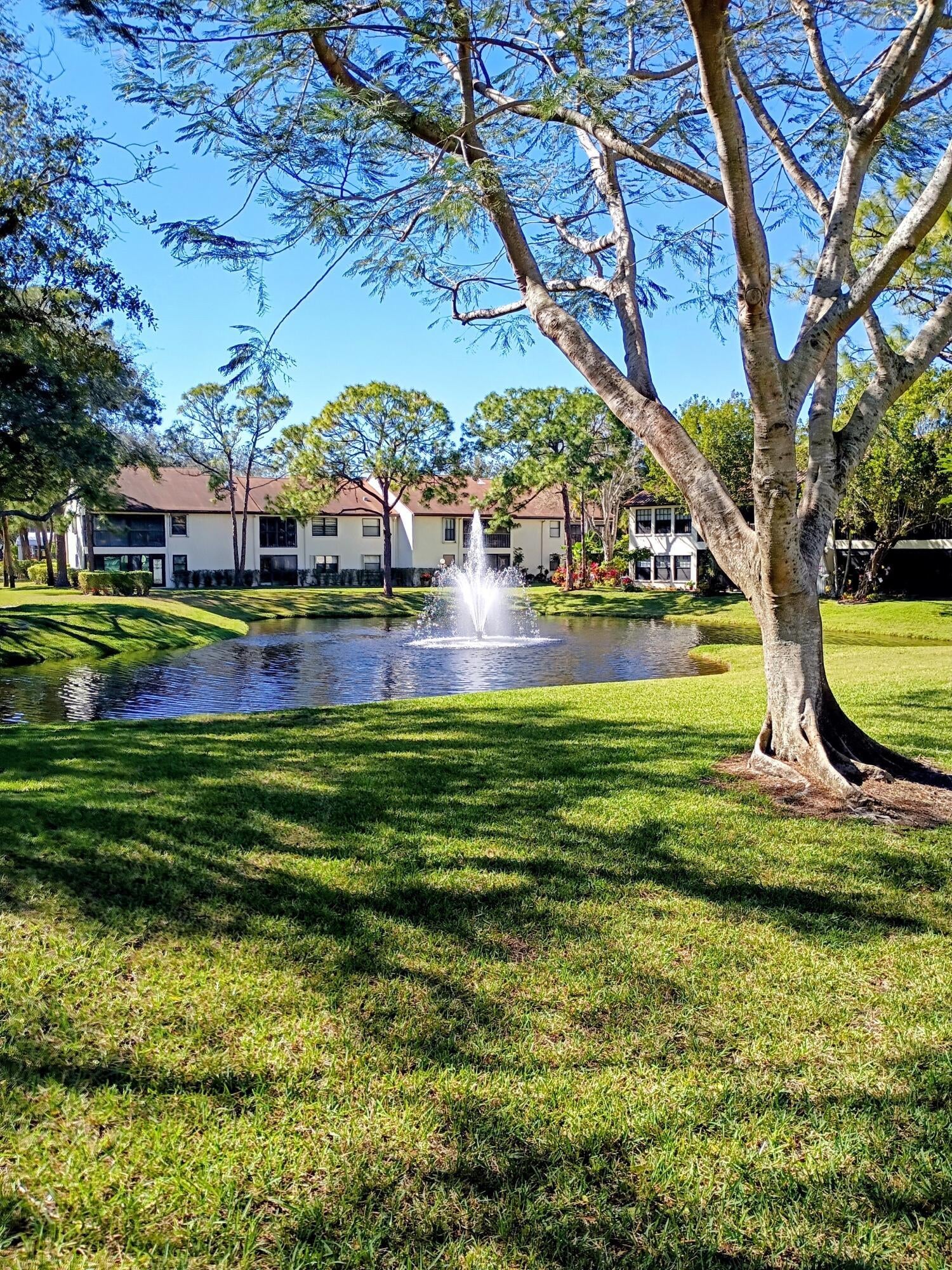 Beautifully updated and bright with a great water view! Cathedral ceilings give this condo a spacious and airy feeling. The kitchen is wonderfully done with granite counter tops, stainless steel appliances, loads of custom wood cabinetry, new cooktop, uplighting and sliding glass doors leading to porch. Porch is fully screened with vinyl sliders and tile flooring. There are impact windows in the living room with electric Hunter Douglas shades, accordian shutters protect the remaining windows, ceiling fans throughout. Luxury vinyl plank flooring was installed 2 years ago in the main living areas plus 1bedroom which can also be used as an office and brand new carpet in two of the bedrooms. The master bedroom has double sinks with corian tops, walk-in closet and walk-in shower.Guest bathroom has custom sink with combination tub and shower. There is a community clubhouse with pool, shuffleboard, billiards, tennis courts, fitness center and more. This condo is sure to please!