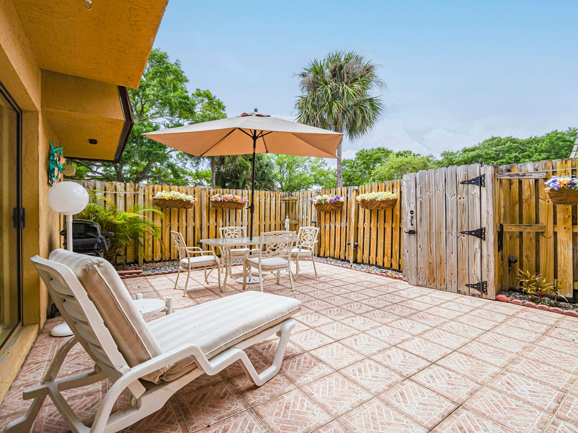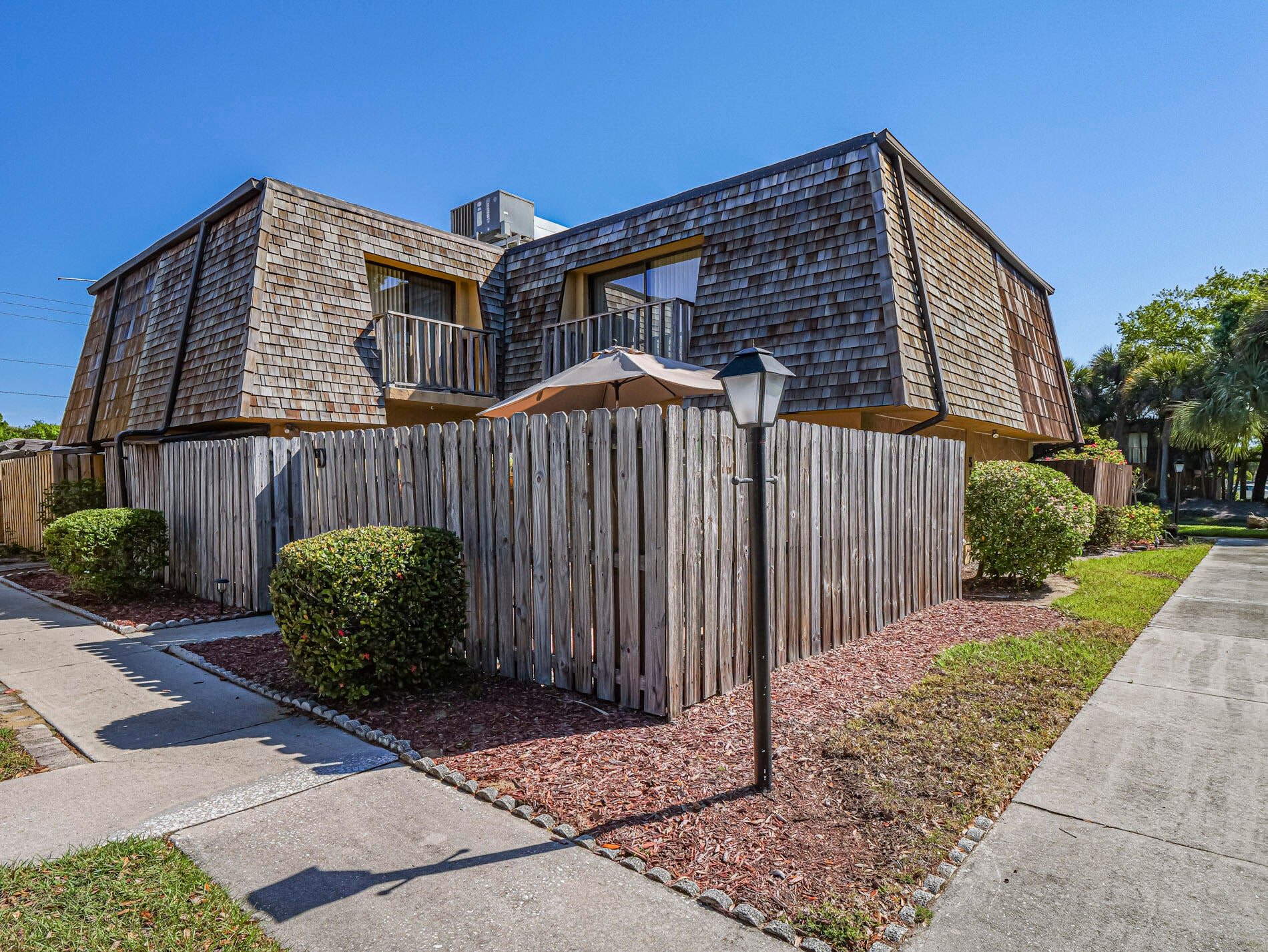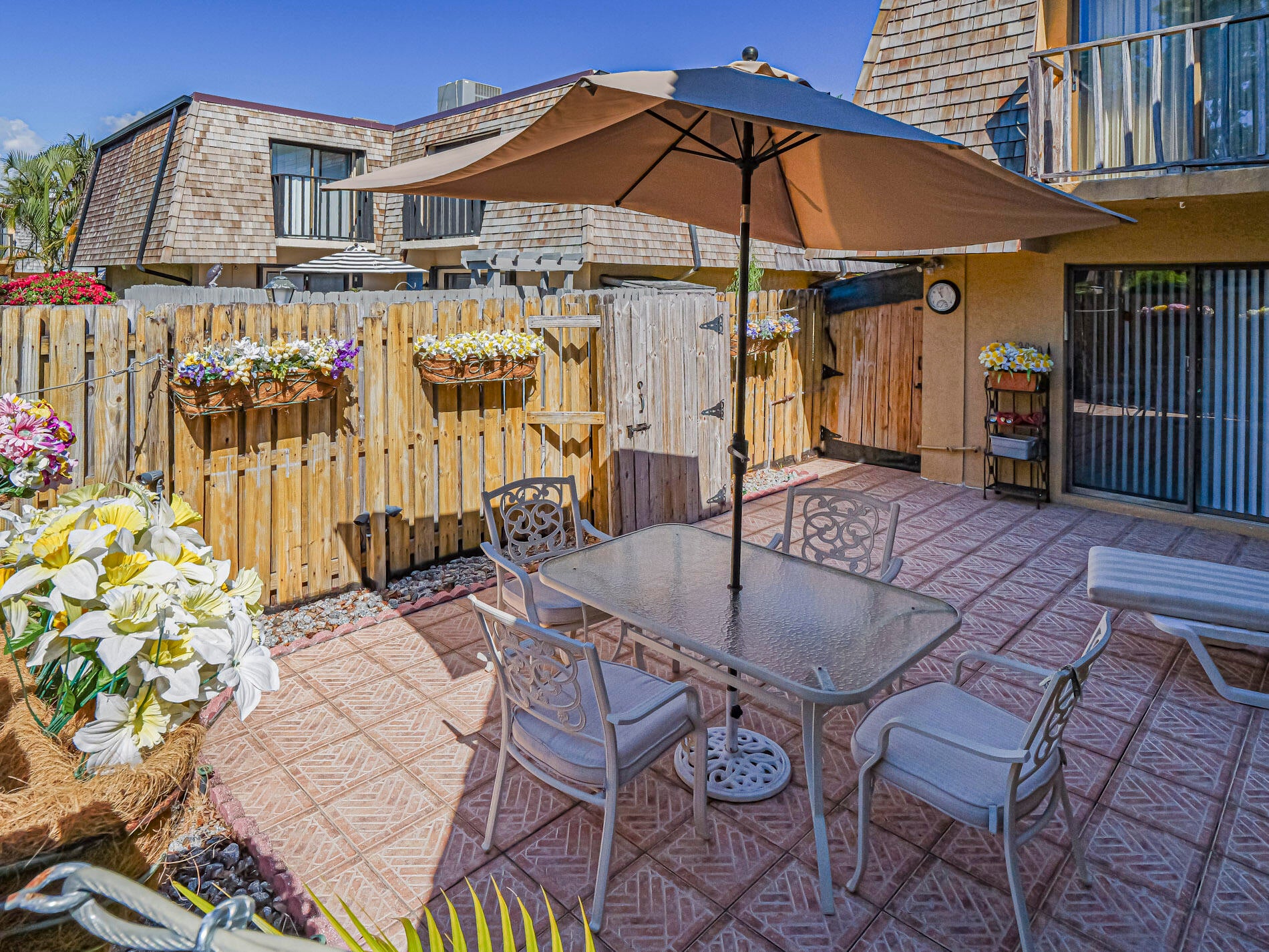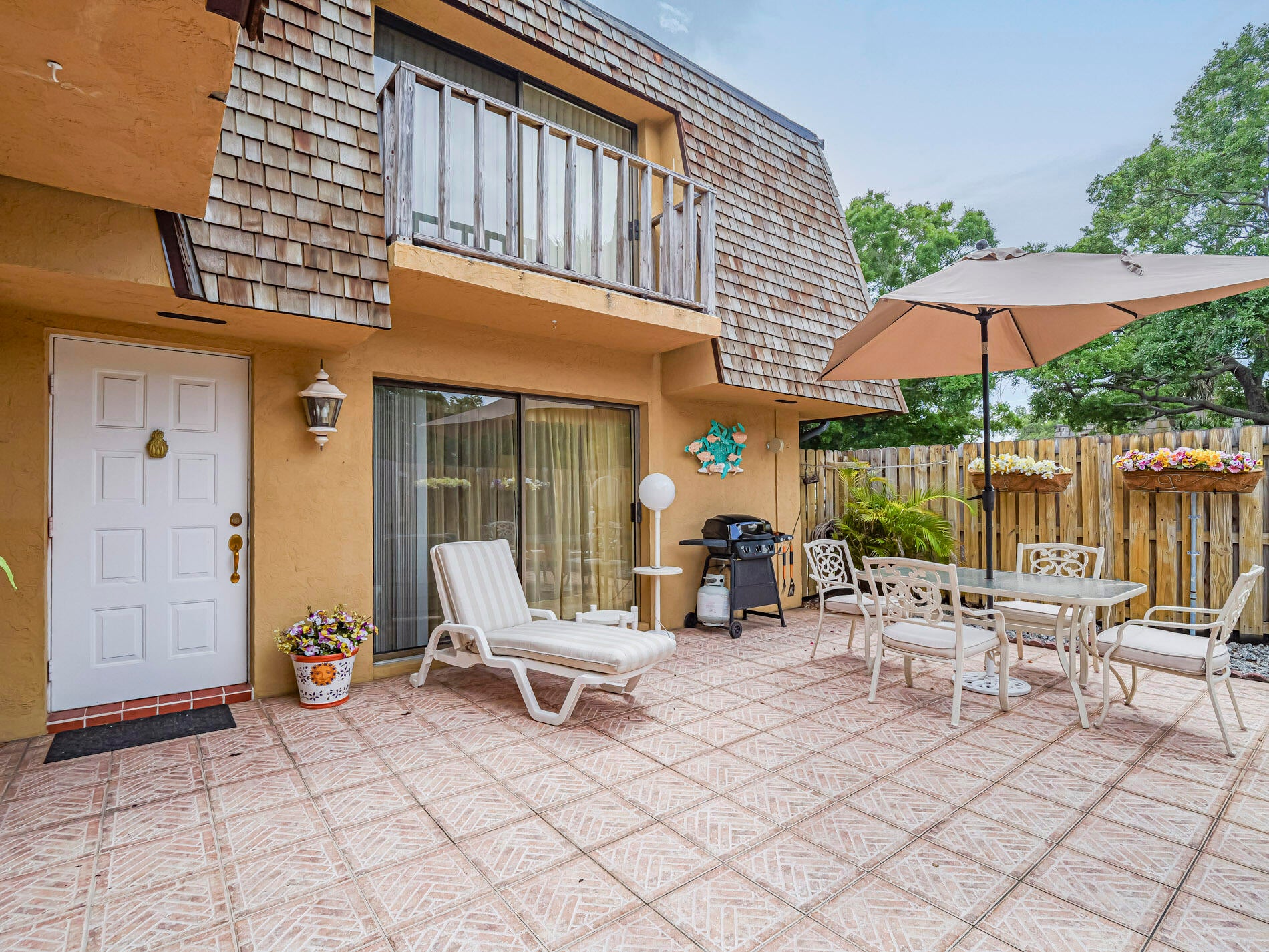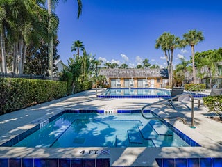 Turn key, being offered with furnishings negotiable. This 2 level townhome features tile floors throughout -even a tiled and fenced patio with extra storage area. Enjoy 2 large bedrooms, with 2 full baths, and first level has living room with sliders to private patio, and dining/kitchen area. Plus, there is a laundry/powder room and storage closet on first level. Located near to shops and stores and just 2 miles to beaches. Great location! Quiet complex with heated pool and hot tub. One owner home! After 42 years --a sacrifice.