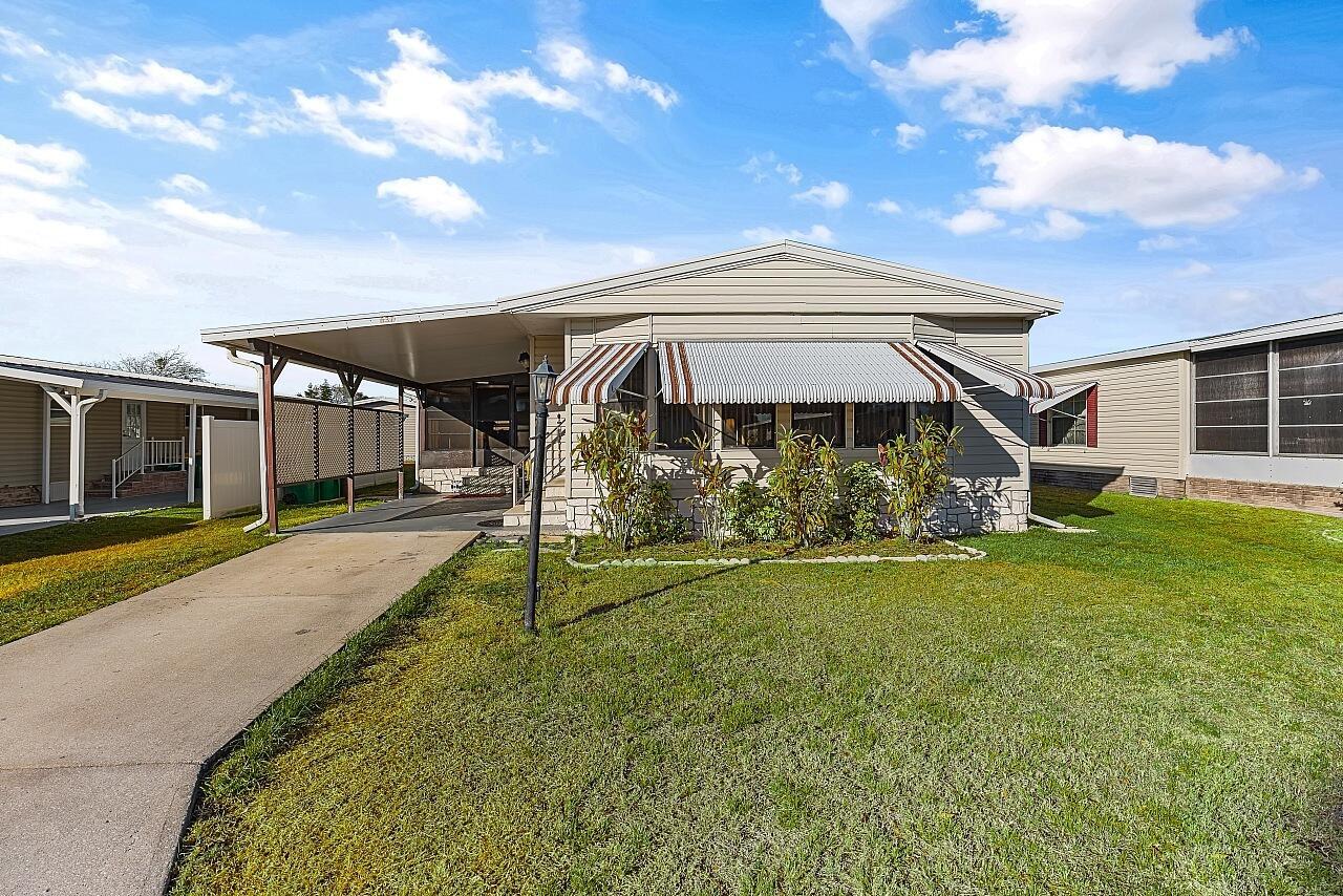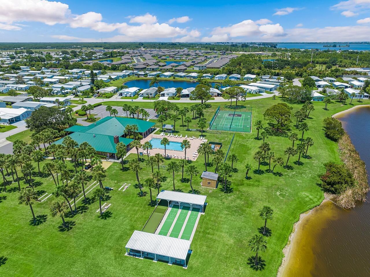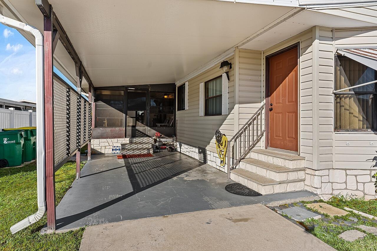 Welcome to affordable Florida living in the all-ages Barefoot Bay recreational community where you own the land and enjoy resort-style amenities with no lot rent. Located in the desirable Flower Section, this 2-bedroom, 2-bath home offers 1,294 sq ft of living space with large rooms, strong structural updates, and the opportunity to personalize the interior. Inside, you'll find oversized living and family room spaces with built-in shelving and large windows, creating a bright and comfortable environment for everyday living. The entertaining-style kitchen features a center island cooktop, abundant cabinetry, and open flow to the dining area, making it ideal for hosting gatherings.The extra-large primary suite includes dual sinks, walk-in shower, and walk-in closet, while the guestbedroom offers its own en-suite bathroom for added privacy. A window-enclosed sunroom provides flexible bonus living space perfect for relaxing, hobbies, or entertaining. The property also includes a carport, storage shed, patio area, and generator plug. Major updates include metal roof (2020), water heater (2020), partial re-pipe, vapor barrier replacement, added hurricane straps, AC with newer blower unit, and clamshell hurricane shutters on most windows. Cosmetic updates will allow the next owner to make this home their own while building equity. Barefoot Bay is known for its active coastal lifestyle and extensive amenities, including: Three community swimming pools, 18-hole executive golf course, Clubhouse and community center, Tennis, pickleball, shuffleboard, and bocce courts, Fitness facilities and social clubs, Fishing pier on the Indian River Lagoon, Private ocean beach access for residents, Golf-cart-friendly streets, On-site shopping, dining, and services. One Time BBRD fee of $1605.01 and annual tax assessment included at $1001.17. Conveniently located near Sebastian, Palm Bay, US-1, I-95, the Indian River Lagoon, and Atlantic beaches, Barefoot Bay remains one of the best values on Florida's east coast for full-time residents, seasonal owners, or investors. This home is priced to sell and ready for its next chapter.
