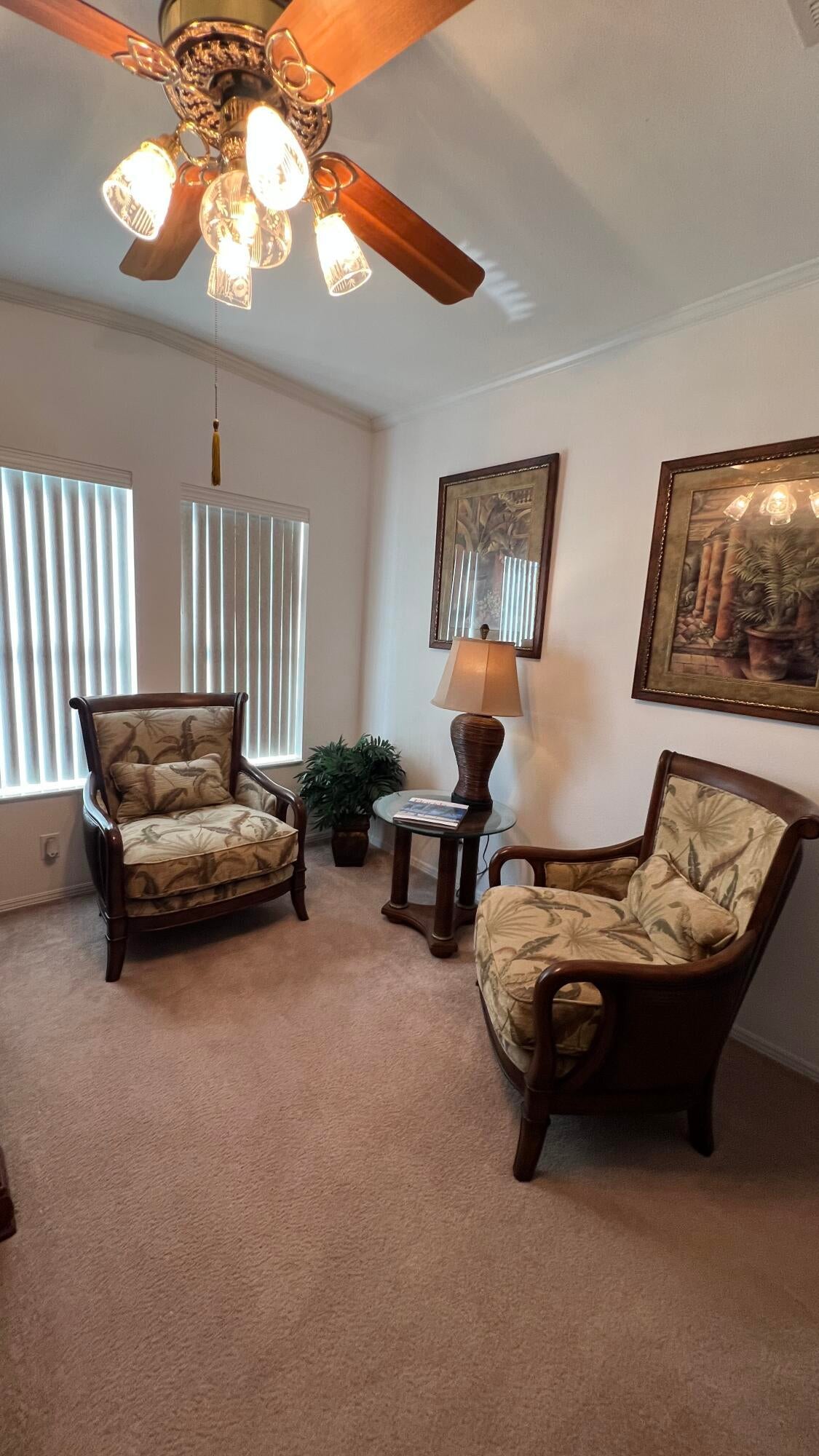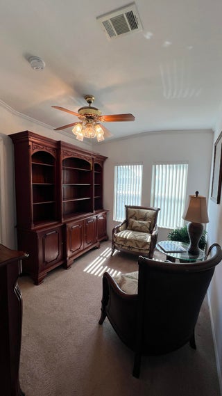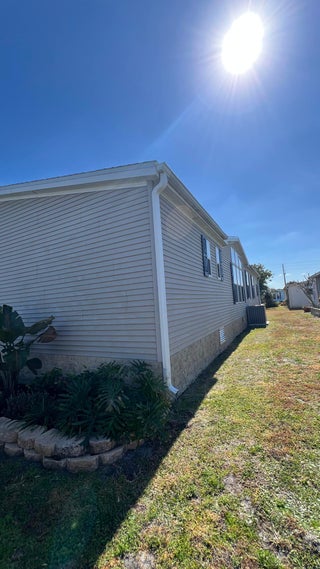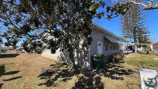 As-is 2-bedroom, 2.5-bath manufactured home in Barefoot Bay with land ownership (no lot rent). Tile flooring in main living areas, with carpet in bedrooms and library. Large enclosed porch with tile flooring. Indoor washer and dryer. Attached storage room.The home is being sold fully furnished; all contents currently in the home convey.Updates include a new roof installed in 2025 and an AC system approximately 2 years old. A 4-point inspection was completed on 08/23/2025.Barefoot Bay Recreation District (BBRD) fees: $1,000 annual amenity fee paid with property taxes and a one-time $1,605 fee due at closing, payable to BBRD.Rental restrictions apply: 3-month minimum rental. Airbnb is not permitted. Maximum of two (2) pets allowed.