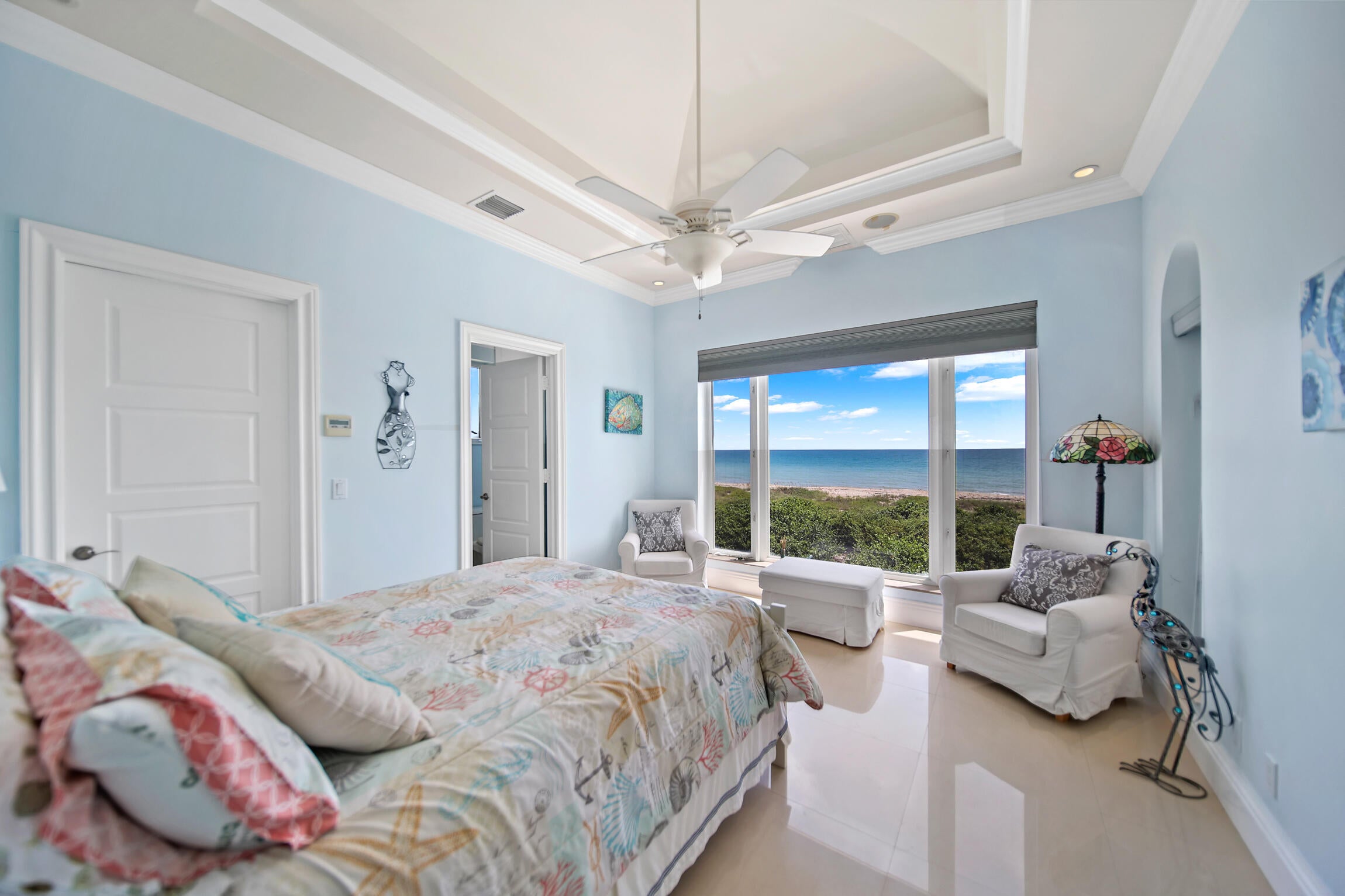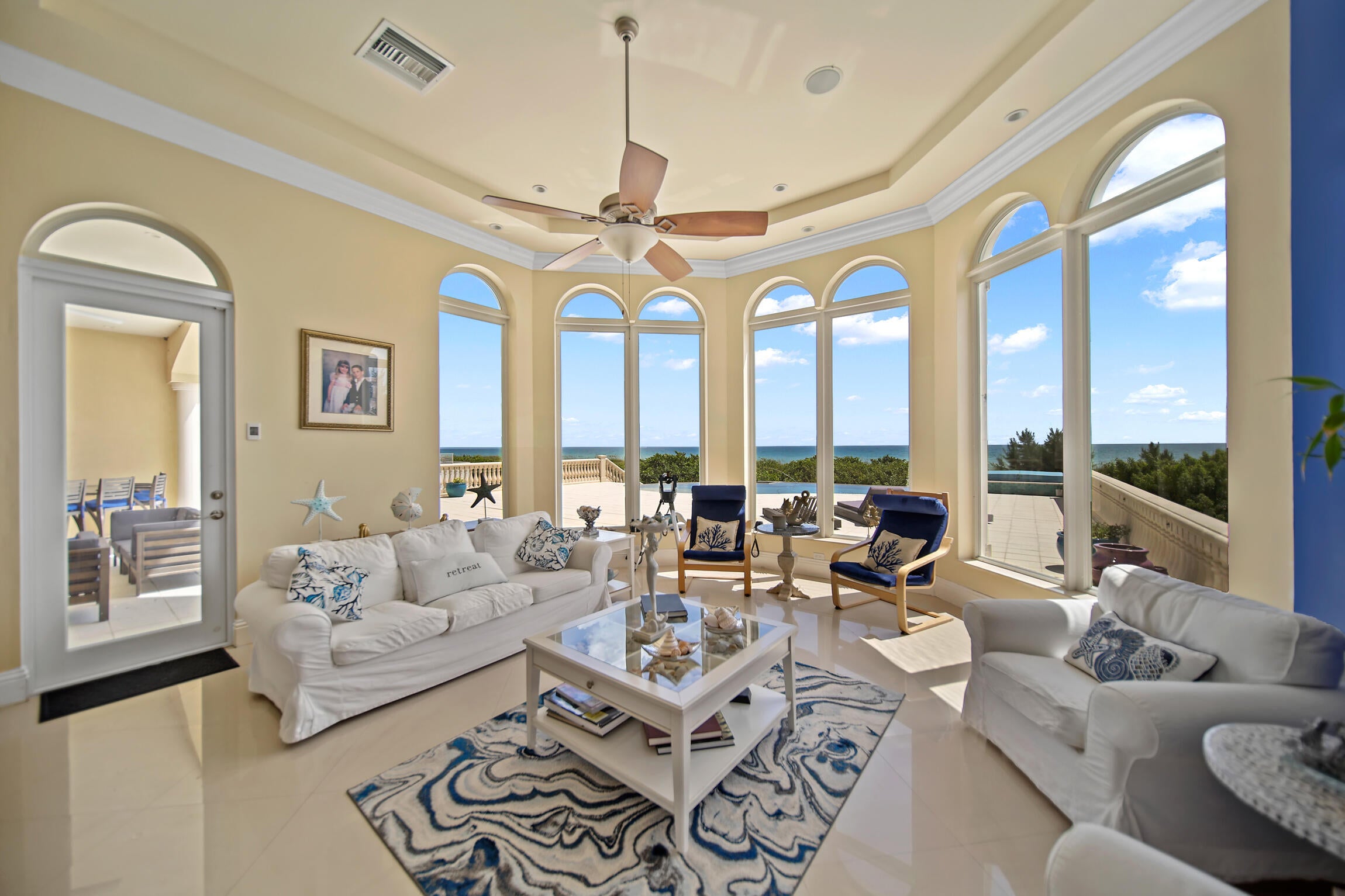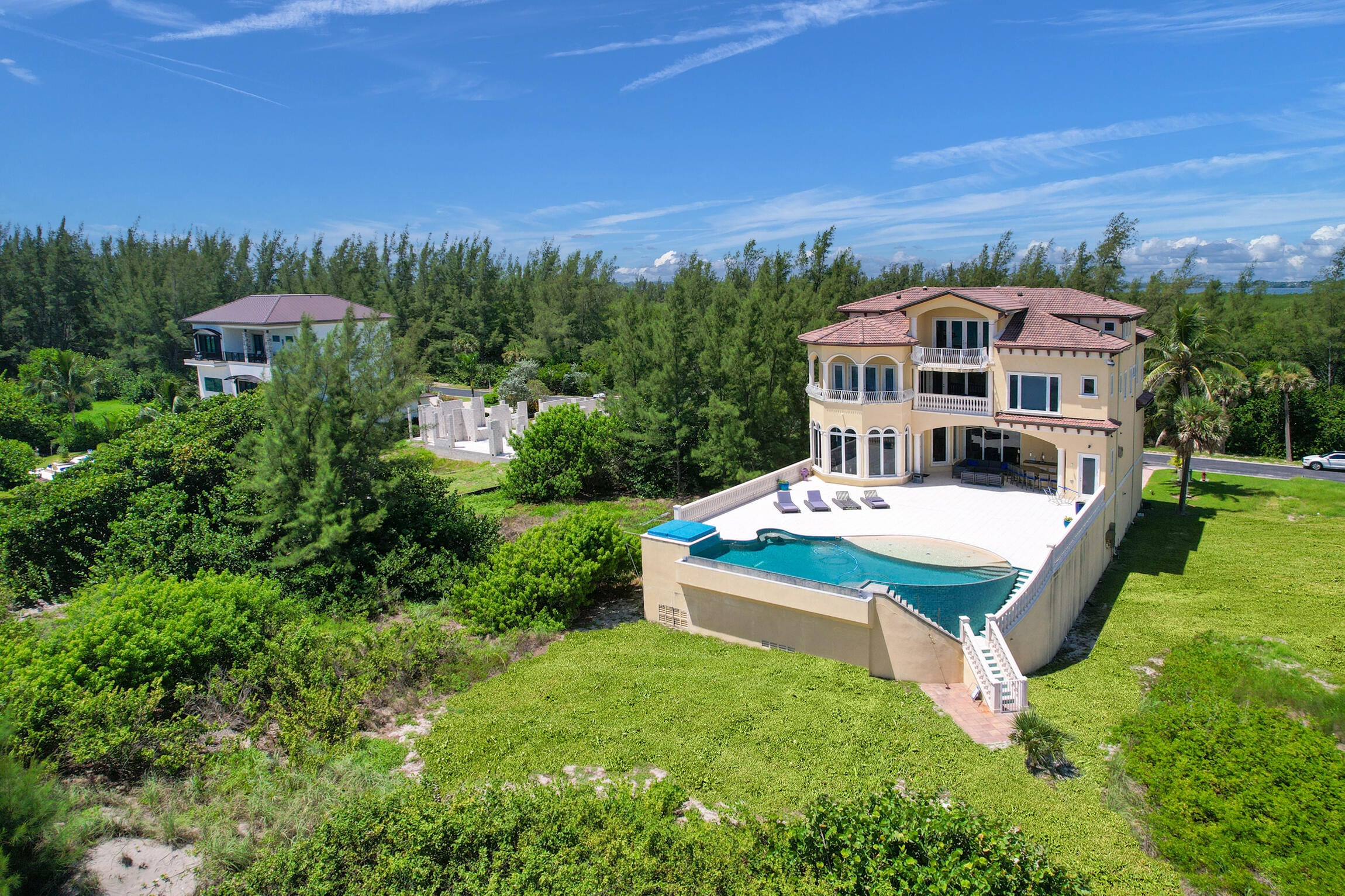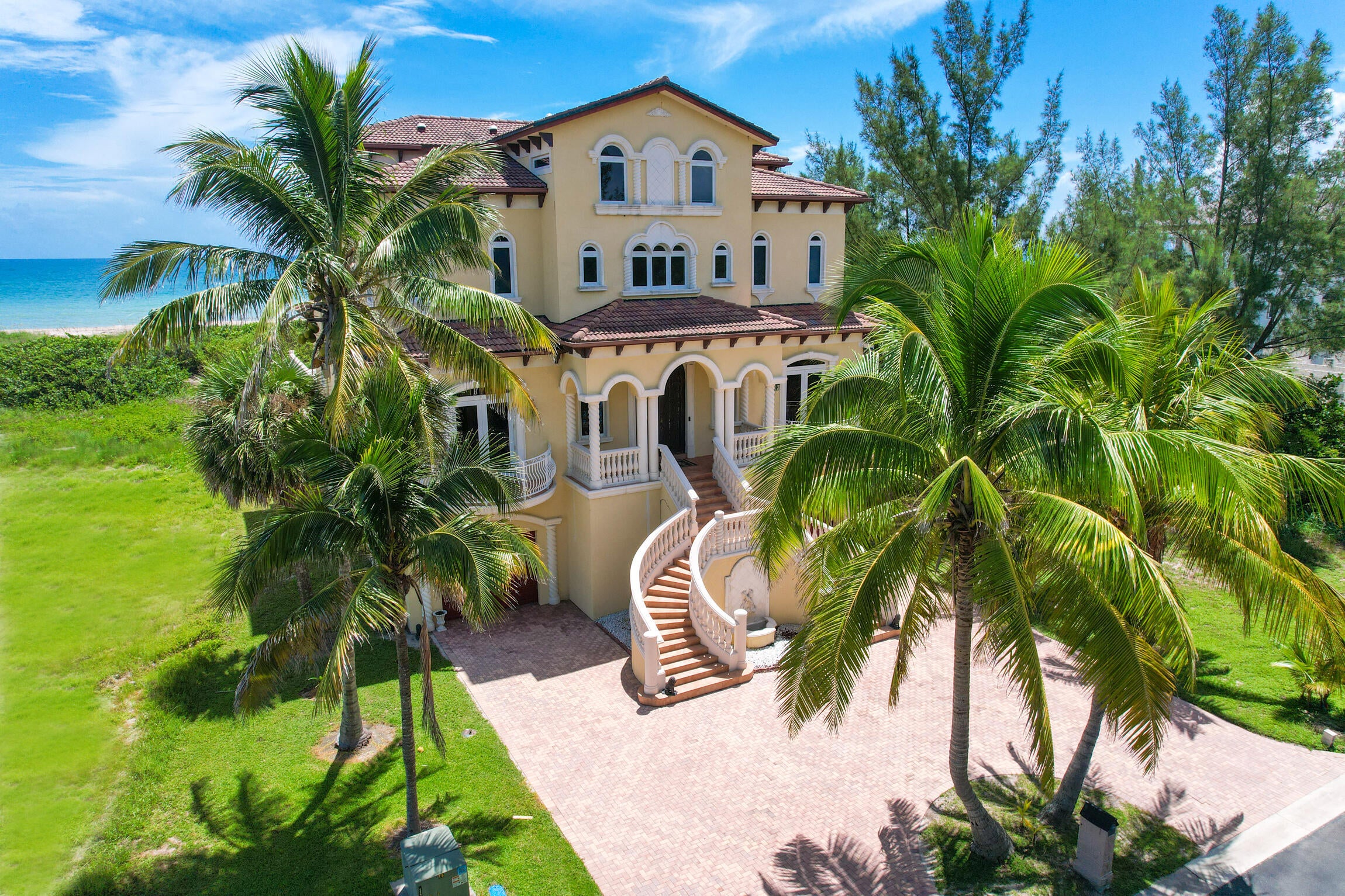Experience luxury living in this stunning oceanfront home! Boasting breathtaking panoramic views, this 7-bedroom, 8.5-bathroom oasis is a coastal paradise nestled in an exclusive gated enclave with only three other homes. The open-concept design features a gourmet kitchen, a spacious living area with floor-to-ceiling windows, and an elevator leading to a full-floor master suite. Plenty of room for family and friends with 7 guest bedrooms all with ensuite bathrooms. Step outside to the expansive deck, perfect for entertaining or soaking in the serene seascape. Enjoy direct beach access, an infinity pool, and an outdoor kitchen, offering the ultimate in seaside living. This exclusive property is conveniently located just 30 minutes from downtown Stuart.