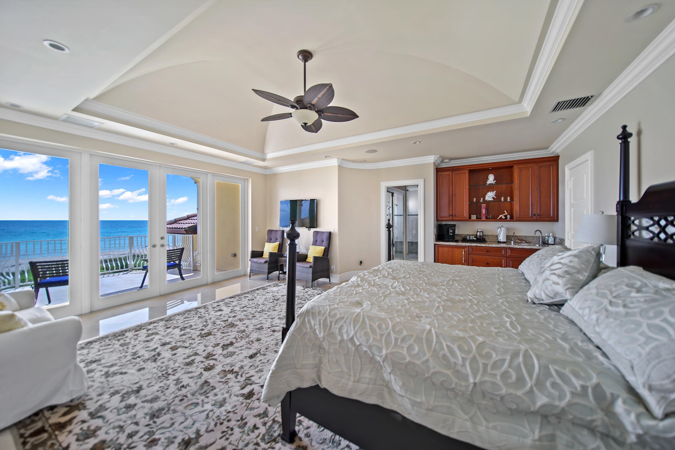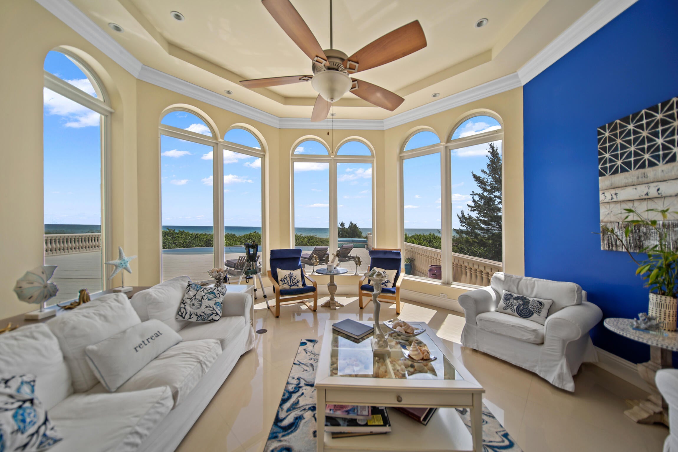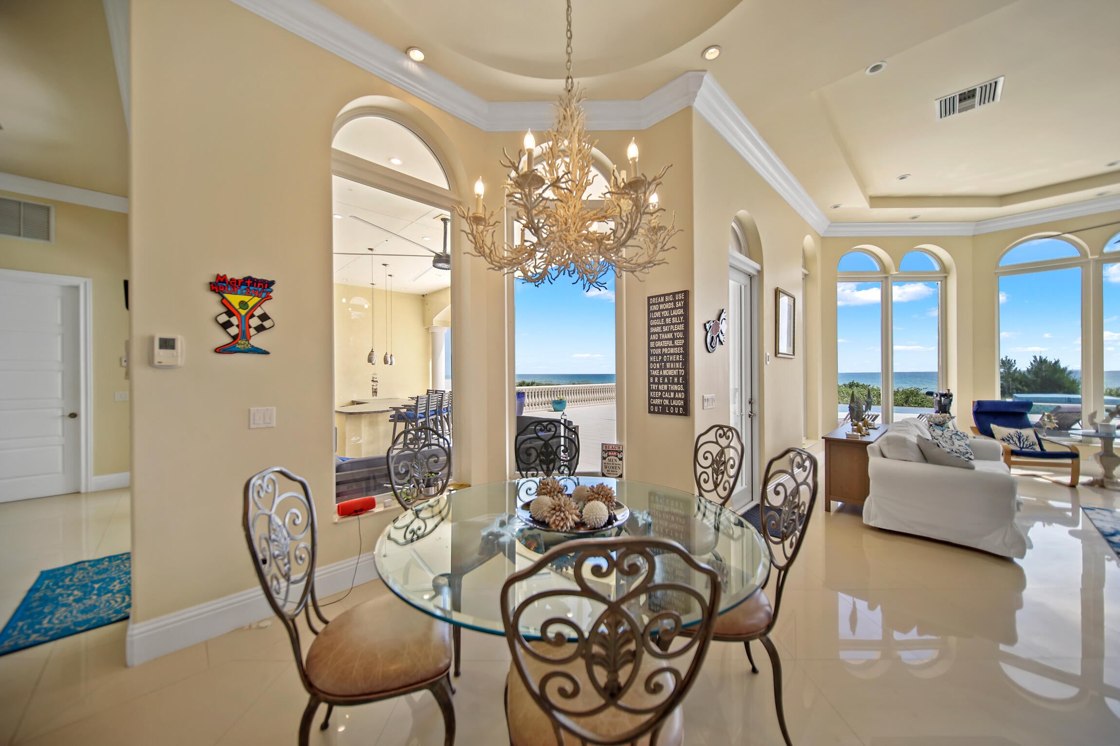 Experience luxury living in this stunning oceanfront home! Boasting breathtaking panoramic views, this 7-bedroom, 8.5-bathroom oasis is a coastal paradise nestled in an exclusive gated enclave with only three other homes. The open-concept design features a gourmet kitchen, a spacious living area with floor-to-ceiling windows, and an elevator leading to a full-floor master suite. Plenty of room for family and friends with 7 guest bedrooms all with ensuite bathrooms. Step outside to the expansive deck, perfect for entertaining or soaking in the serene seascape. Enjoy direct beach access, an infinity pool, and an outdoor kitchen, offering the ultimate in seaside living. This exclusive property is conveniently located just 30 minutes from downtown Stuart.