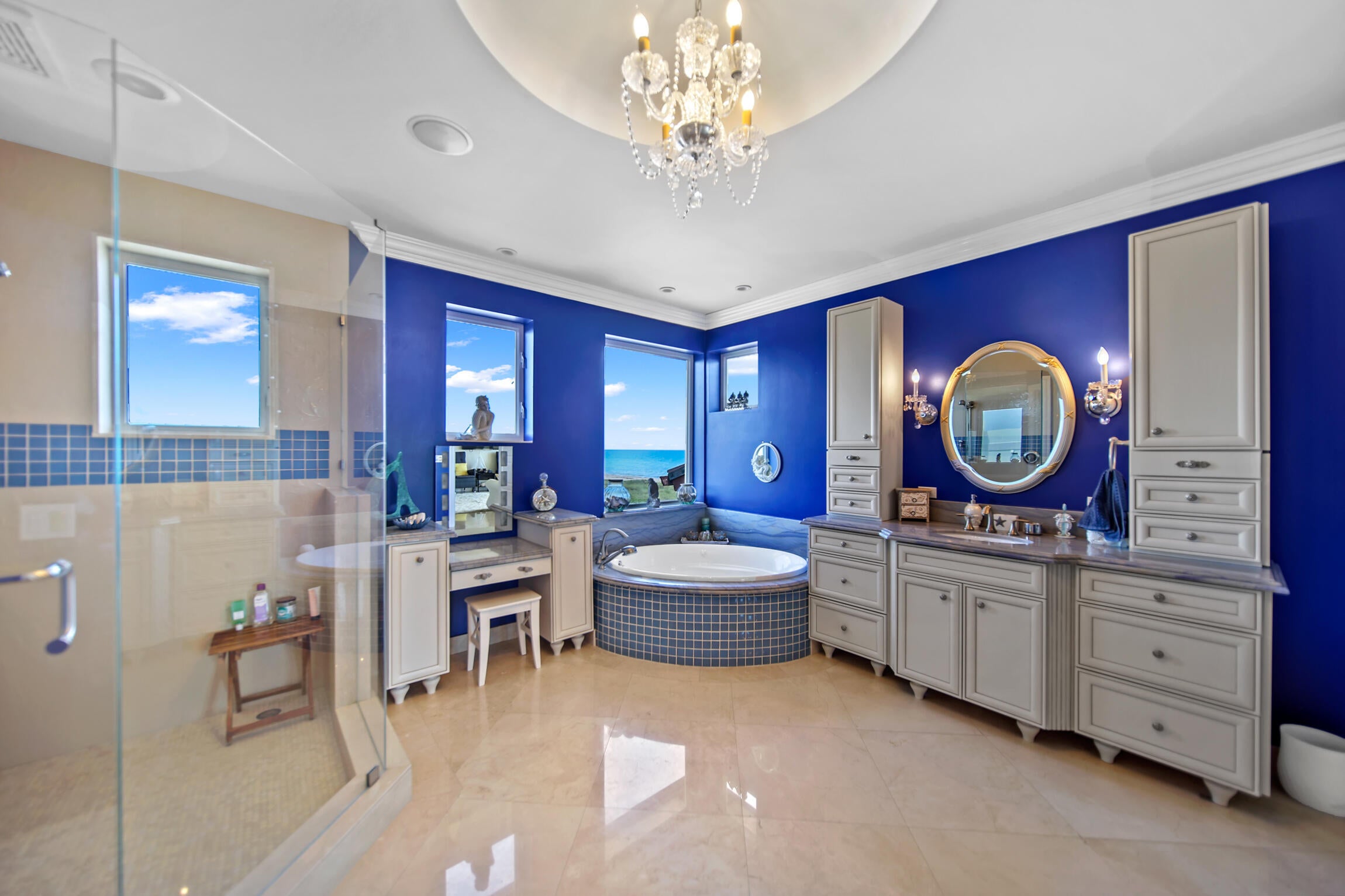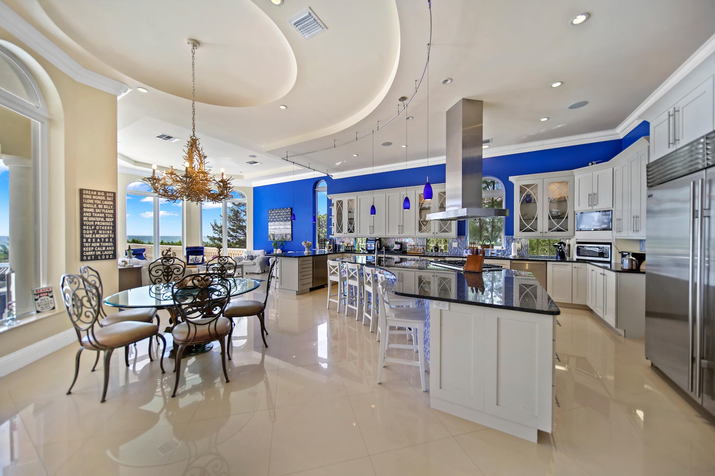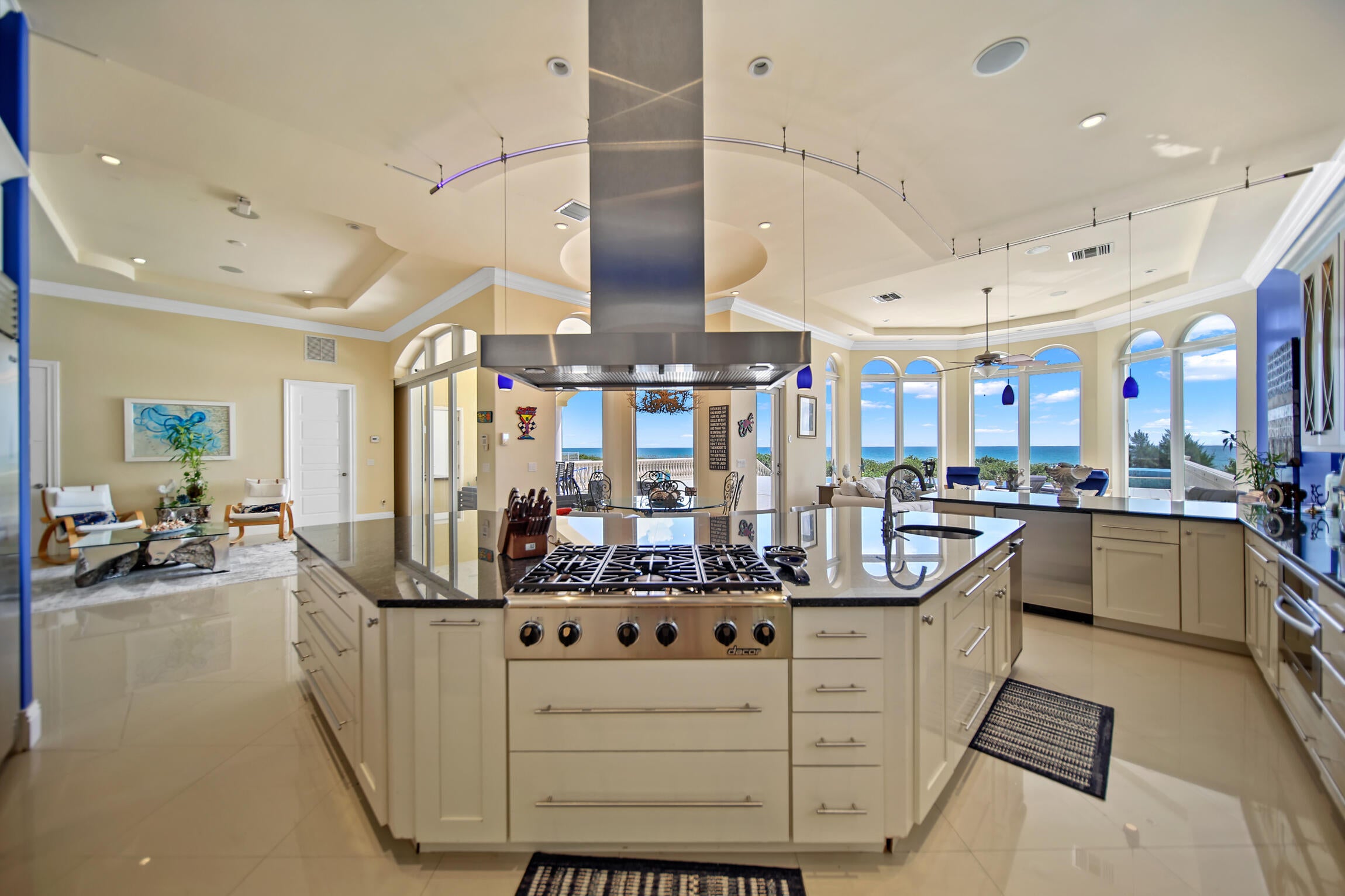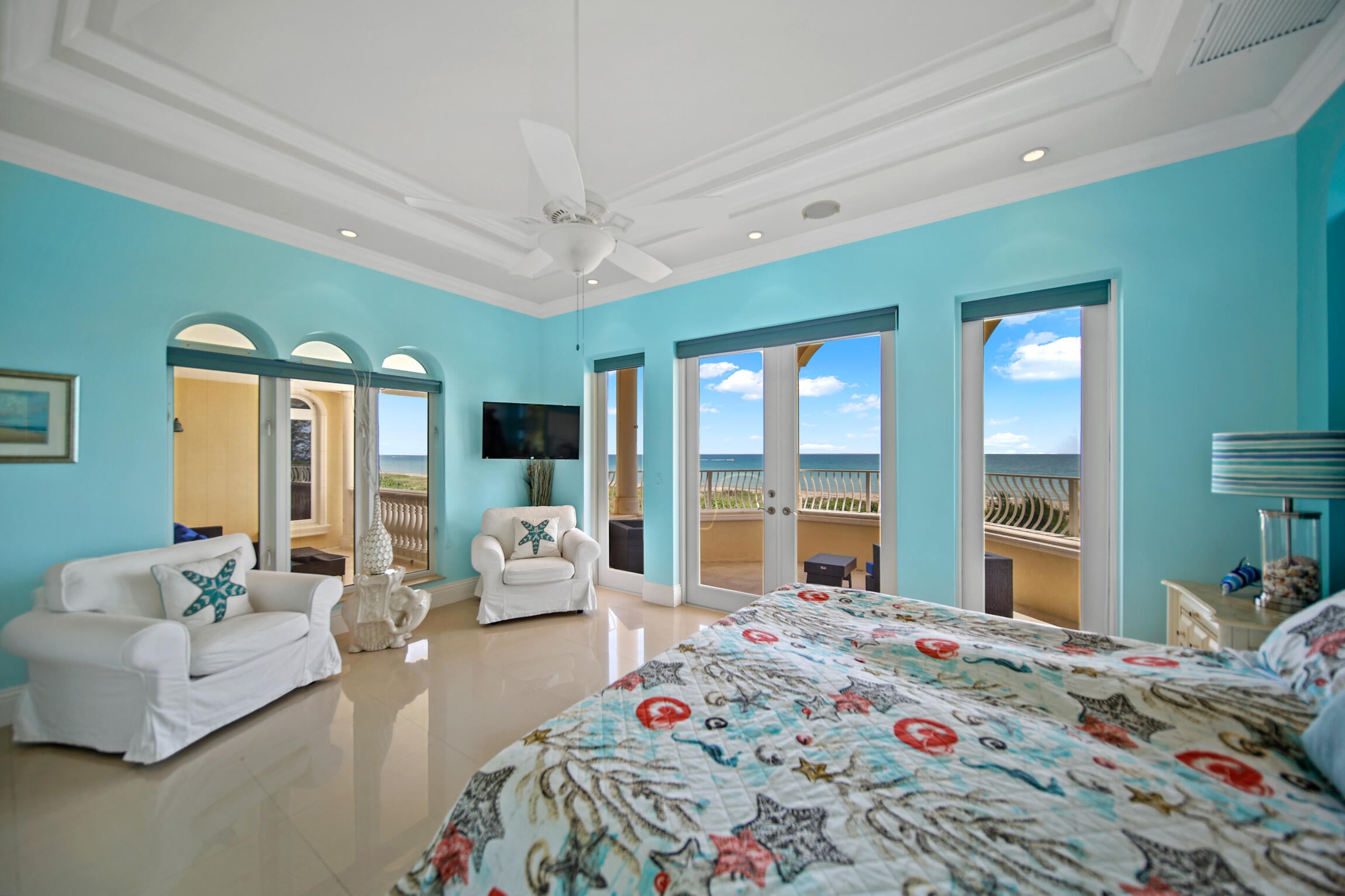 Experience luxury living in this stunning oceanfront home! Boasting breathtaking panoramic views, this 7-bedroom, 8.5-bathroom oasis is a coastal paradise nestled in an exclusive gated enclave with only three other homes. The open-concept design features a gourmet kitchen, a spacious living area with floor-to-ceiling windows, and an elevator leading to a full-floor master suite. Plenty of room for family and friends with 7 guest bedrooms all with ensuite bathrooms. Step outside to the expansive deck, perfect for entertaining or soaking in the serene seascape. Enjoy direct beach access, an infinity pool, and an outdoor kitchen, offering the ultimate in seaside living. This exclusive property is conveniently located just 30 minutes from downtown Stuart.