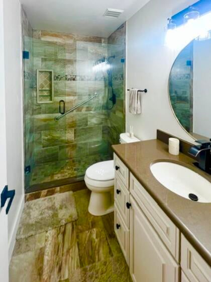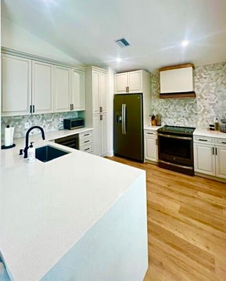 Welcome to your dream home in the secure, 24-hour manned gated community of River Bridge! This fully updated single-family residence features 3 bedrooms, 2 bathrooms, 2 car garage, all situated on a desirable corner lot. Big ticket upgrades include a 2017 roof, 2023 A/C, 2023 water heater and a rooftop SOLAR system for metering-low electric bills!! As you enter through the covered entryway, you're greeted by elevated ceilings, neutral fresh paint, recessed lighting, and luxury vinyl floors that enhance the open floor plan. The heart of this home is the remodeled kitchen boasting newer cabinets, quartz countertops with waterfall feature, stainless steel appliances, and a stylish hood.The master bedroom boasts a walk-in closet and an ensuite with luxurious glass shower doors, while the laundry area in the garage features a decorative shiplap wall and shelving for convenience. Step outside to the screened-in patio surrounded by professional landscaping, complete with gutters and accordion shutters for added safety. As part of the River Bridge community, you'll have access to exceptional amenities, including multiple heated swimming pools, a kiddie pool, spa/jacuzzi, a 300-seat performance/activities center, four tennis courts, six pickleball courts, a fitness center, playground, bocce ball, shuffleboard, and a fully staffed clubhouse. Plus, the HOA fees cover cable and landscaping, allowing you to enjoy a low-maintenance lifestyle. Don't miss the chance to make this exceptional home yours!