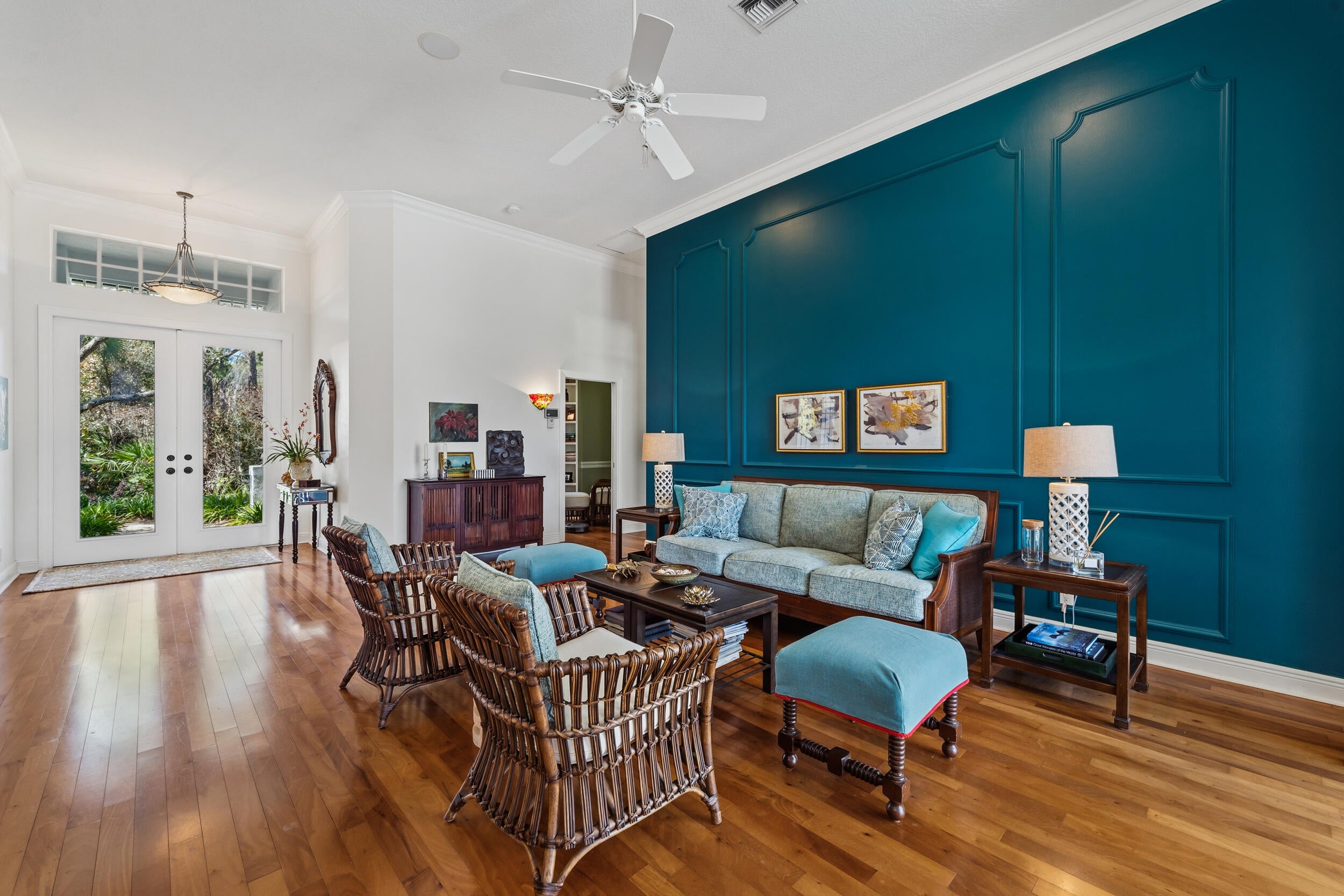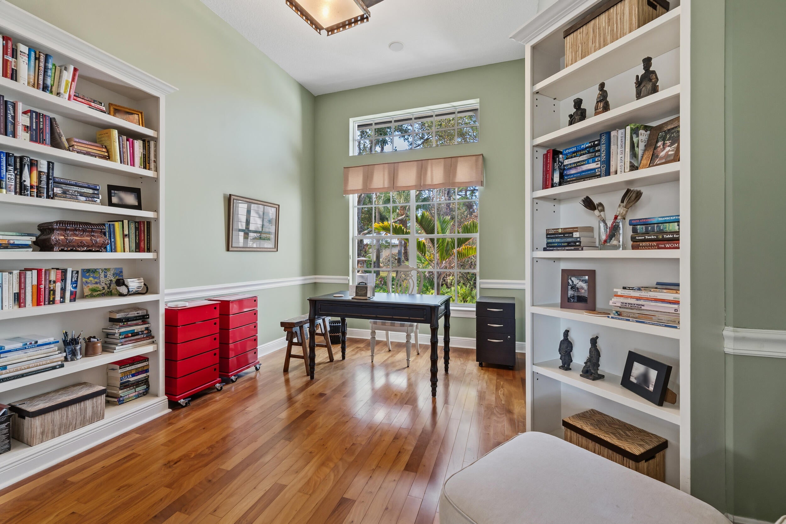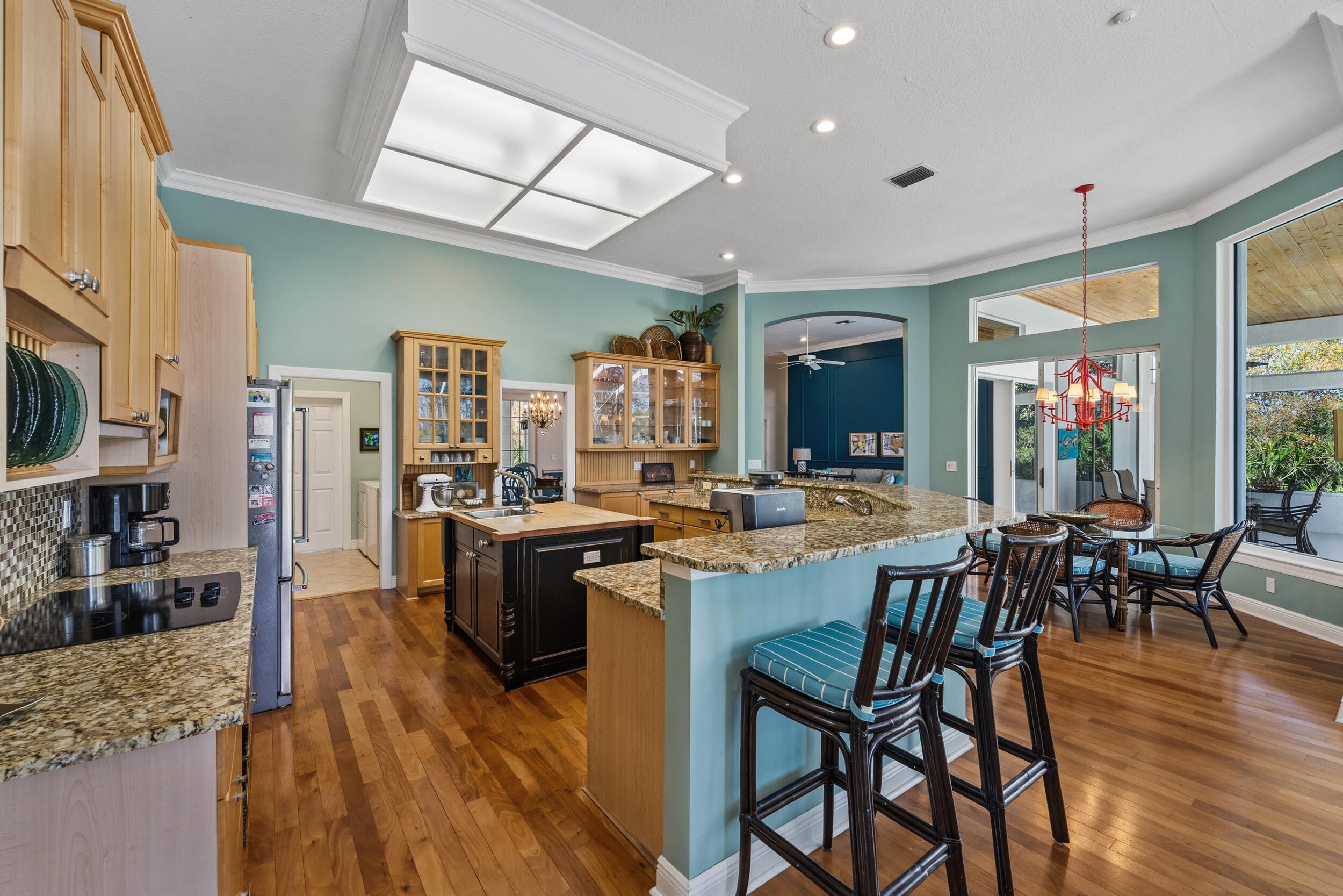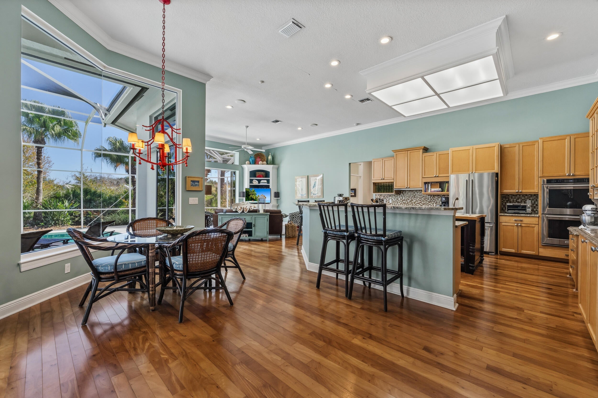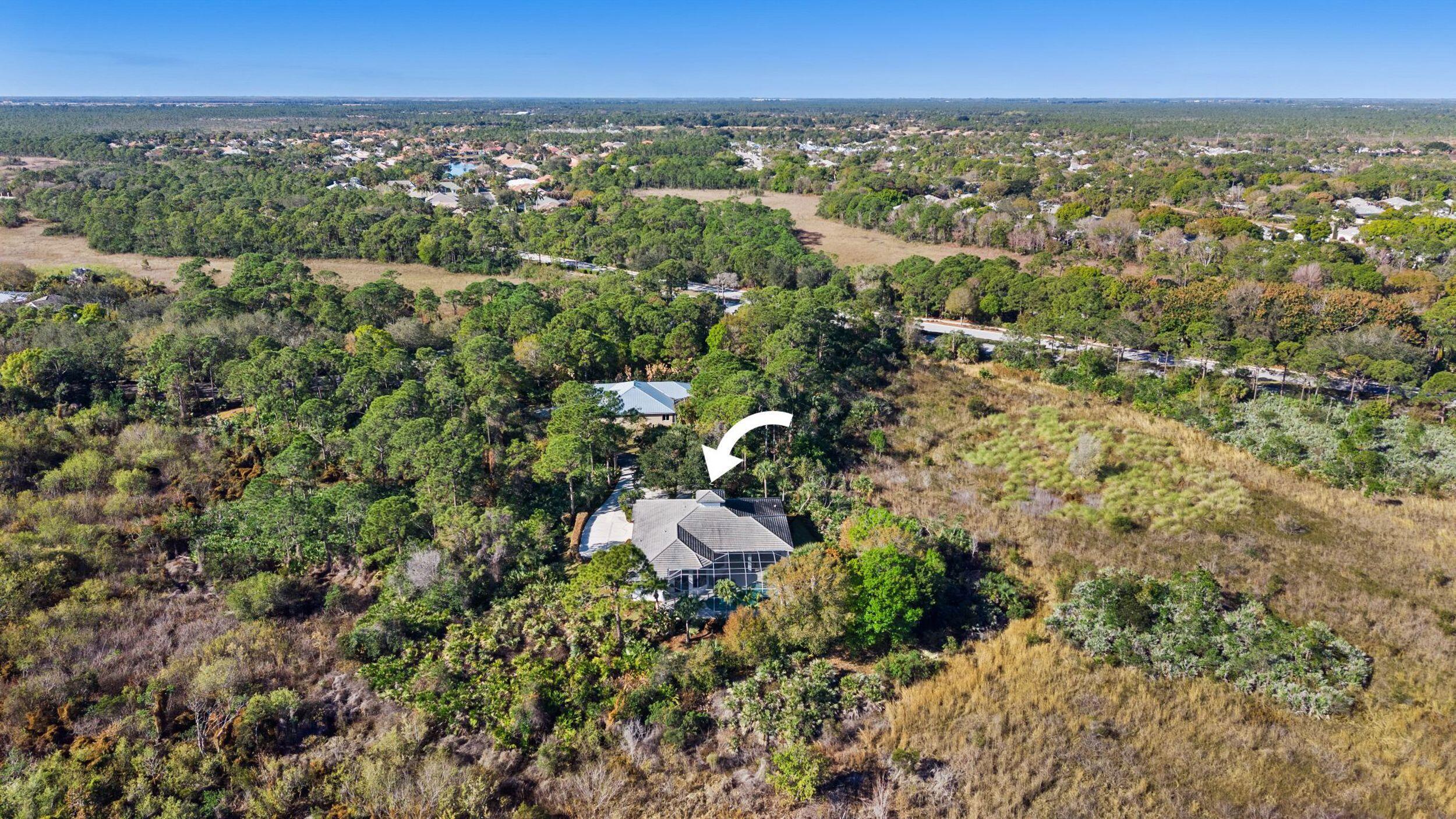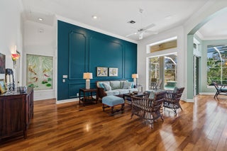 Nestled at the end of a long private drive and surrounded on three sides by lush preserve, this exceptional residence offers a rare level of privacy and tranquility in the highly sought-after community of The Arbors. This thoughtfully designed home features 3 bedrooms plus a private office, 3 full baths, and soaring 12-foot ceilings that enhance the spacious, light-filled interiors. Walls of windows invite in an abundance of natural light while framing serene preserve views from nearly every room. The heart of the home is an incredible cook's kitchen, perfectly designed for both everyday living and entertaining. Rich Brazilian wood floors add warmth and elegance throughout the main living areas. The newly renovated primary bath offers a spa-like retreat,blending luxury and comfort with beautiful finishes and thoughtful design. Step outside to your oversized screened lanai complete with a pool and spa, creating the ultimate private oasis for relaxing or hosting gatherings. A charming front porch, lush professional landscaping, and a side-load garage enhance both curb appeal and functionality. This is truly a rare opportunity to own a one-of-a-kind preserve property in The Arbors where privacy, natural beauty, and refined living come together seamlessly.