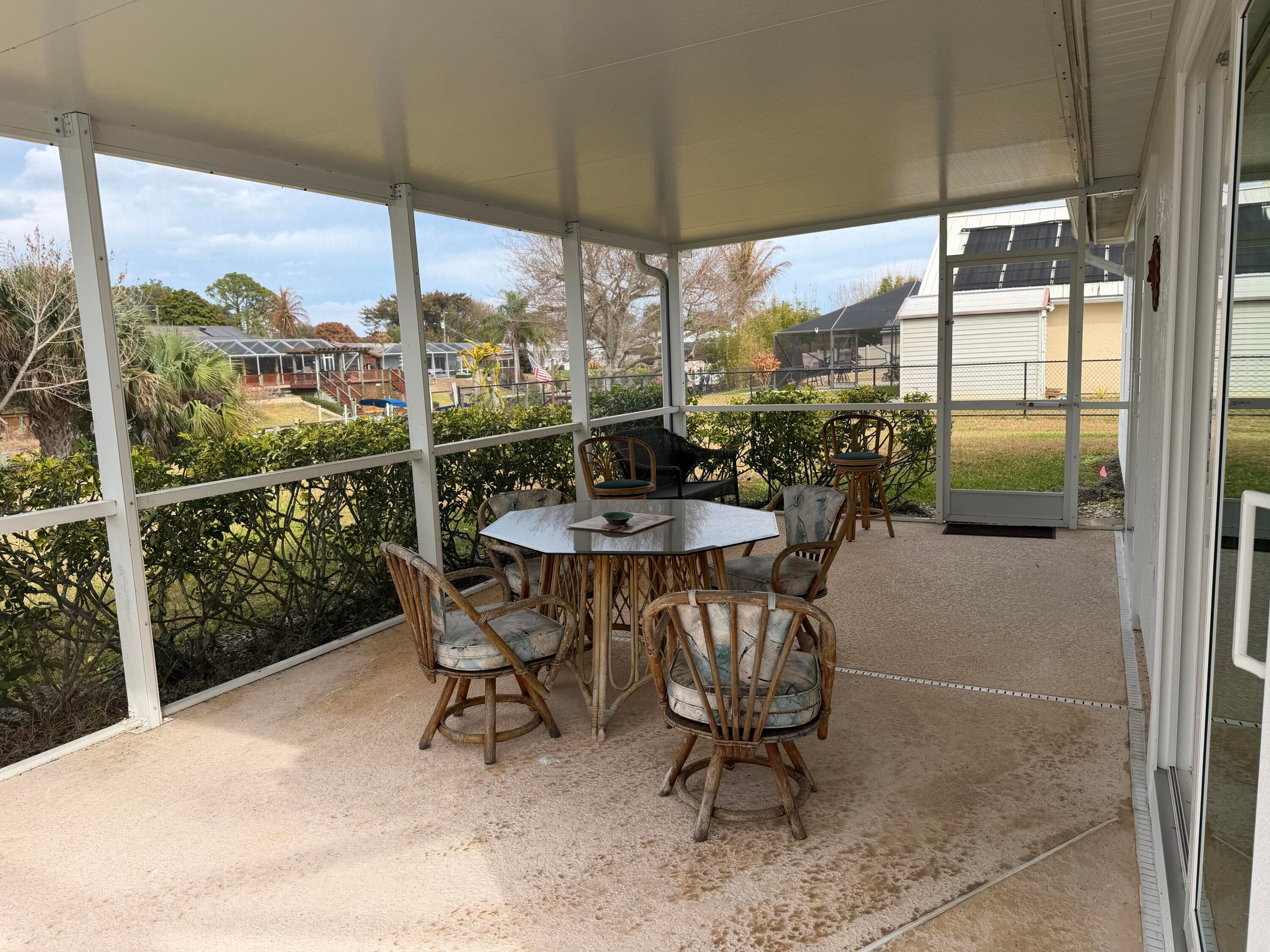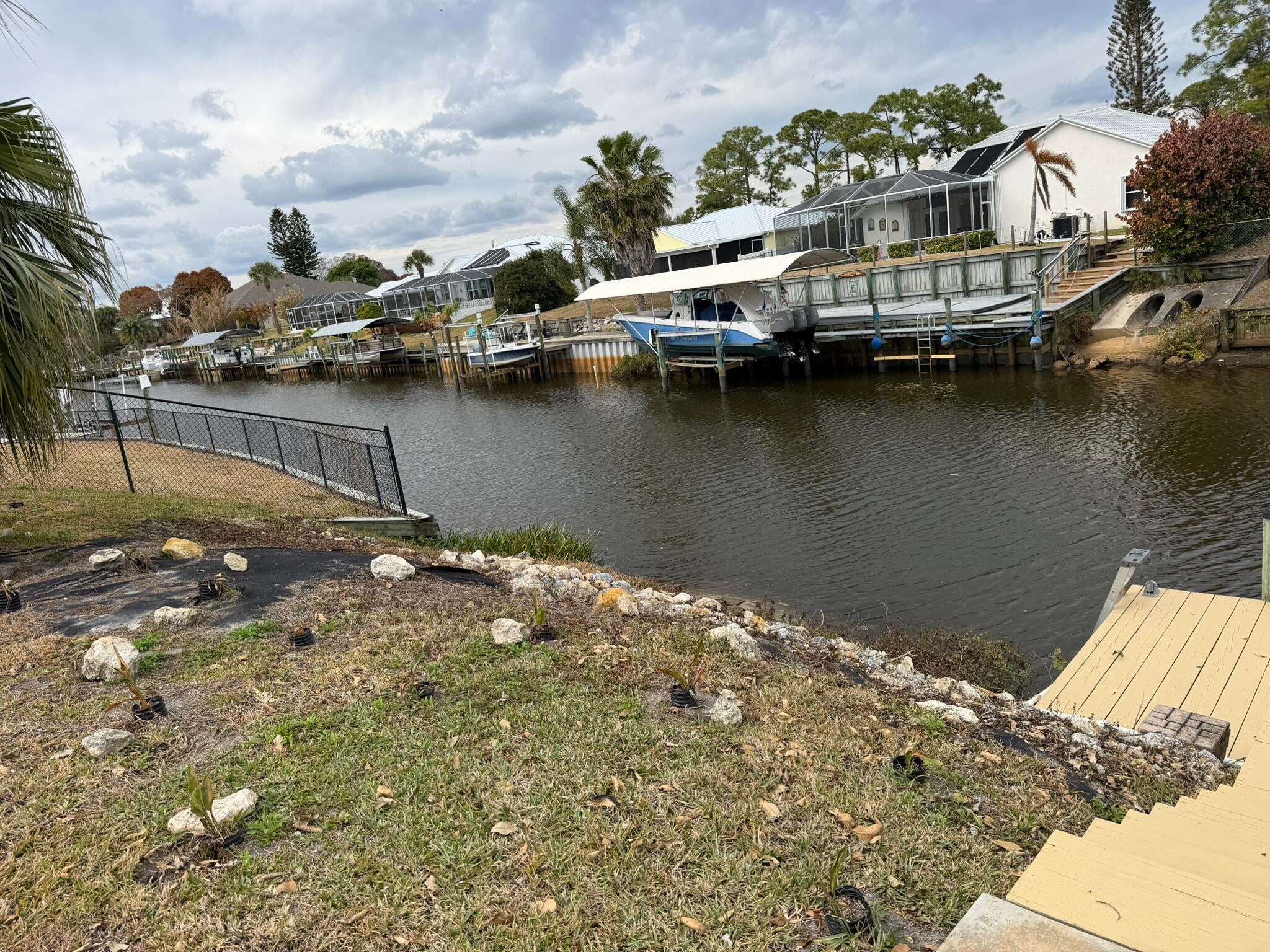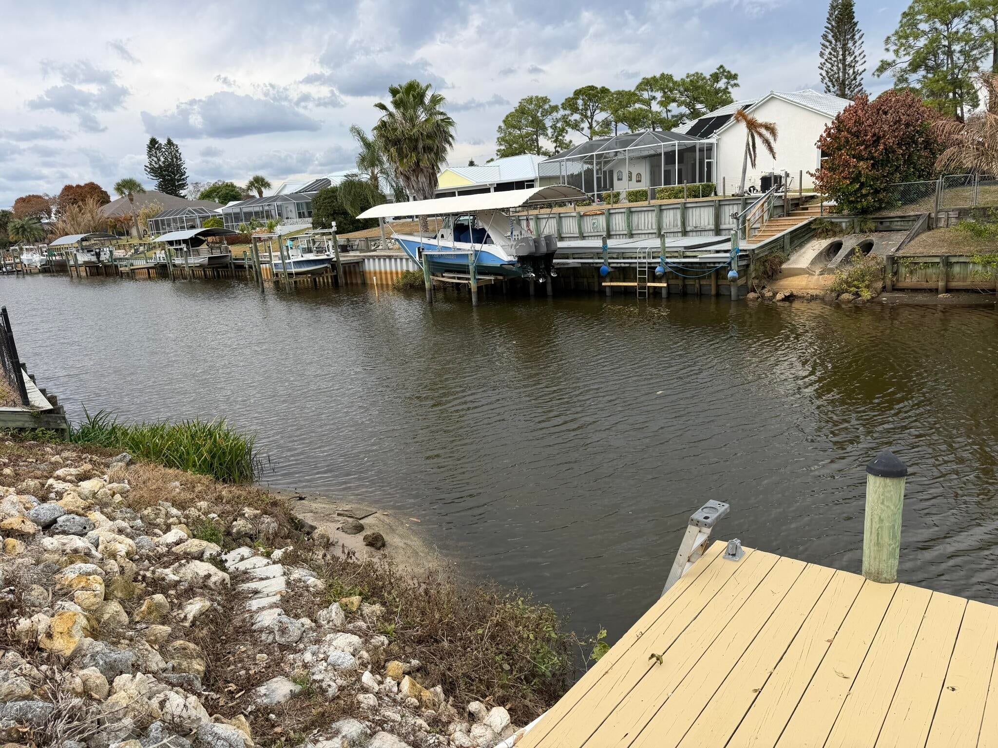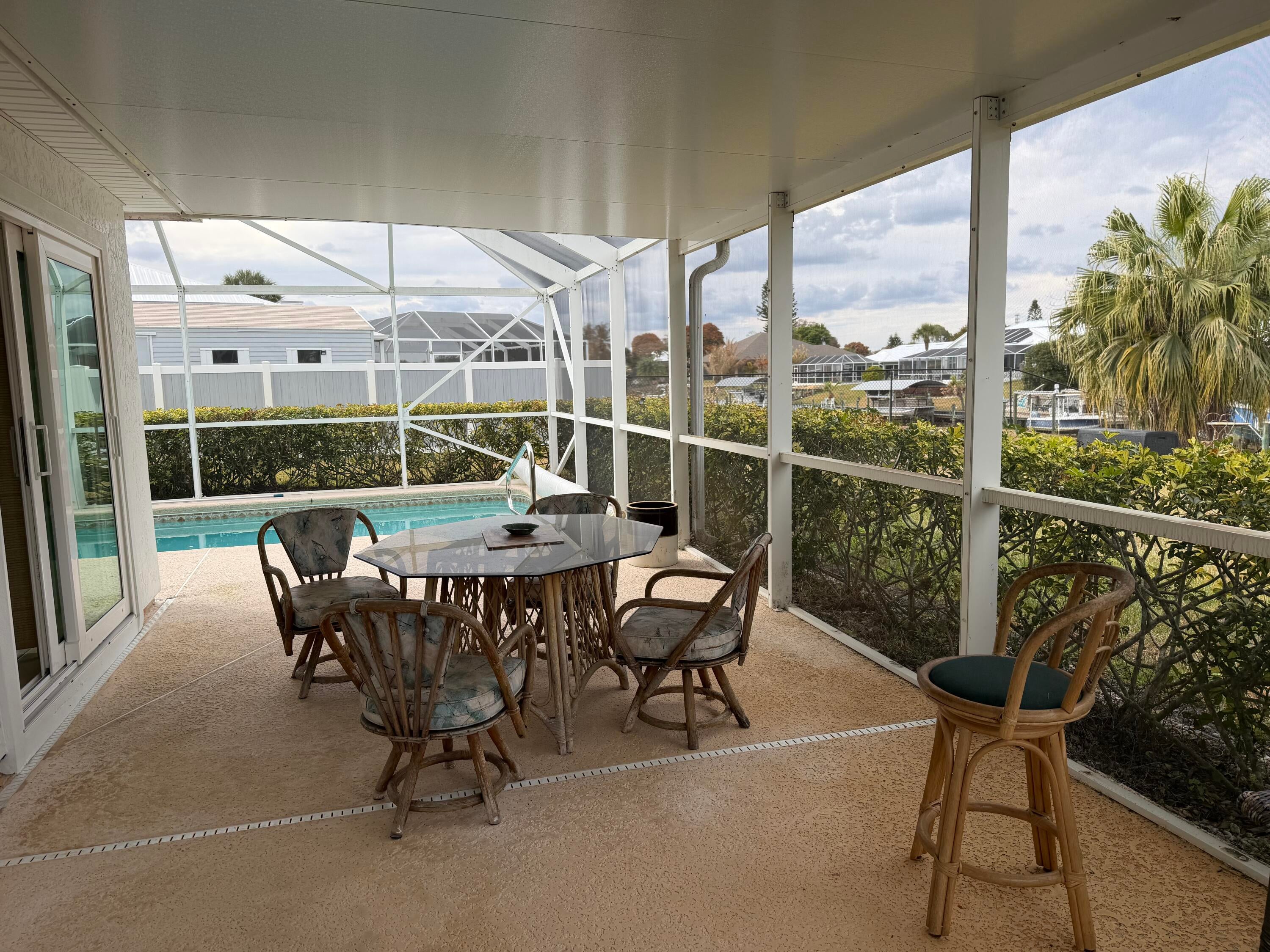 Gorgeous 3/2/2 Ocean Access Waterfront Pool Home. Tile in main living areas. Split Floor Plan. Large Kitchen with pantry and wrap around bar. Stainless Steel Appliances. Walk in Closet in Primary Bedroom, Primary Bath has 2 Vanities areas.Beautiful Canal Views with a Dock. Screened Patio for Sun Bathing by the Pool. Impact windows & sliding Doors. Come and see this lovely home!!