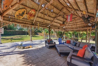 Nestled amongst the famous Loblolly Pines in the classic quaint beach town of Hobe Sound Florida sits your very own tropical paradise. This meticulously maintained 4BR/3BA home will make you feel like you are living in your own personal beachside resort. Complete impact windows throughout. 2023 Roof and A/C. Beautiful chef's kitchen boasting WOLF, VIKING and SUB-ZERO appliances. Resort style backyard pool and landscaping. 30x15 tiki hut, plus your own private sandy beach surrounded by south Florida palms and expansive yard to relax and enjoy the gorgeous South Florida outdoors. The home comes with a pvt dock and 13k lb lift with direct intracoastal and ocean access. On site beautiful clubhouse, gym, tennis courts, etc. Hobe Sound Beach a lovely 5 minute golf cart ride away!