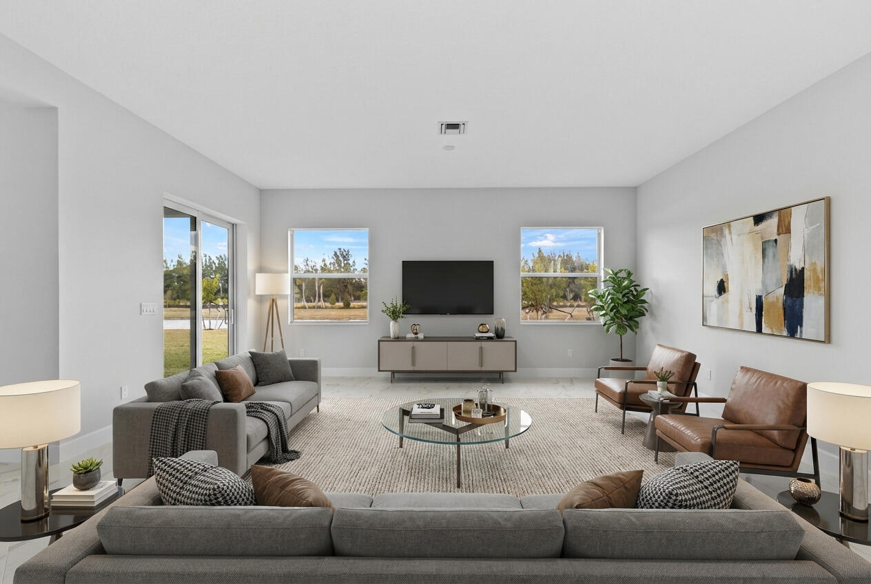 Welcome to luxury living in the heart of Westlake! This stunning 5-bedroom, 4.5-bath Kestrel Grand model with a den is perfectly positioned on a premium lot with serene lake and canal views and no rear neighbors, offering the privacy and peaceful setting renters are looking for.Inside, you'll find an expansive, thoughtfully designed floor plan ideal for both everyday living and entertaining. The home features upgraded tile floors throughout the entire first floor, creating a seamless, modern look while offering durability and easy maintenance. The spacious chef's kitchen opens to the main living and dining areas, perfect for hosting gatherings or enjoying quiet evenings overlooking the water.A private den provides the flexibility for a home office, playroom, or additional lounge space. Upstairs, generously sized bedrooms and well-appointed bathrooms provide comfort and privacy for everyone. Step outside and enjoy beautiful water views from your backyard with no homes directly behind you, a rare and highly desirable feature in Westlake rentals. Located in the sought-after City of Westlake, residents enjoy access to the incredible Westlake Adventure Park, featuring a resort-style lagoon pool with tower slide, splash pad, lap pool, cabanas, Adventure Playground, BMX pump park, basketball courts, dog park, and event lawn. The community is golf cart friendly and designed for an active, connected lifestyle. You're just minutes from Publix, shopping, dining, and everyday conveniences, with easy access to major roadways. Nearby medical facilities include Palms West Hospital and Wellington Regional Medical Center, providing added peace of mind. This home offers the perfect combination of space, privacy, luxury finishes, and access to resort-style amenities all in one of Palm Beach County's fastest-growing communities. Don't miss the opportunity to make this exceptional Westlake rental your next home!