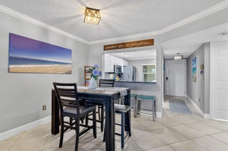 Welcome to effortless coastal living at Ocean Harbor South. This beautifully maintained first-floor residence offers the rare convenience of walk-out access with a view of the Atlantic Ocean just beyond your back door.Step inside to a light, airy interior featuring neutral tones, crown molding, and diagonal tile flooring throughout. The open-concept living and dining areas flow seamlessly to a screened lanai, where ocean breezes and the beach walkover are just steps away.The kitchen has been tastefully updated with white cabinetry, solid-surface countertops, recessed lighting, and a breakfast bar perfect for casual dining. All stainless-steel appliances are brand new, including a convection flat-top range, refrigerator, dishwasher, and microwave--delivering both style and performanceAll windows and sliding glass doors have been replaced with impact-resistant glass, offering peace of mind and energy efficiency. Designed for easy island living, this residence combines comfort, quality updates, and an unbeatable location within a gated oceanfront community featuring private beach access, pool, and clubhouse. Live where others vacationthis is North Hutchinson Island at its finest.