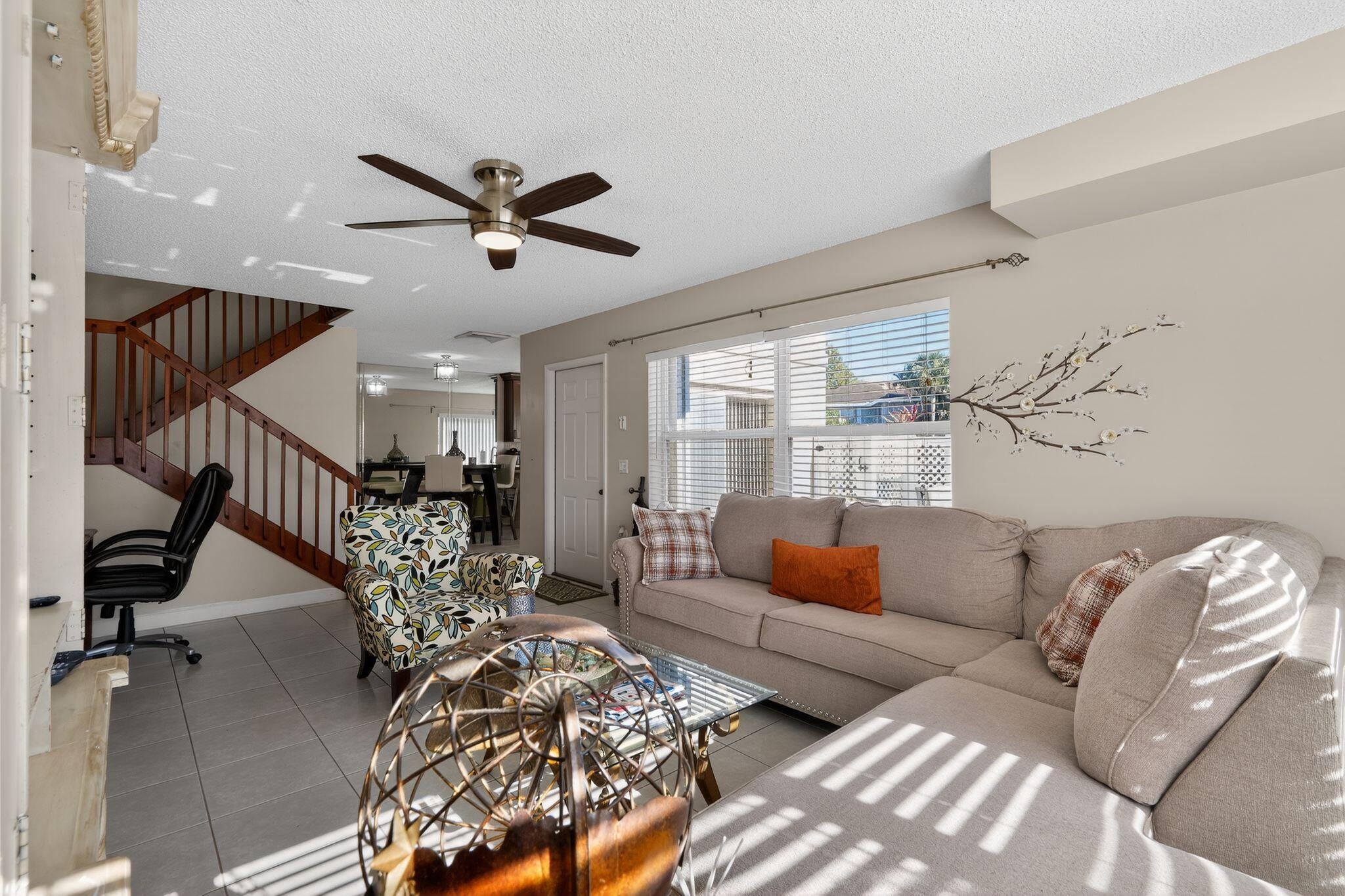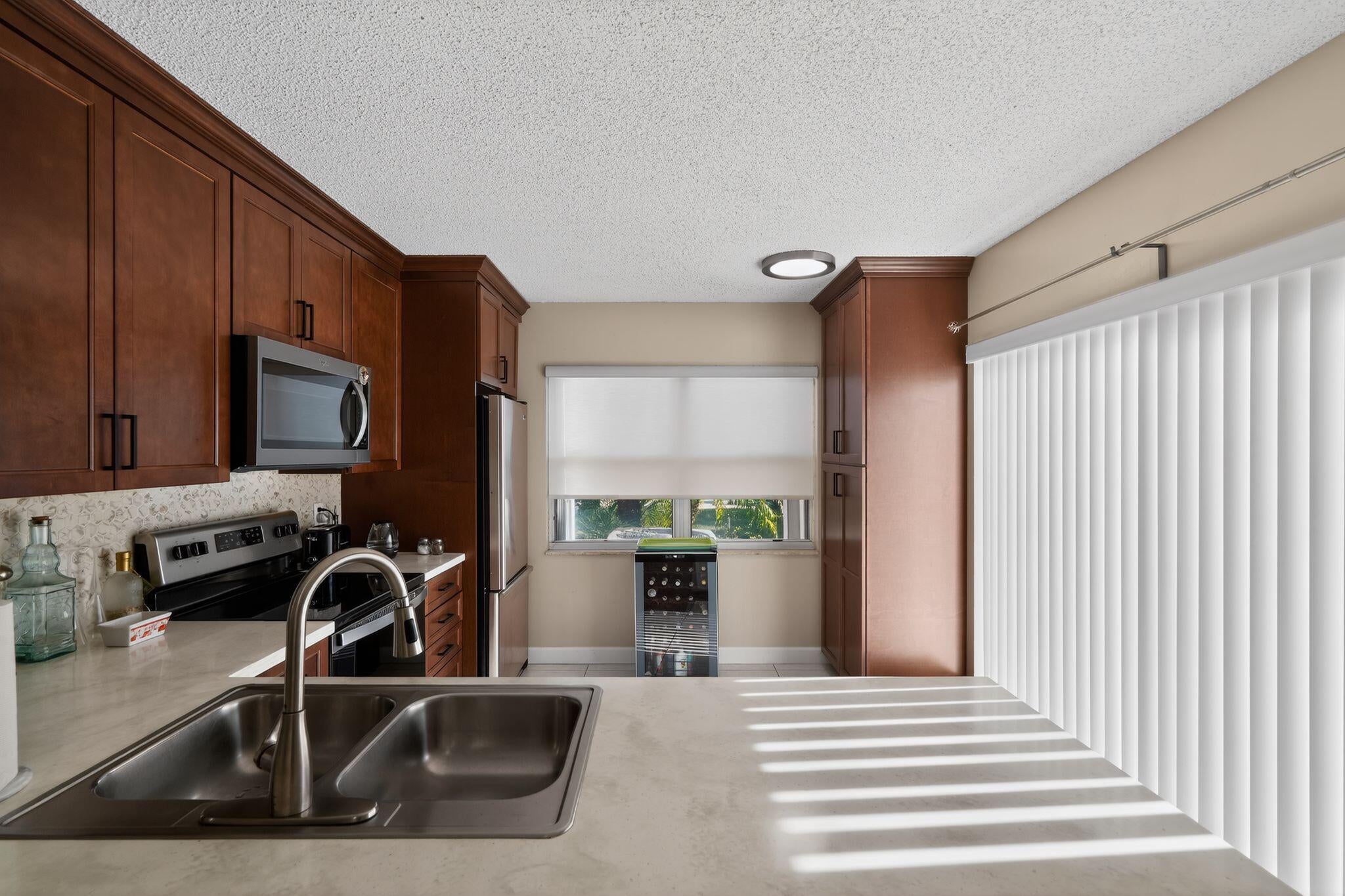Welcome to Sunset Trace in Palm City, where resort style amenities meet easy townhome living. This 2 bedroom, 2.5 bath townhouse offers 1,374 square feet of bright, comfortable space with tile flooring on the main level and tasteful updates throughout. The renovated kitchen features rich cabinetry, stainless appliances and generous counter space, opening to the dining and living areas for a functional layout. Upstairs, both bedrooms are spacious and private, including a well sized primary suite. Updated baths offer a clean, modern feel. Enjoy in unit laundry, central air, and a private fenced patio ideal for relaxing or entertaining. Community amenities include two pools, tennis, pickleball, walking paths, and a guarded gate. Convenient to I 95 and the Turnpike.