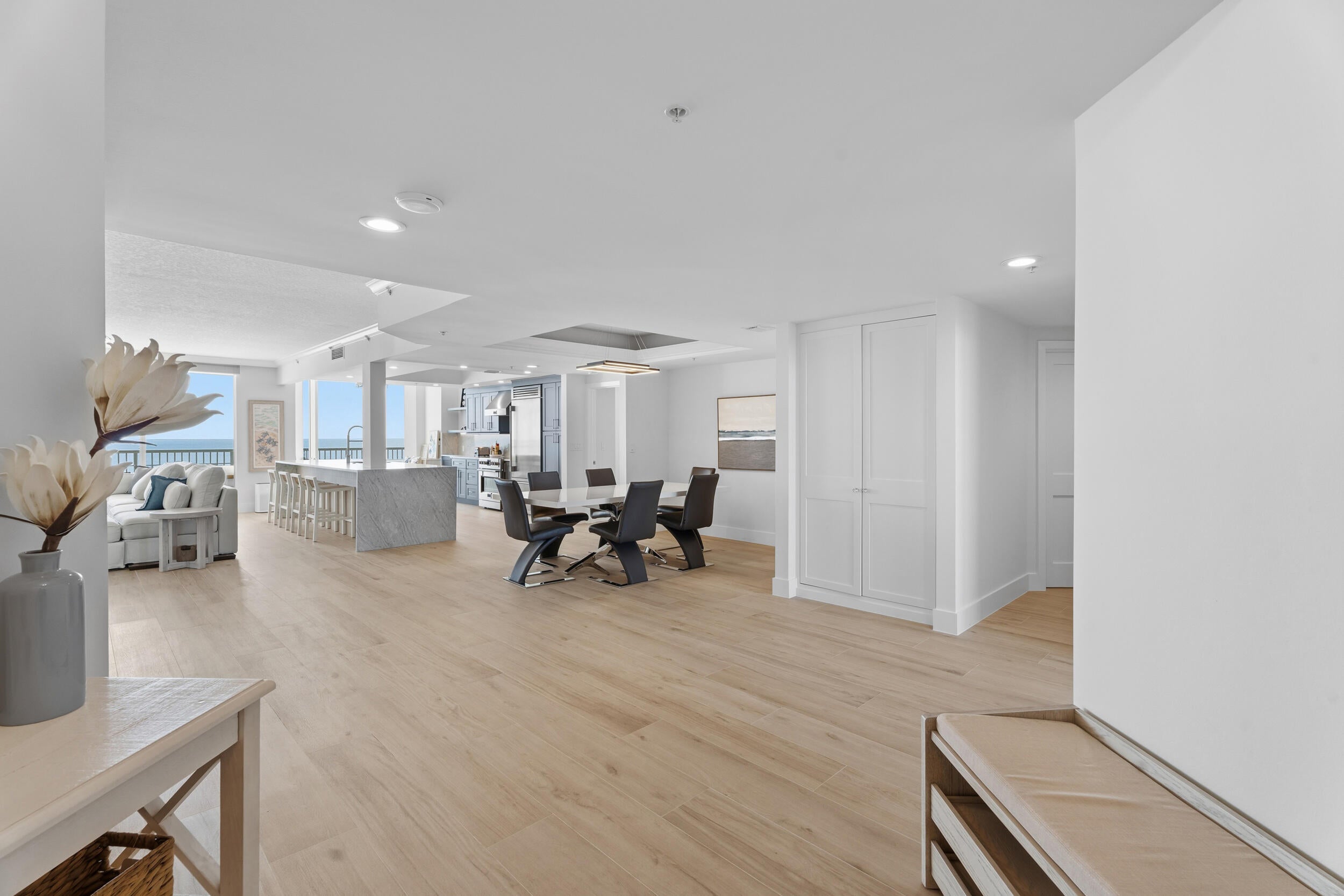 Welcome to the highly sought-after ''Carlyle'' model at Regency Island Dunes -- an exceptional oceanfront residence offering 3 bedrooms, 3 full baths, and over 2,800 total square feet of refined coastal living.From the moment you enter, you're greeted with the rare advantage of both ocean and river views -- a truly special feature that sets this unit apart. Completely remodeled in 2025 with over $300,000 in upgrades, this residence has been thoughtfully reimagined from top to bottom.The designer kitchen showcases brand-new custom cabinetry, waterfall quartz countertops, and top-of-the-line Fulgor Milano appliances. New flooring runs throughout the entire unit, and all three bathrooms have been beautifully renovated with high-end finishes and modern design.Regency residentsenjoy 24-hour manned security, an oceanfront social room, fitness center, billiards room, heated pool, private beach access, and assigned under-building parking. Ownership also includes an all-inclusive membership to Island Dunes Country Club, featuring golf, tennis, pickleball, waterfront dining, and a private marina making this one of the rare oceanfront communities that truly offers it all. Luxury. Views. Lifestyle. This is coastal living at its finest.